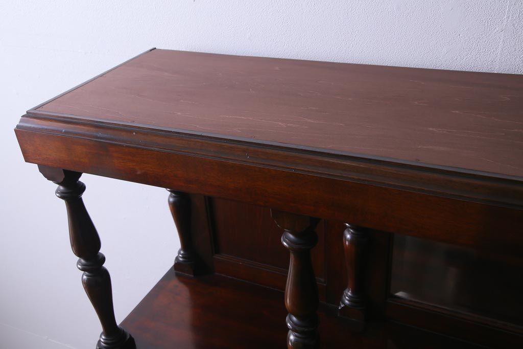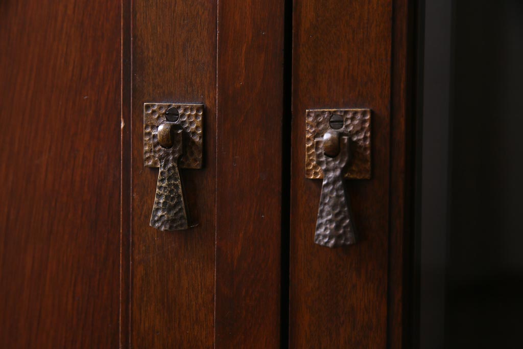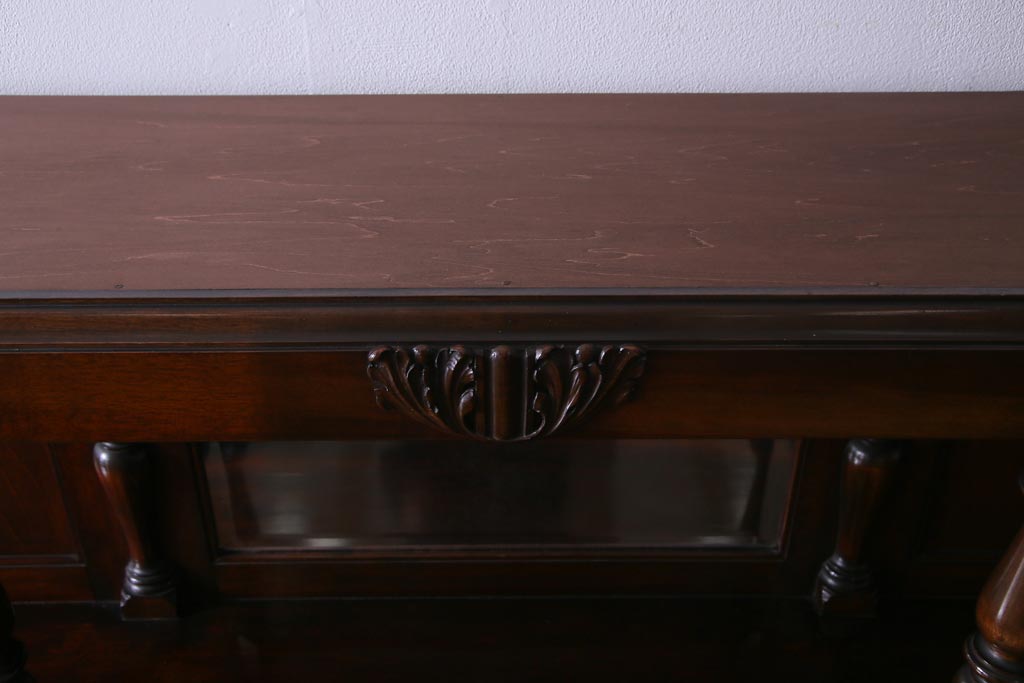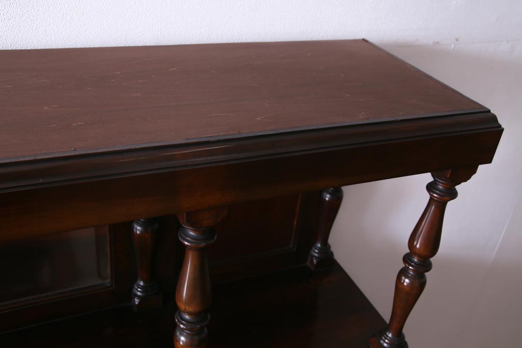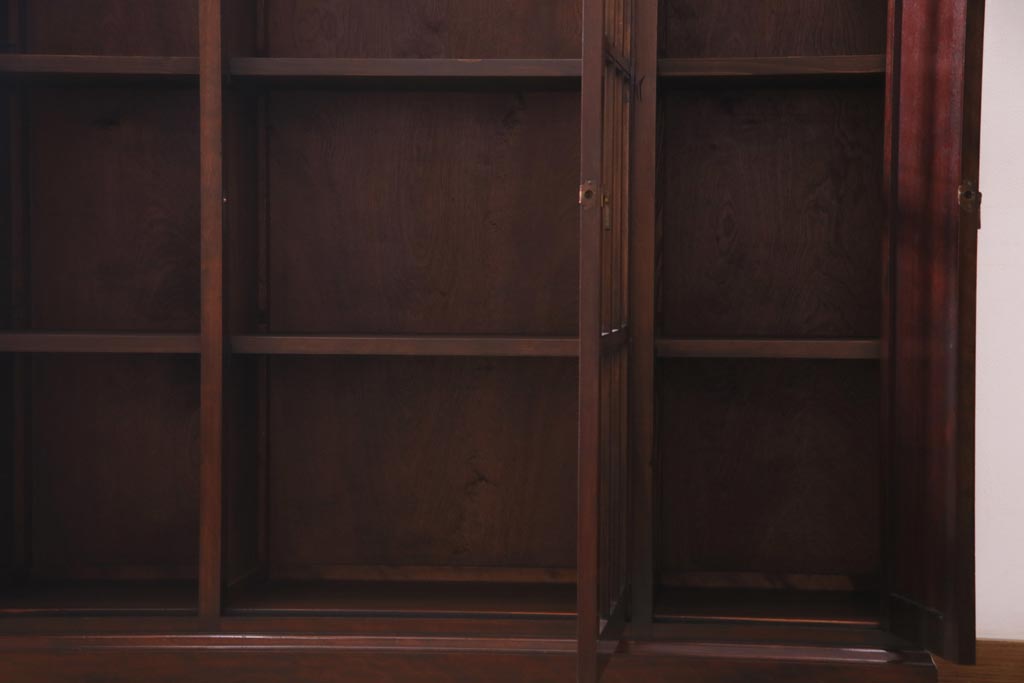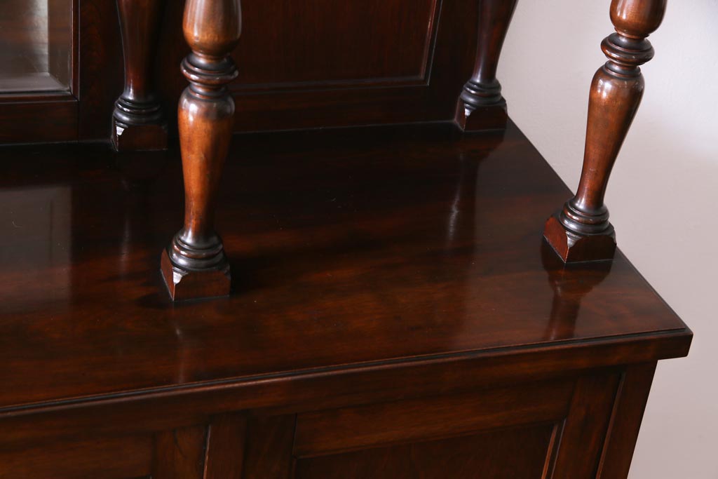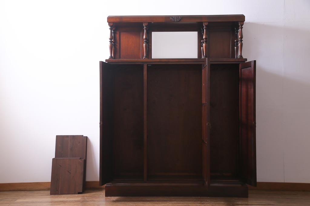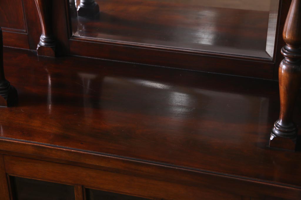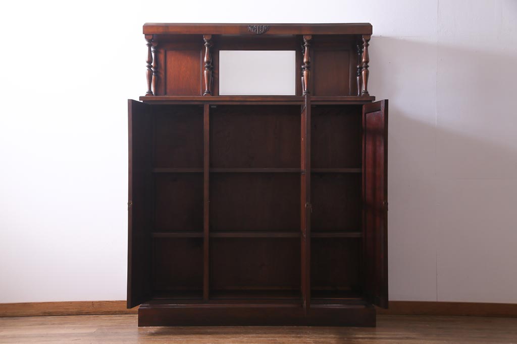 アンティーク家具 イギリスアンティーク ウォールナット材 鏡付き 凛とした佇まいの大型キャビネット(収納棚、戸棚)