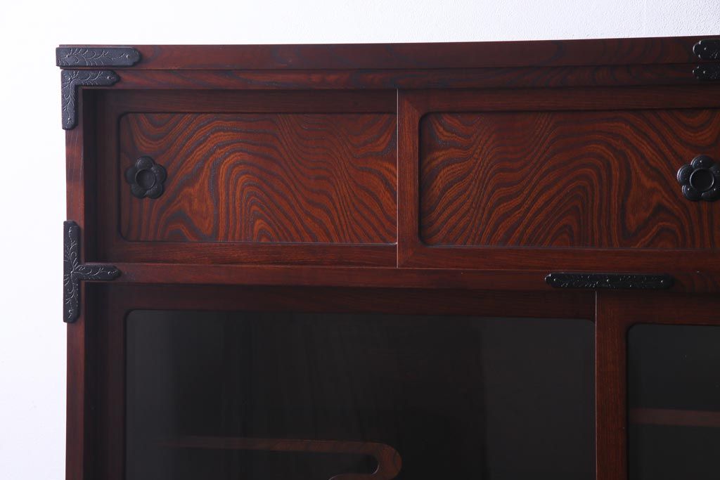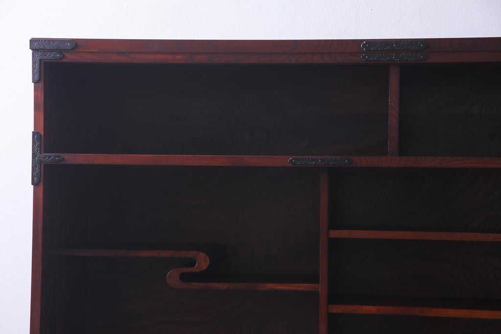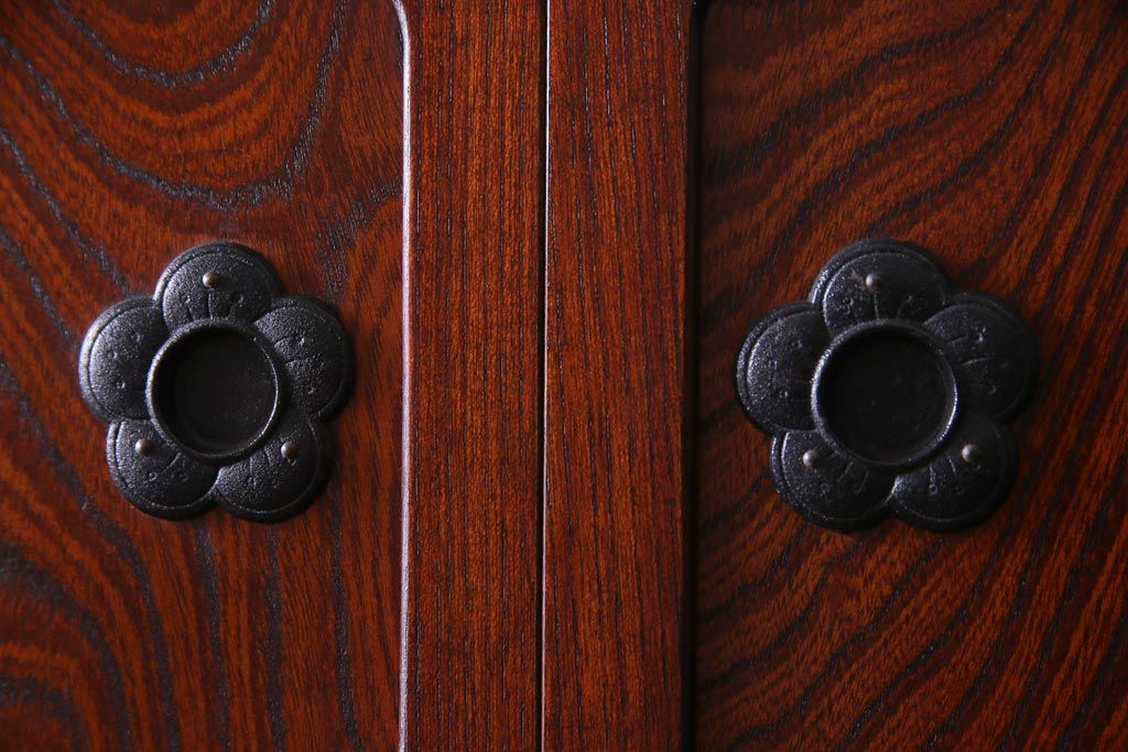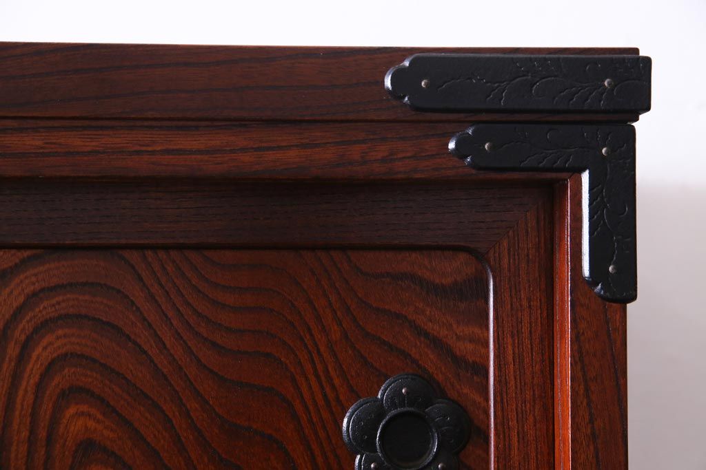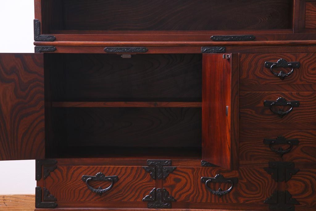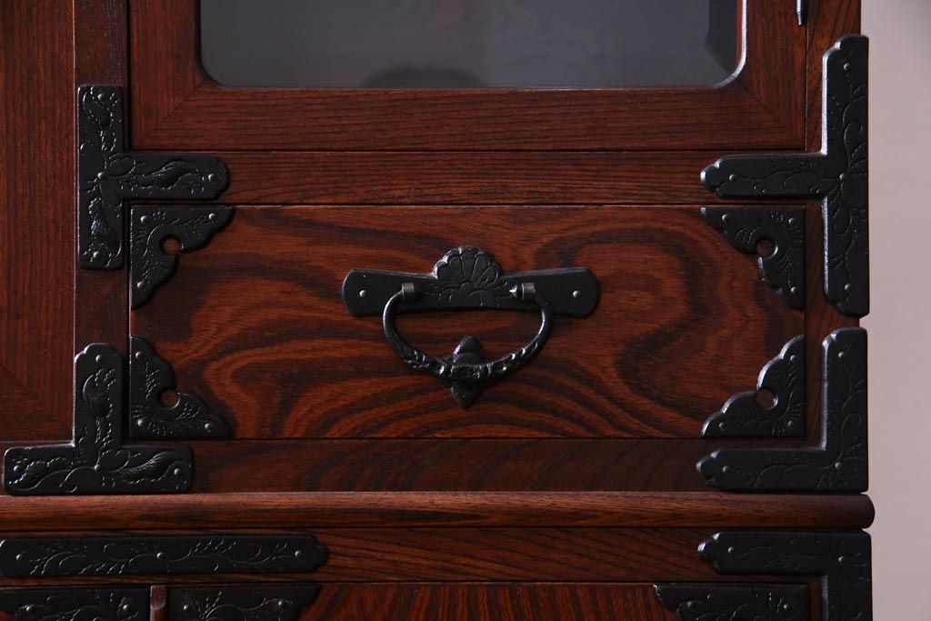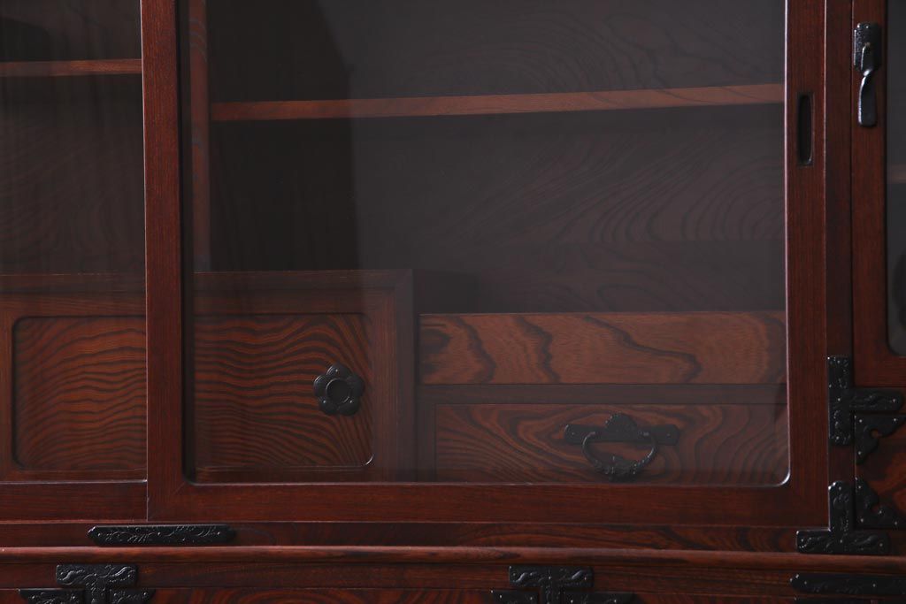 ラフジュ工房> 和箪笥 > 中古 伝統民芸 岩谷堂箪笥 菊幸 欅の杢目と金具が迫力のある61間茶棚(食器棚、収納棚)(定価約146万円)