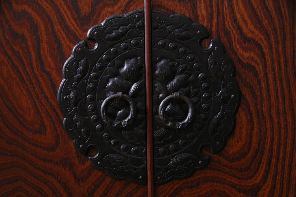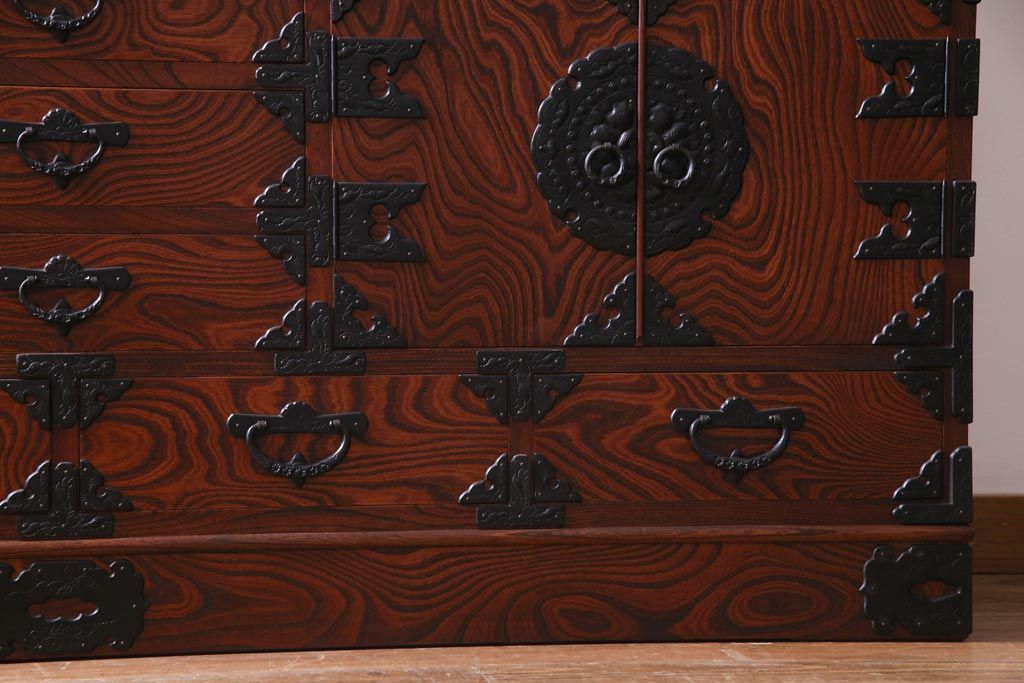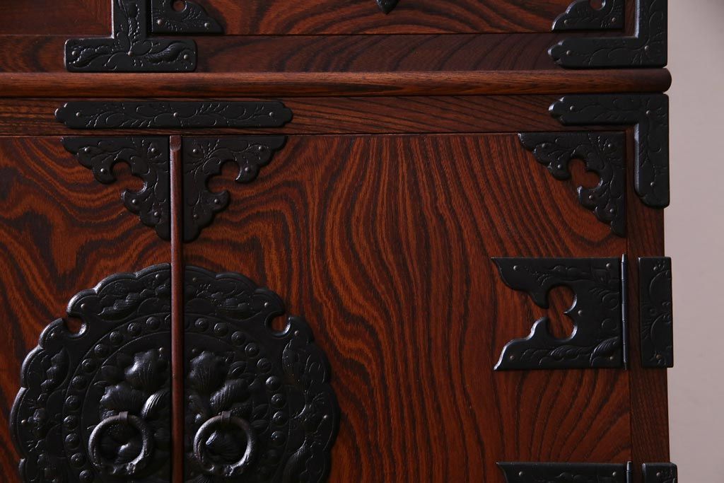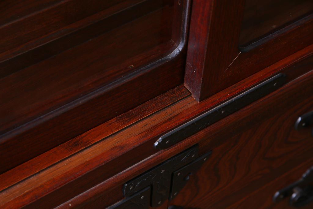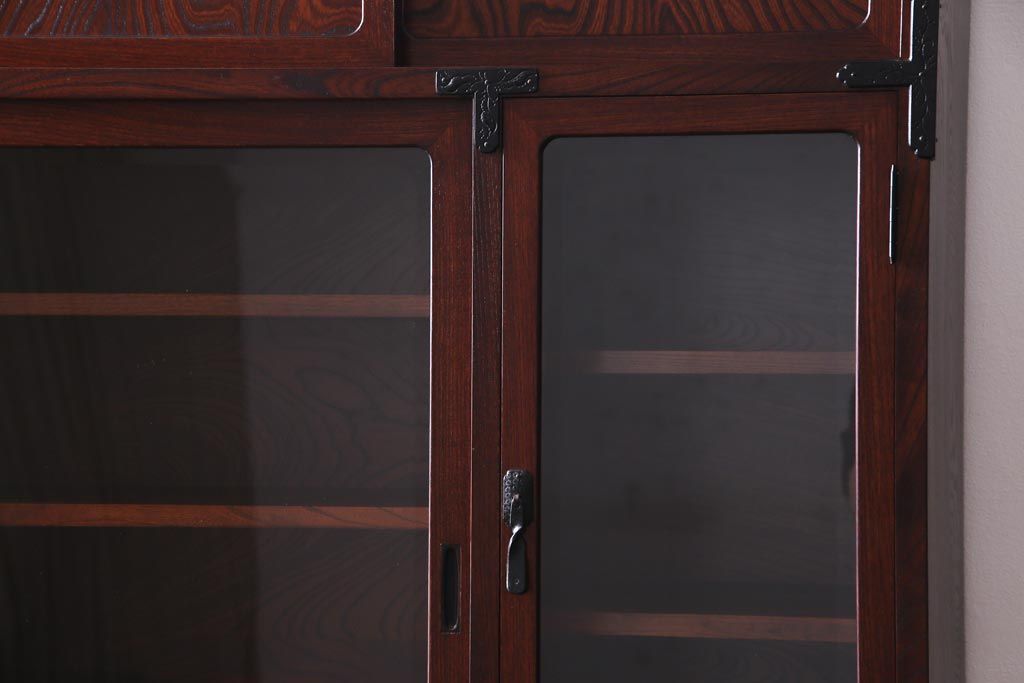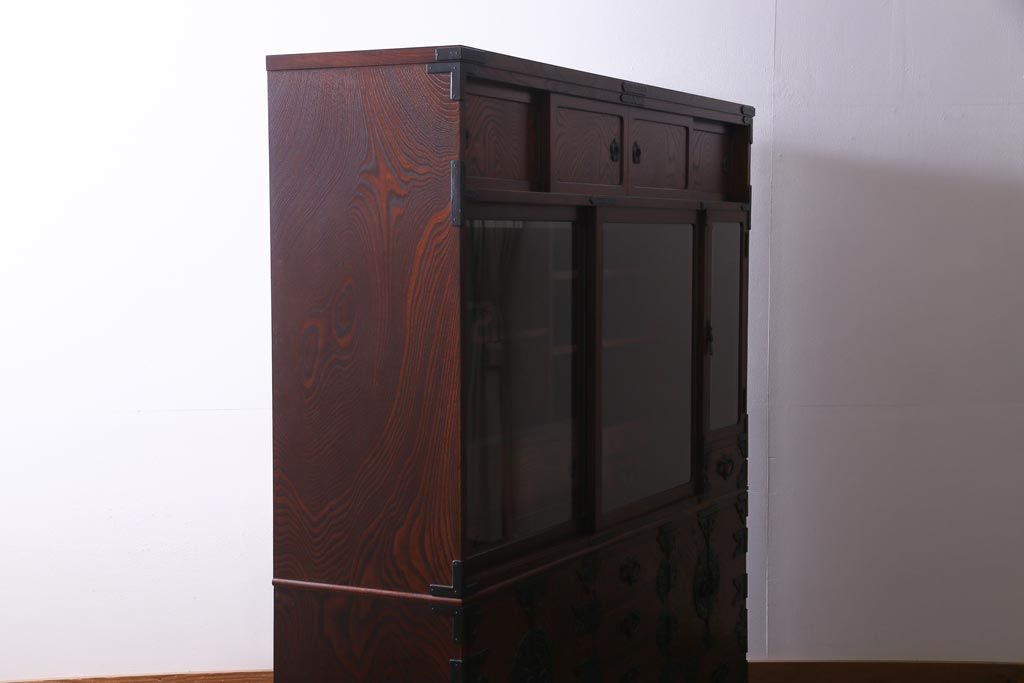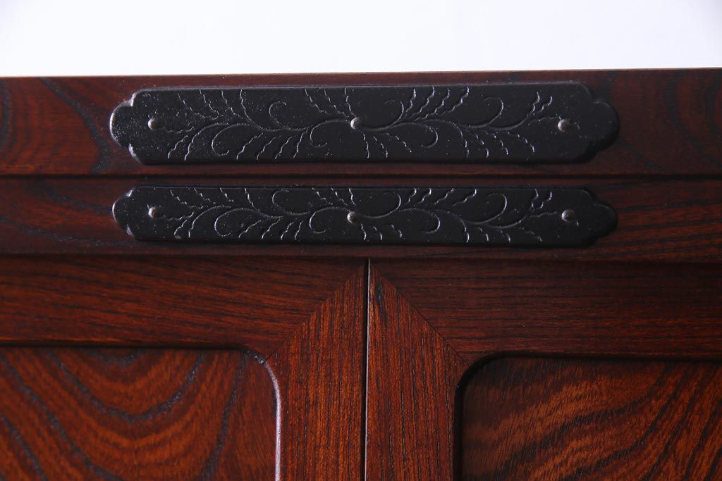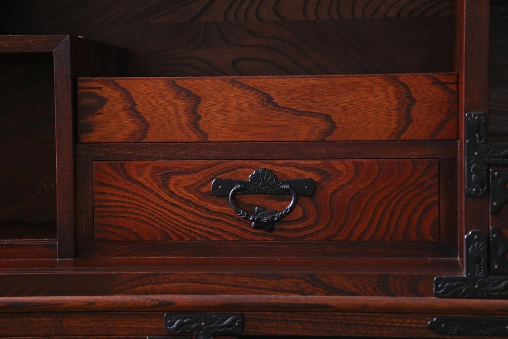 ラフジュ工房> 和箪笥 > 中古 伝統民芸 岩谷堂箪笥 菊幸 欅の杢目と金具が迫力のある61間茶棚(食器棚、収納棚)(定価約146万円)