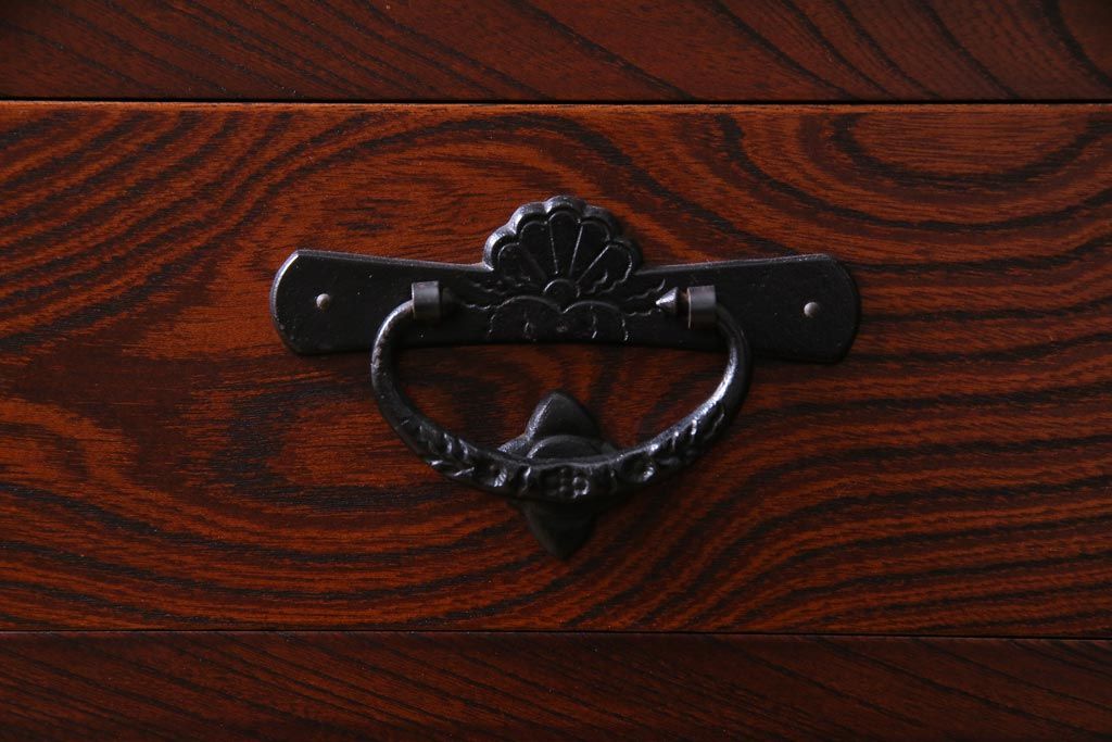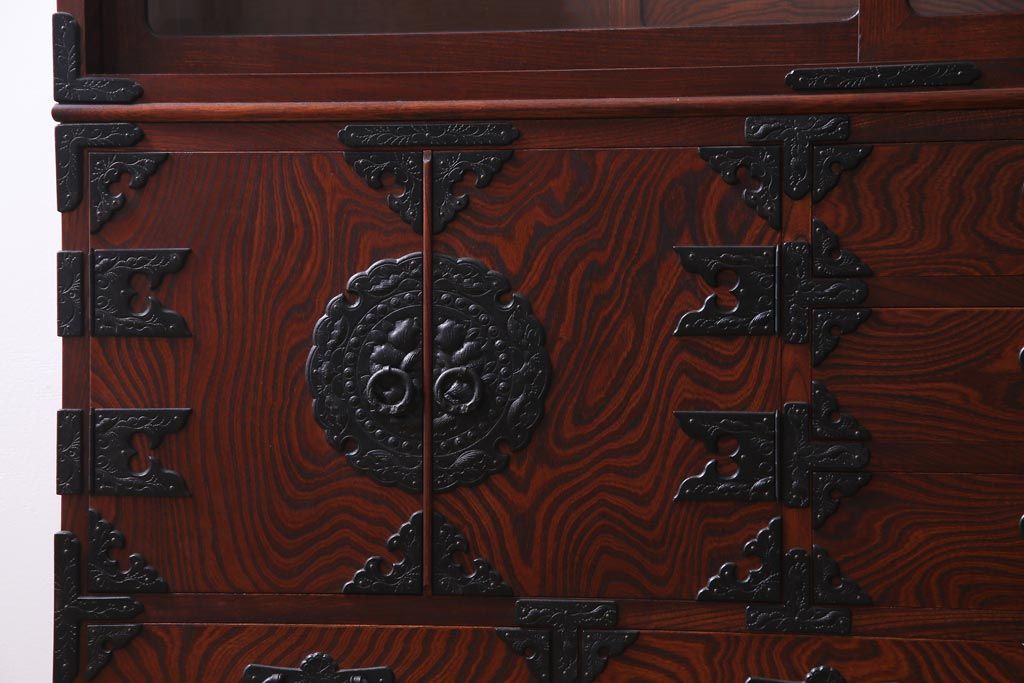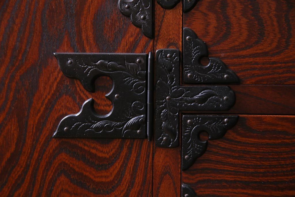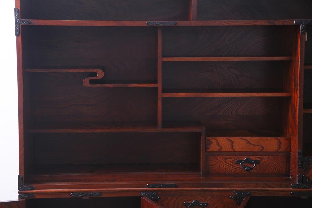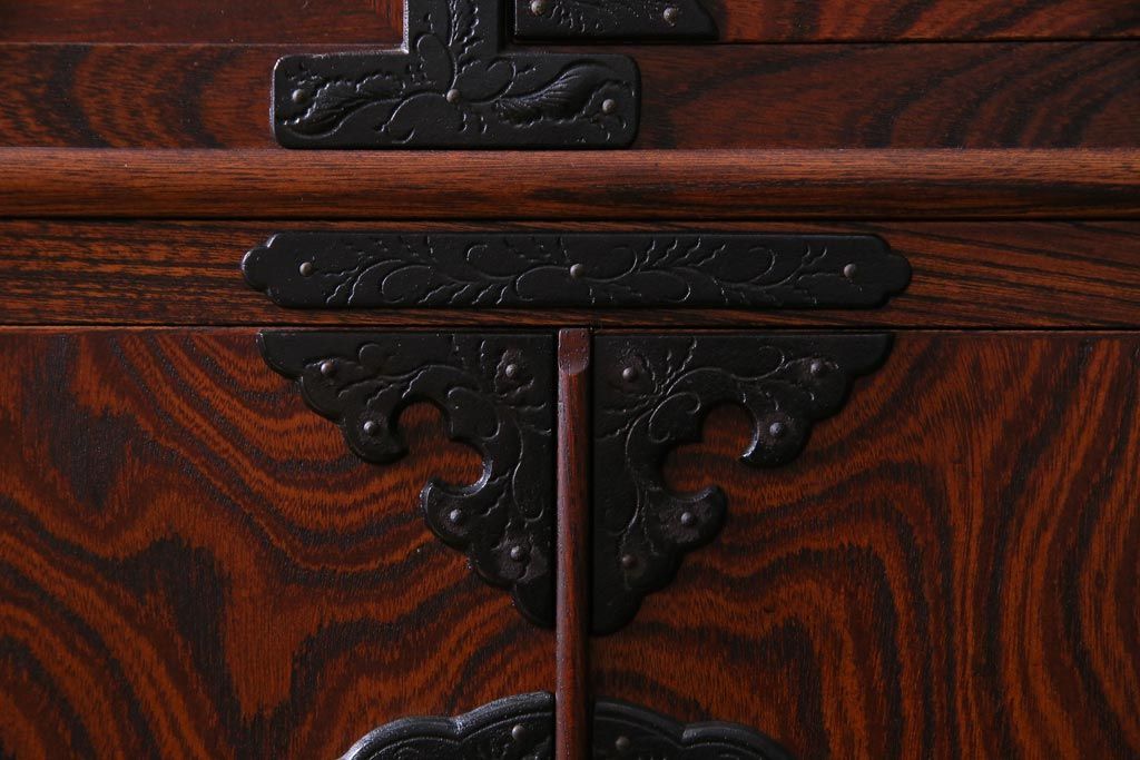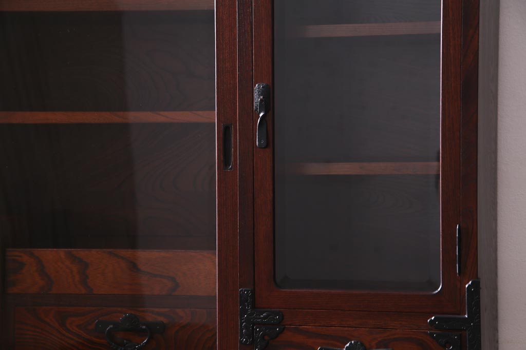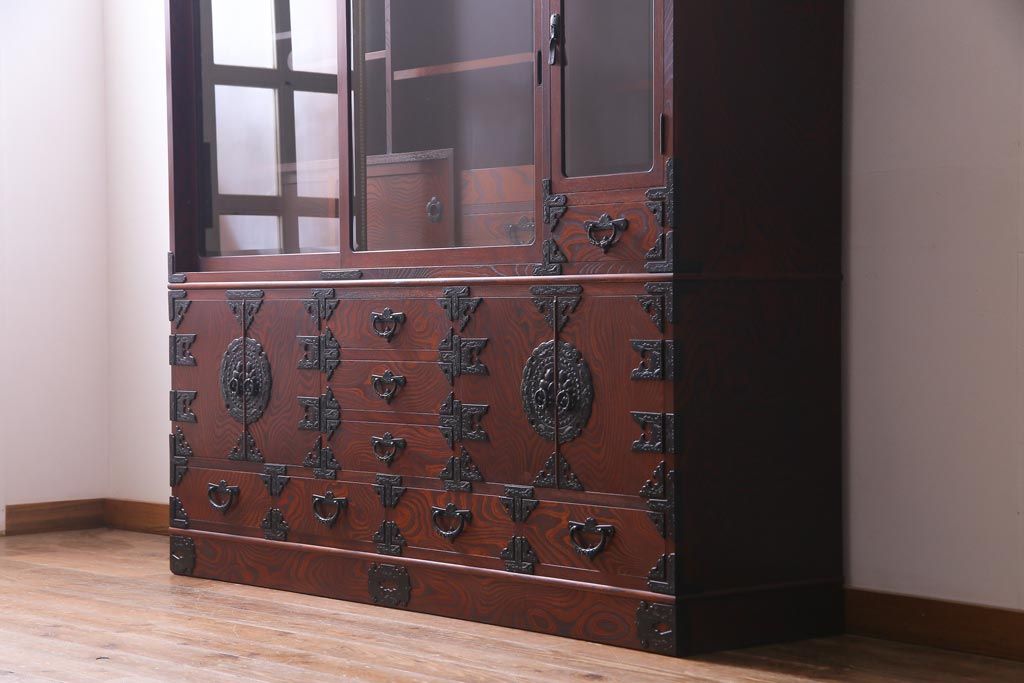 ラフジュ工房> 和箪笥 > 中古 伝統民芸 岩谷堂箪笥 菊幸 欅の杢目と金具が迫力のある61間茶棚(食器棚、収納棚)(定価約146万円)