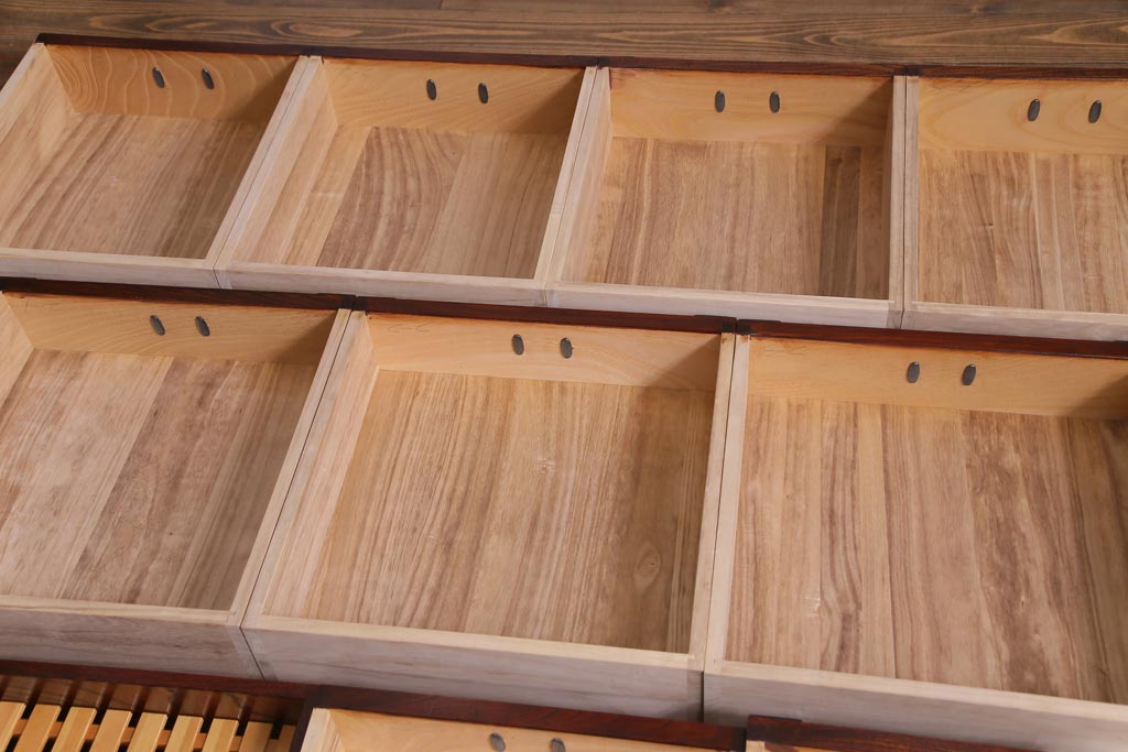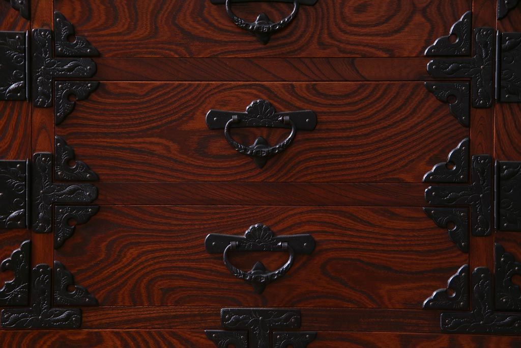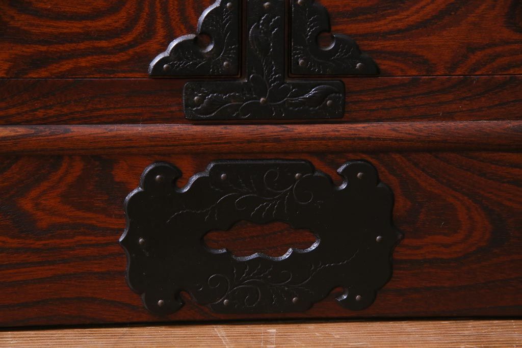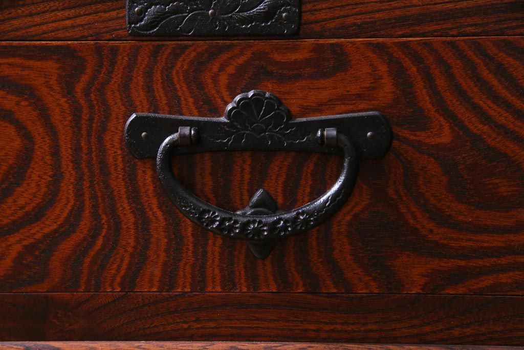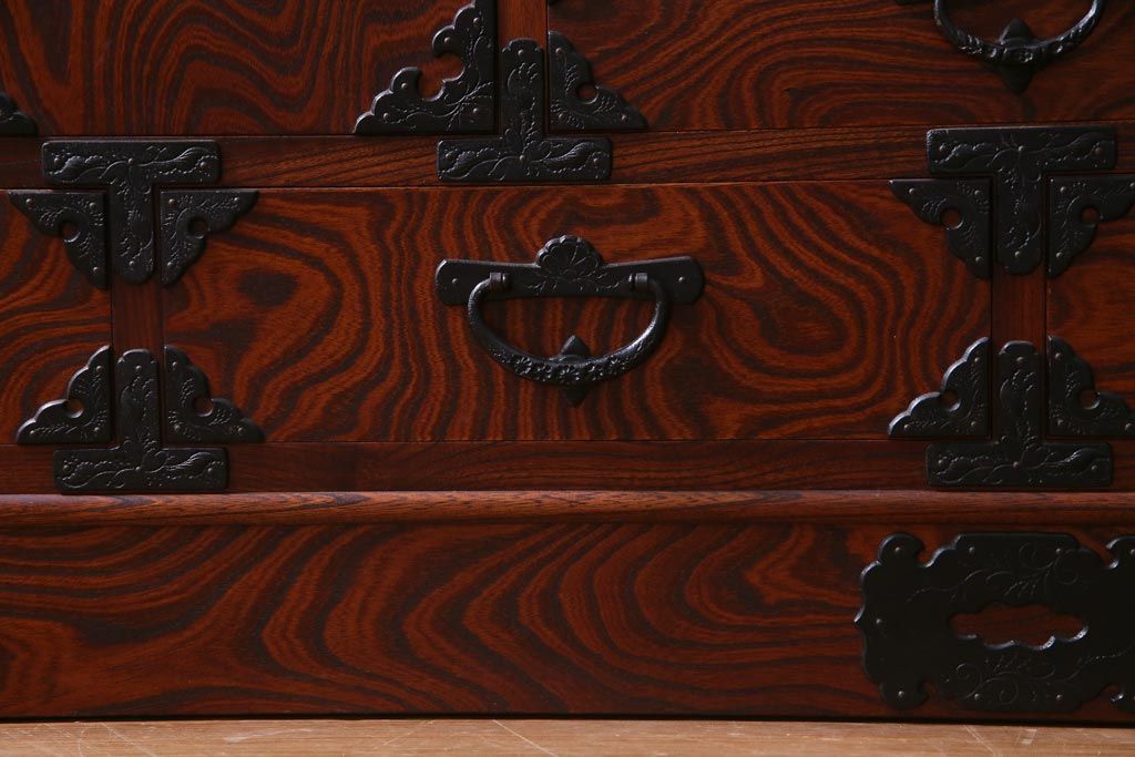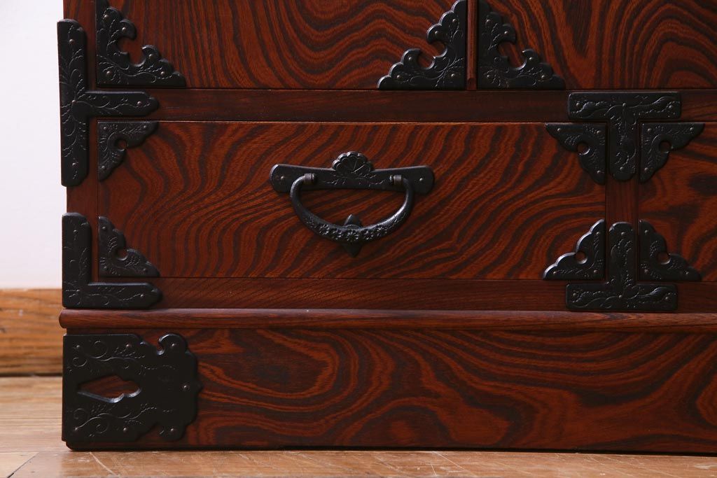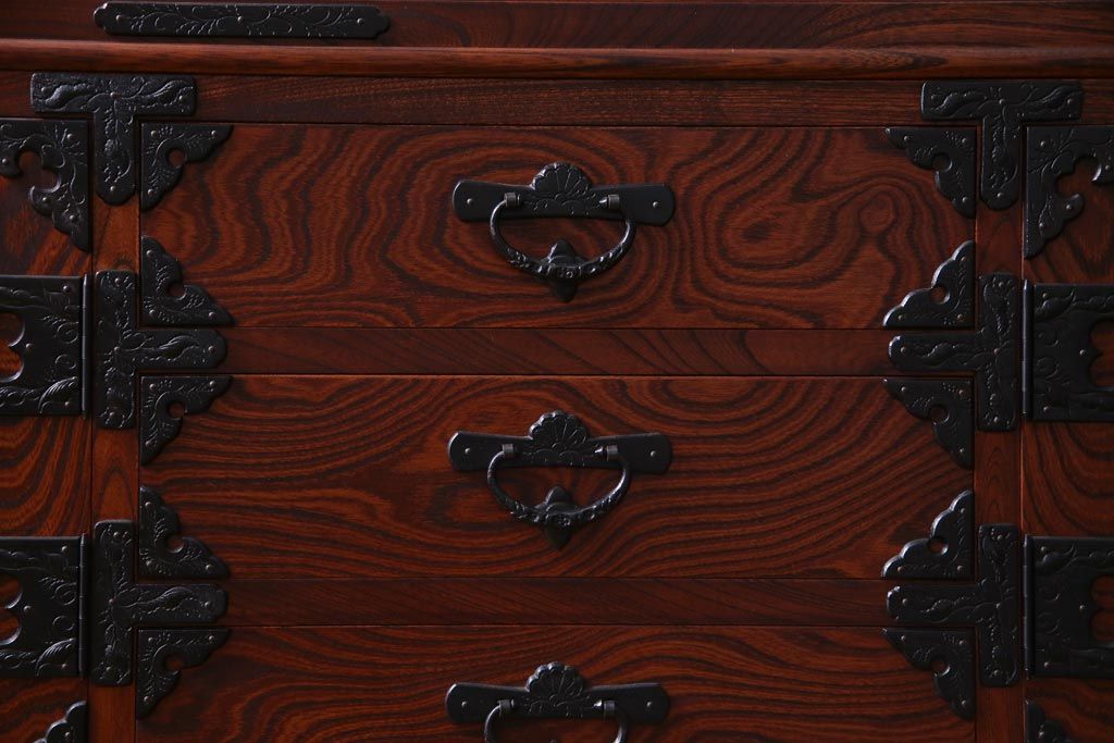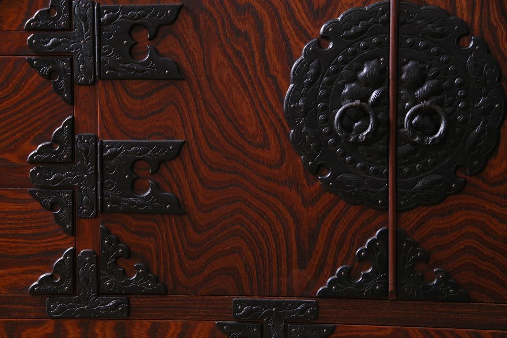 ラフジュ工房> 和箪笥 > 中古 伝統民芸 岩谷堂箪笥 菊幸 欅の杢目と金具が迫力のある61間茶棚(食器棚、収納棚)(定価約146万円)