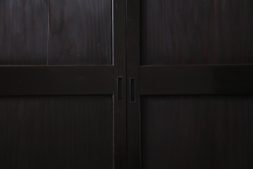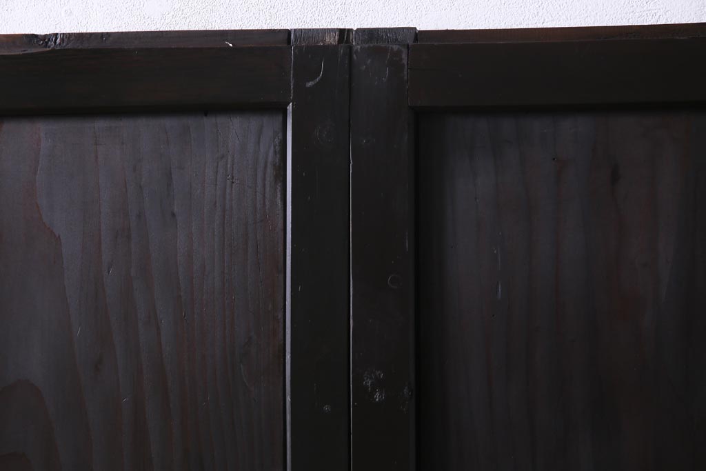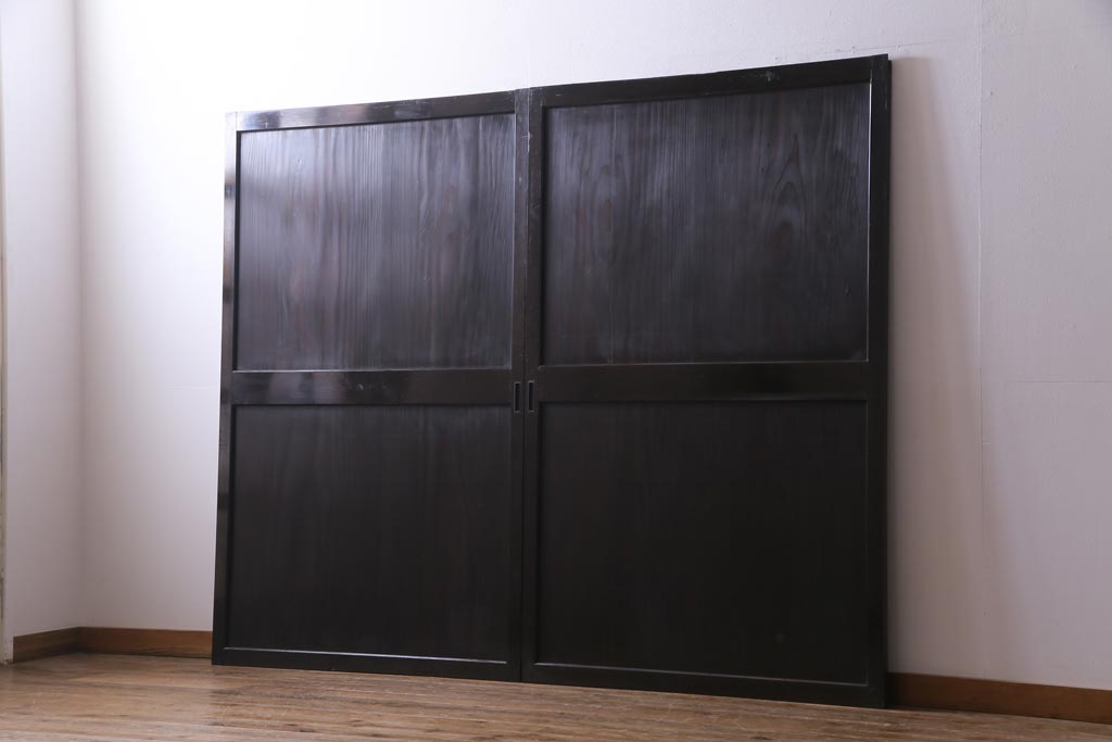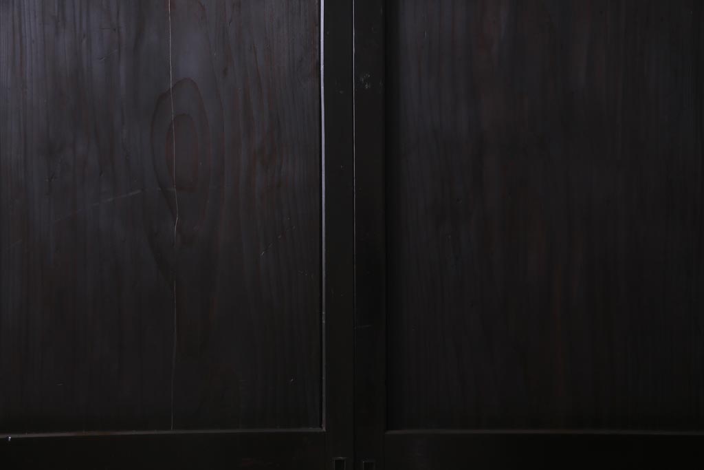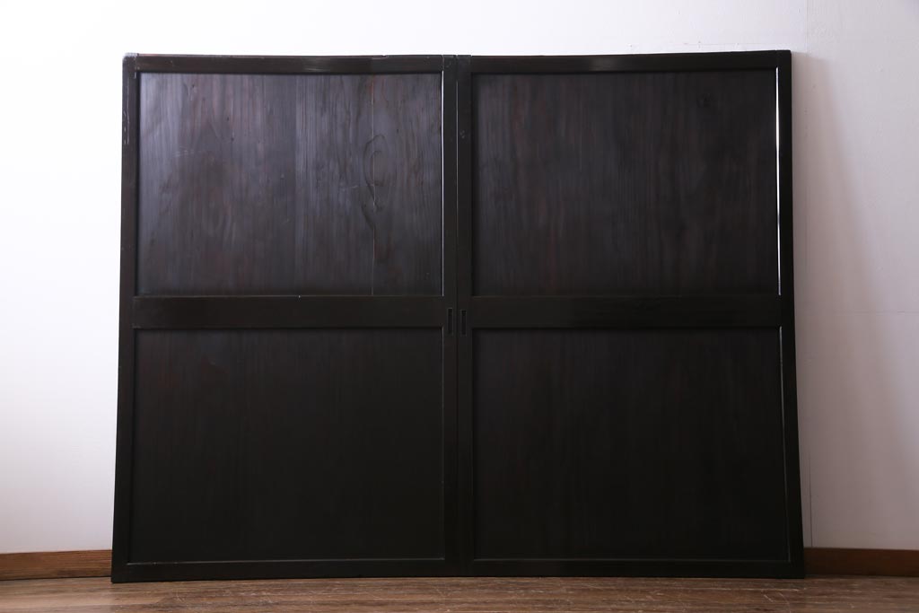 明治期 杉材 漆塗り 幅広サイズで存在感抜群の帯戸2枚セット(板戸、引き戸、建具)(R-035765)