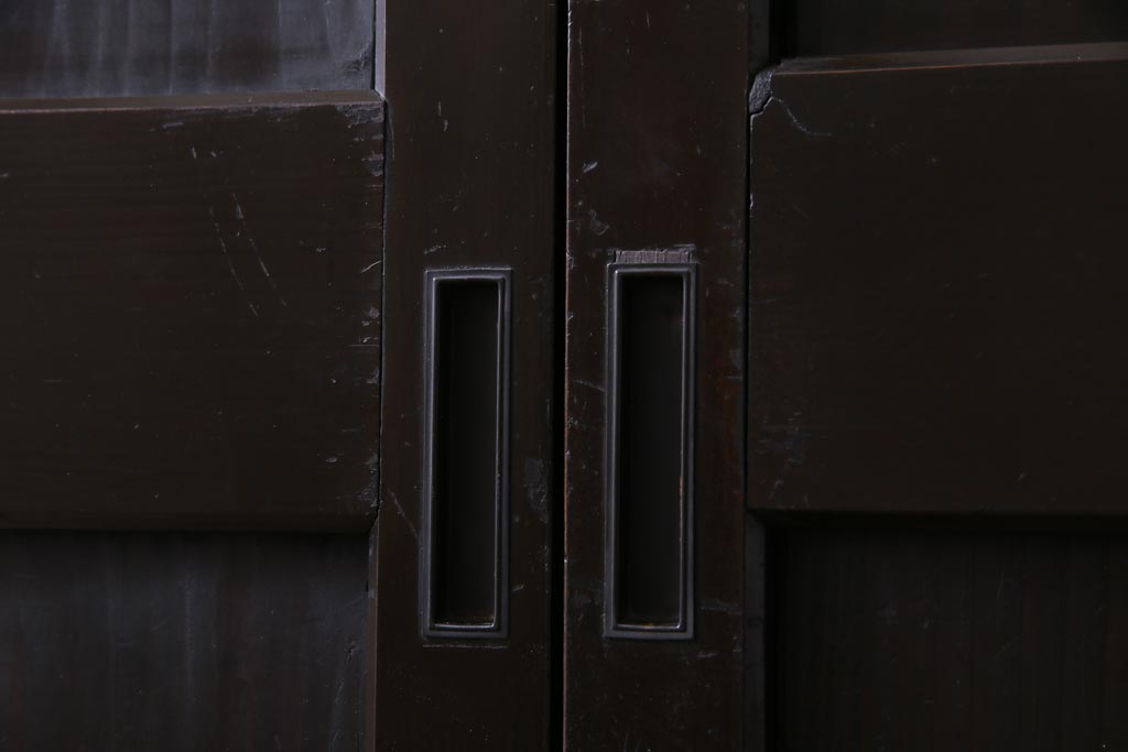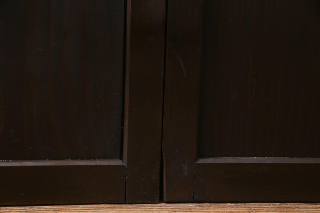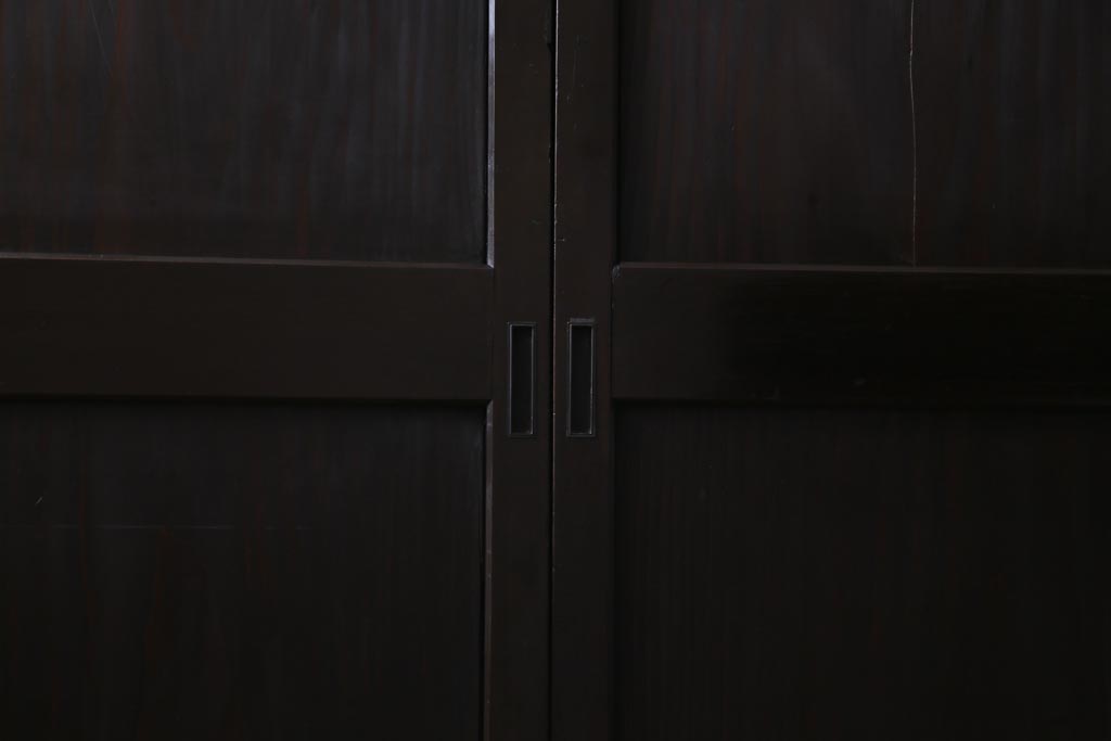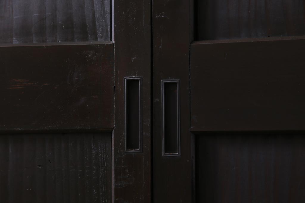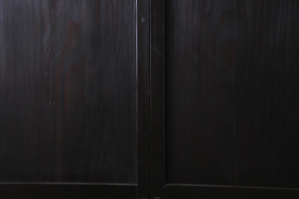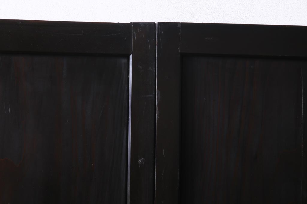 明治期 杉材 漆塗り 幅広サイズで存在感抜群の帯戸2枚セット(板戸、引き戸、建具)(R-035765)