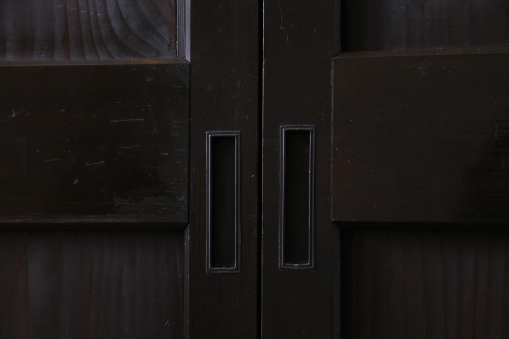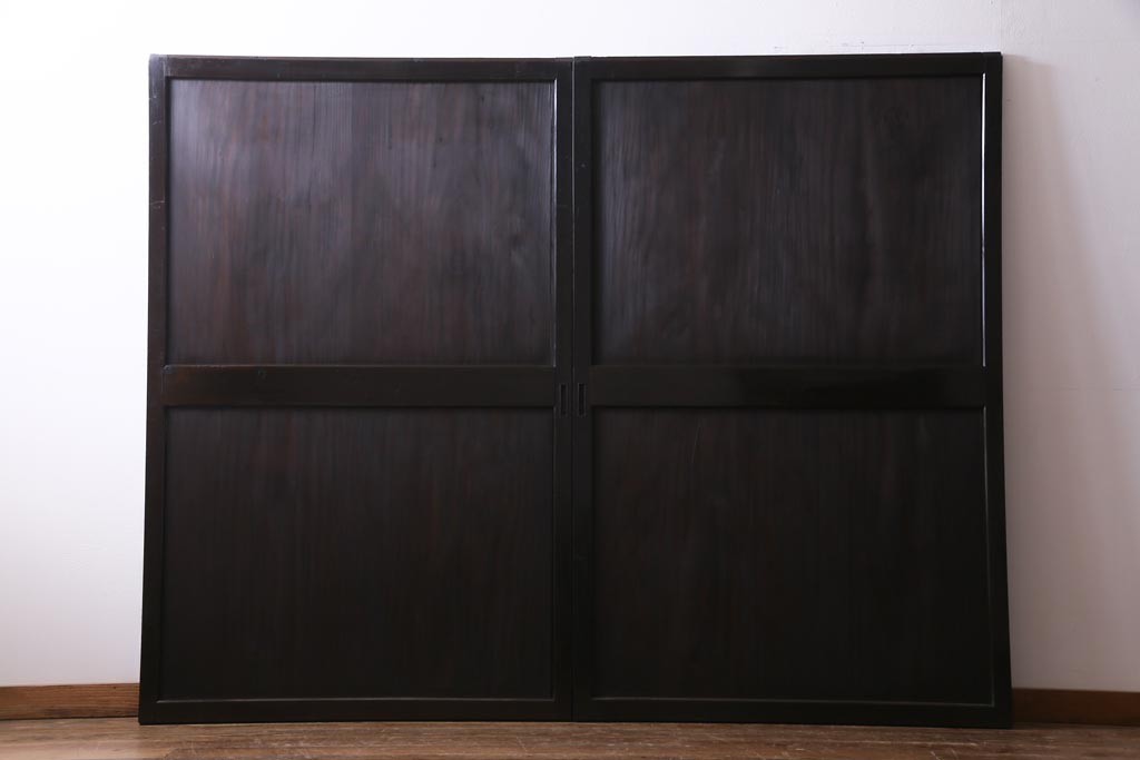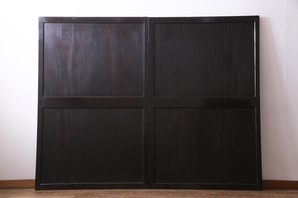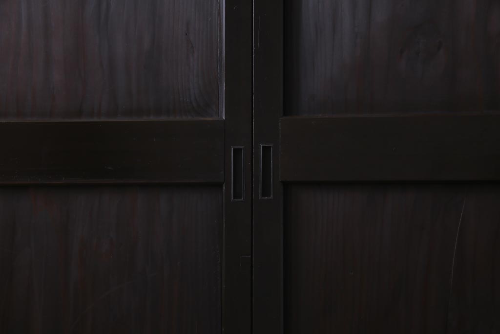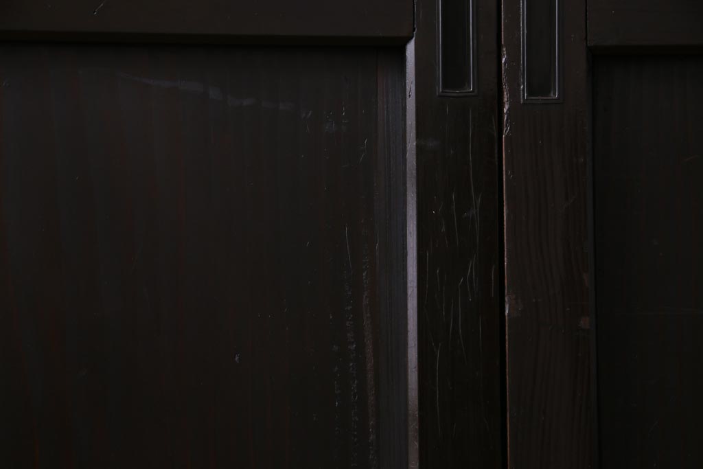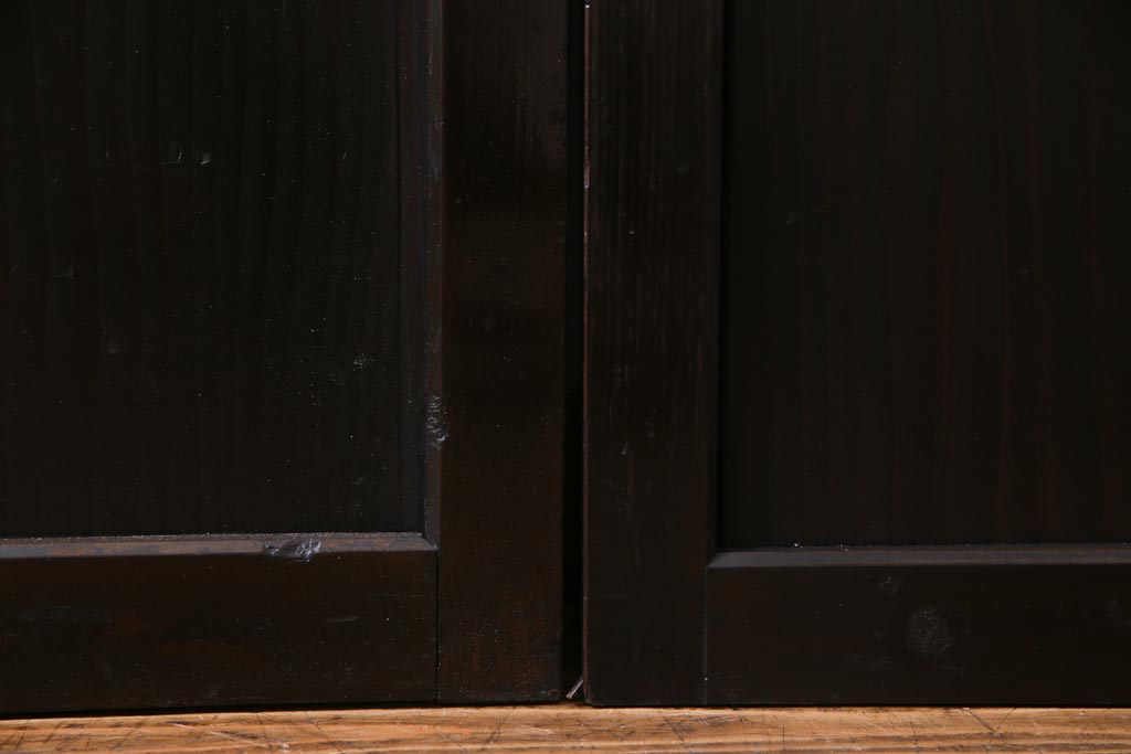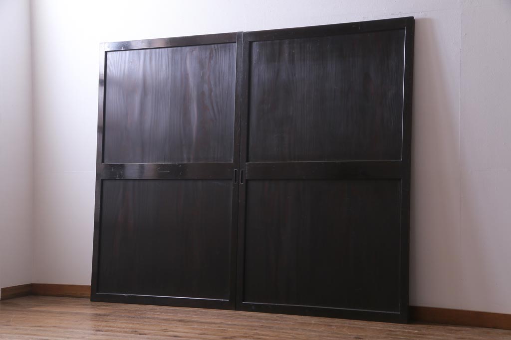 明治期 杉材 漆塗り 幅広サイズで存在感抜群の帯戸2枚セット(板戸、引き戸、建具)(R-035766)