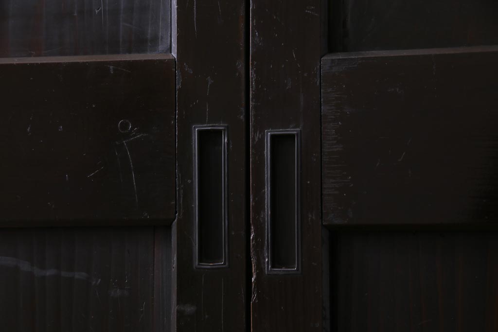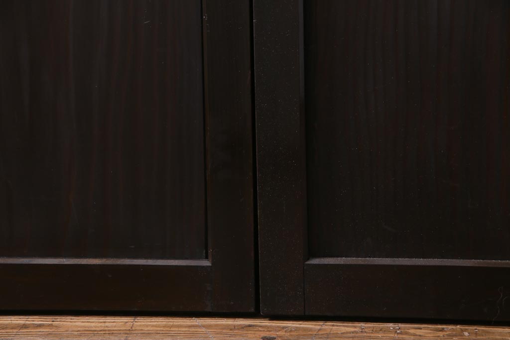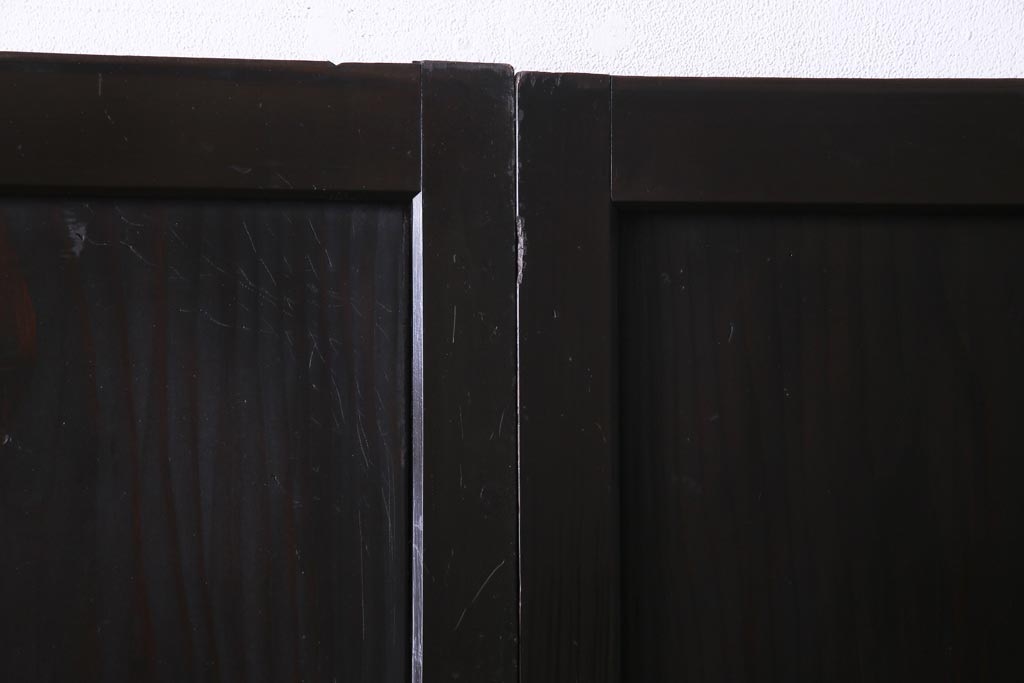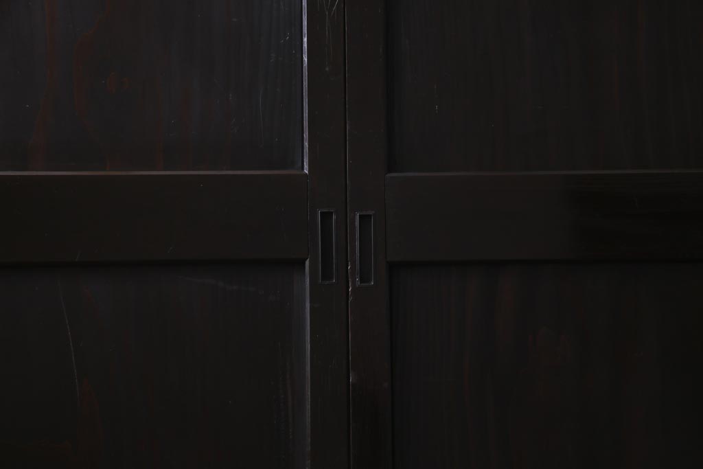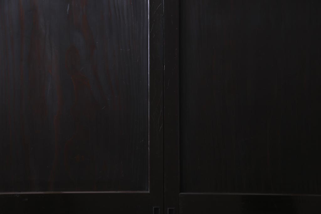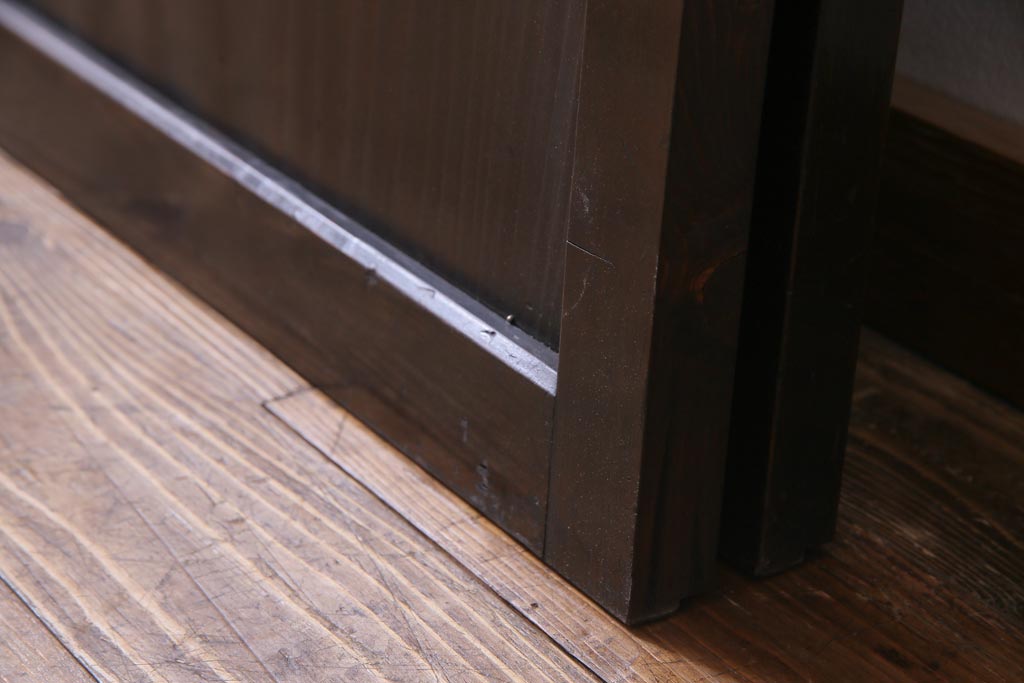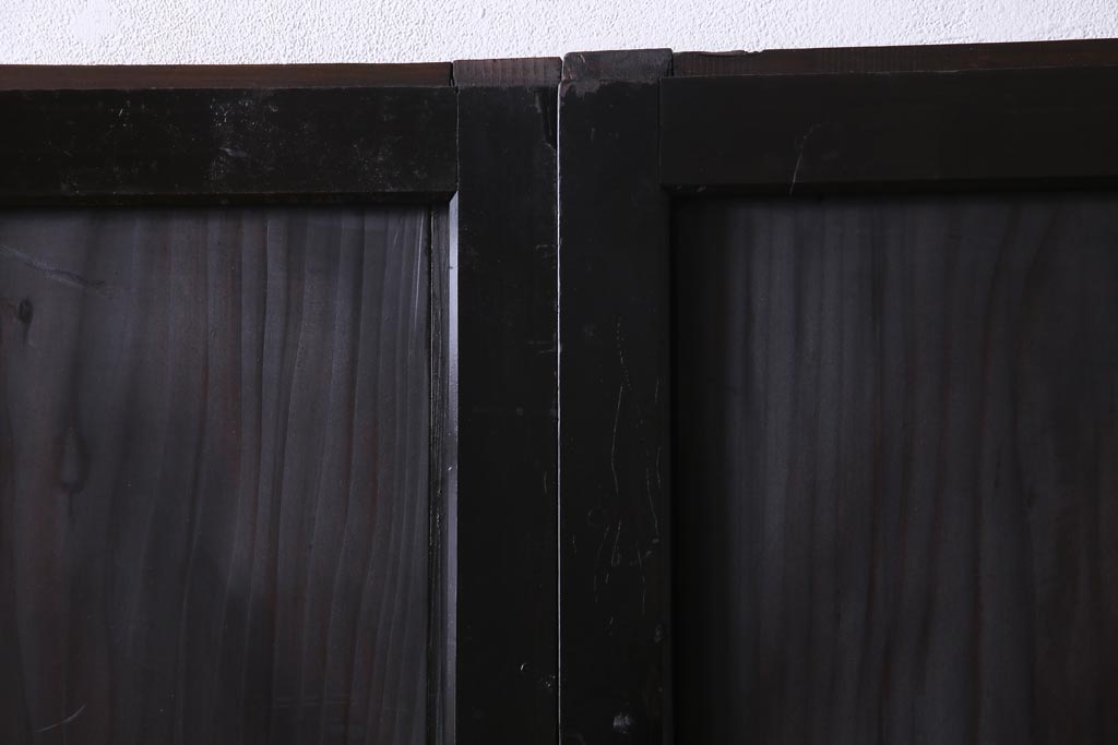 明治期 杉材 漆塗り 幅広サイズで存在感抜群の帯戸2枚セット(板戸、引き戸、建具)(R-035766)