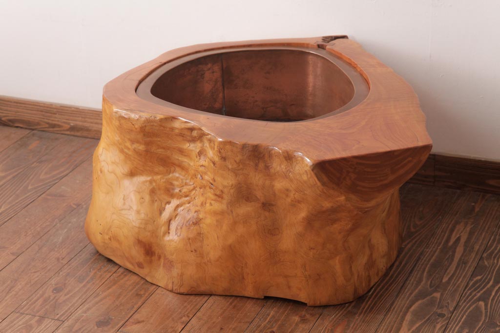 ビンテージ ケヤキ材 存在感のある刳り貫き火鉢(くりぬき火鉢、手あぶり)です。