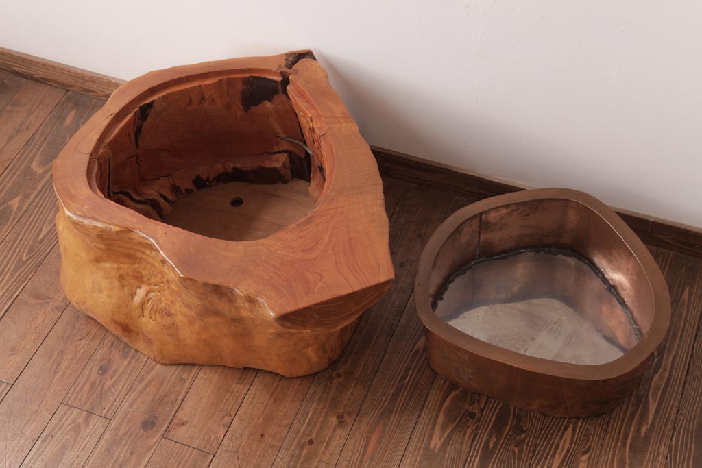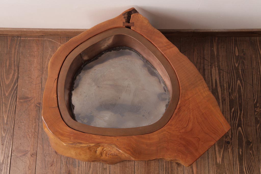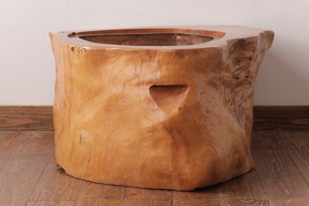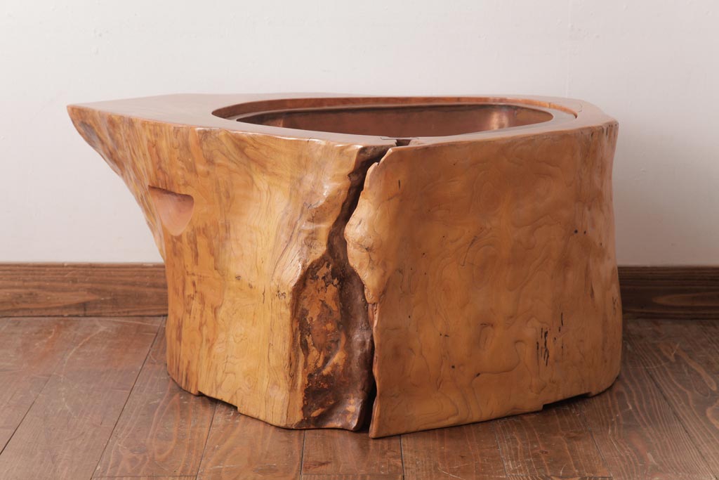 火鉢> 木製火鉢 > アンティーク雑貨 ビンテージ ケヤキ材 存在感のある刳り貫き火鉢(くりぬき火鉢、手あぶり)