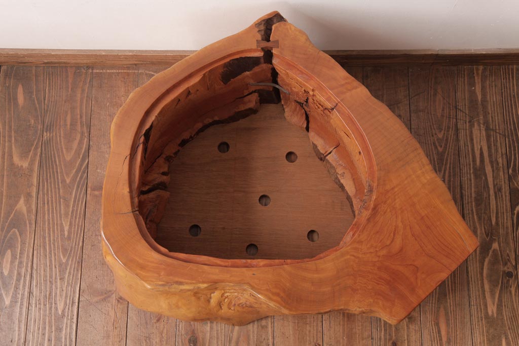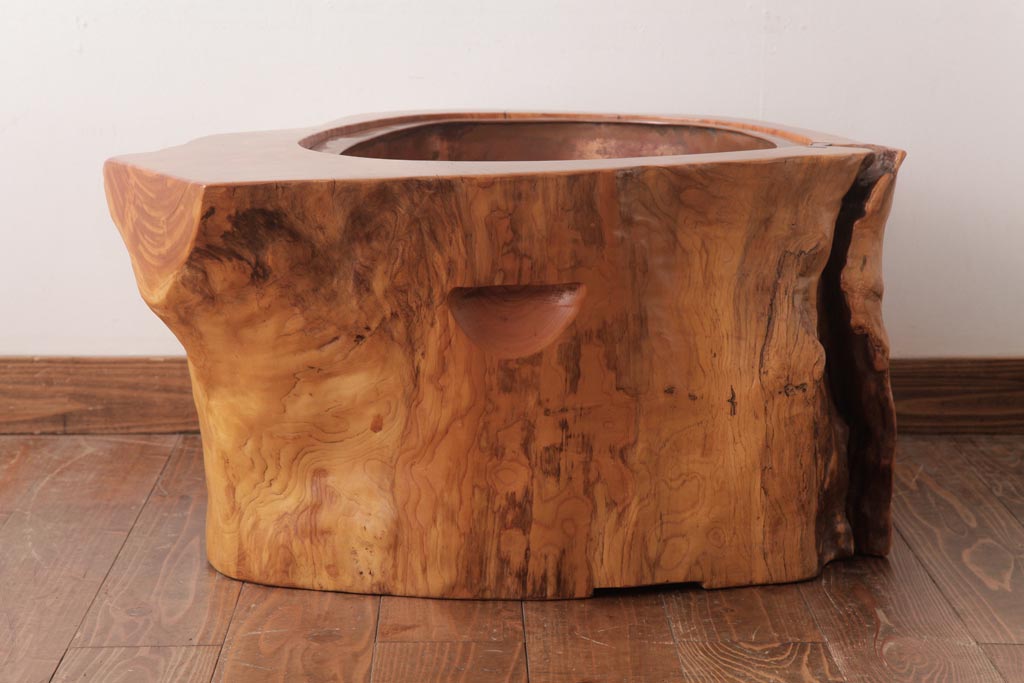 アンティーク雑貨 ビンテージ ケヤキ材 存在感のある刳り貫き火鉢(くりぬき火鉢、手あぶり)