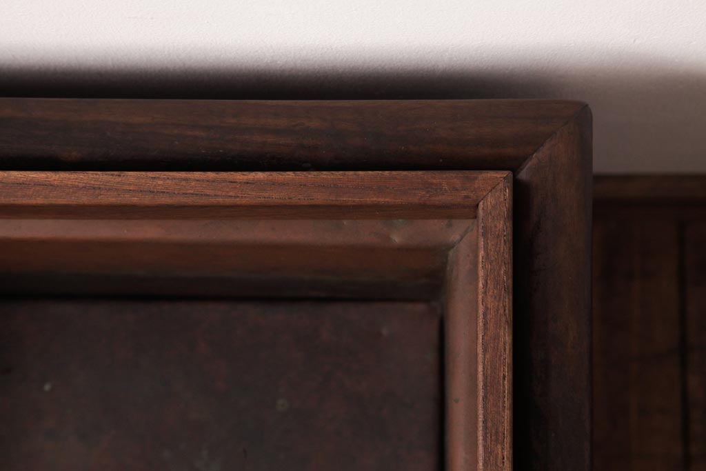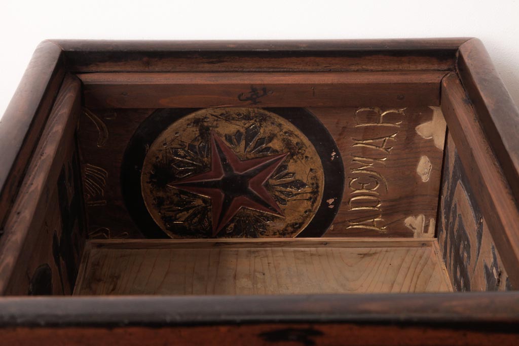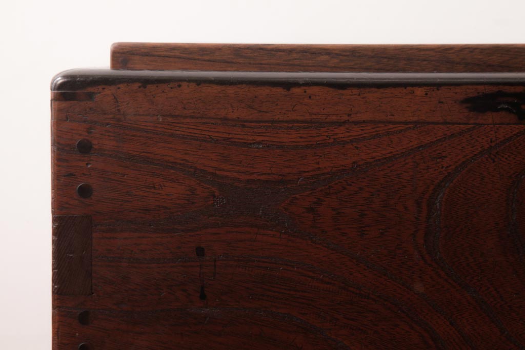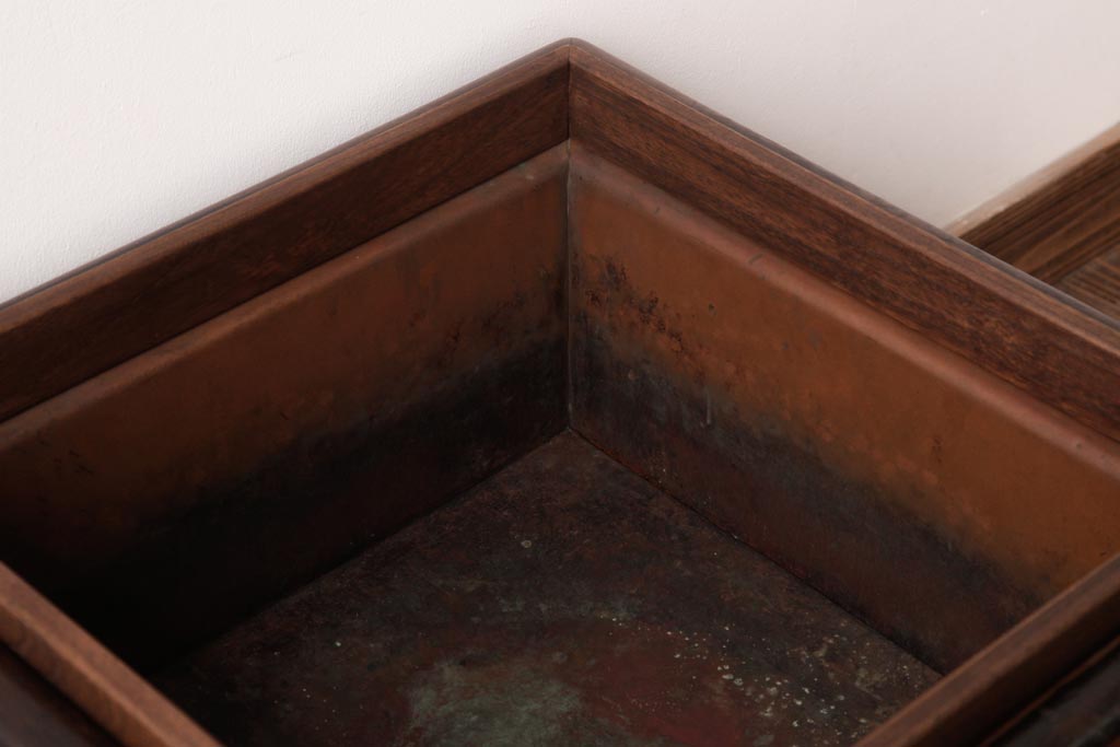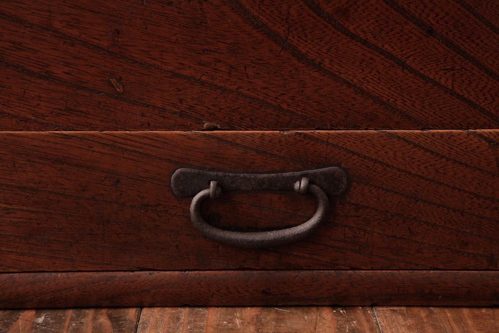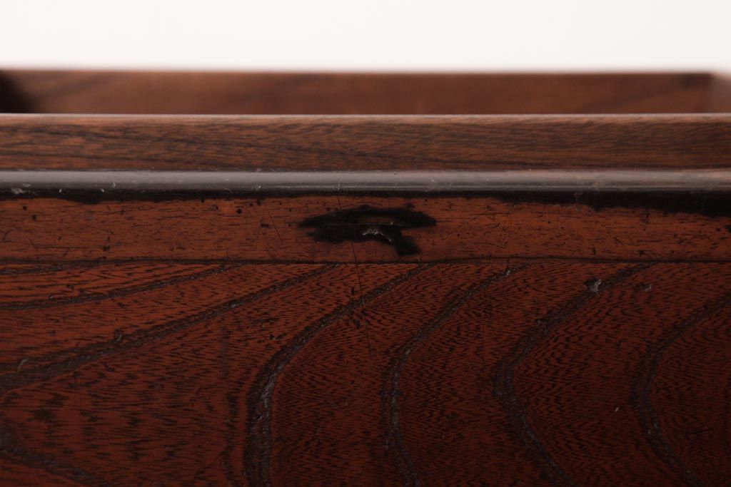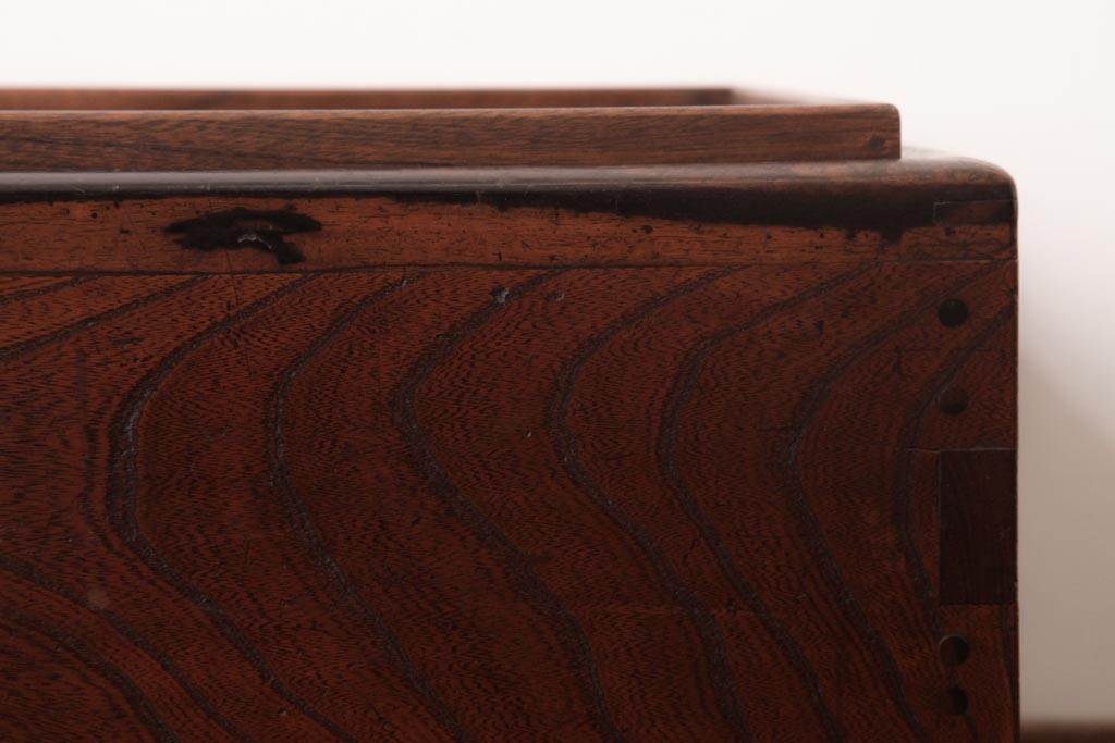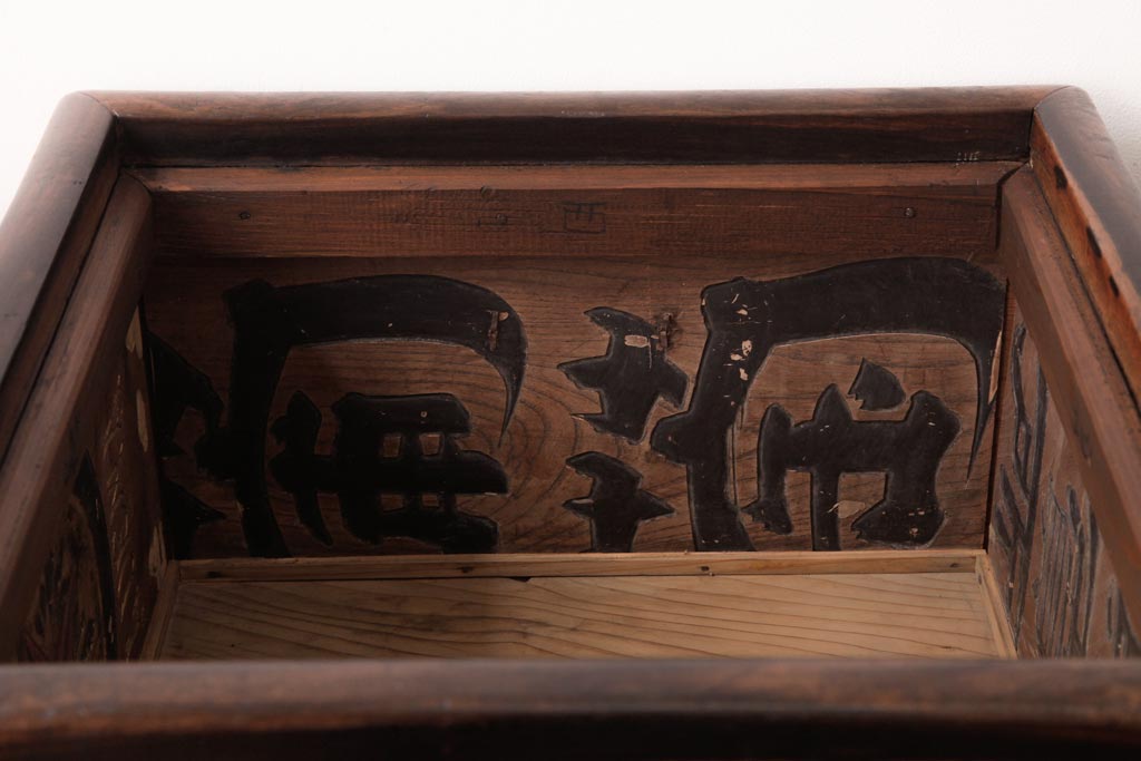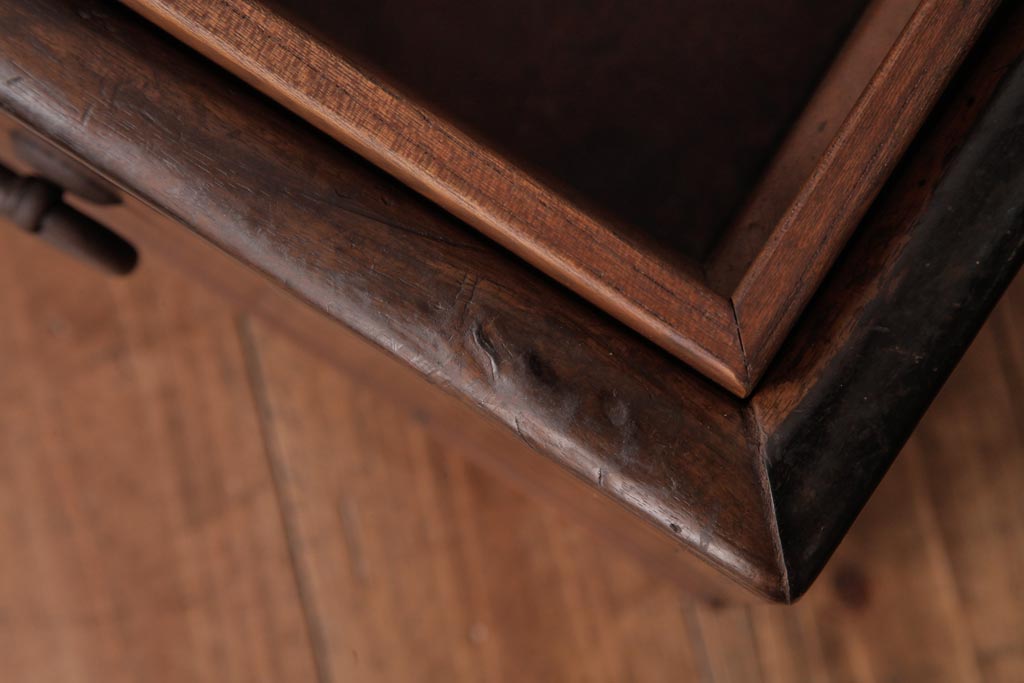 火鉢> 木製火鉢 > アンティーク雑貨 和製アンティーク 引き出し付き 総ケヤキ材 黒柿の縁がポイントの角火鉢(手あぶり、箱火鉢)