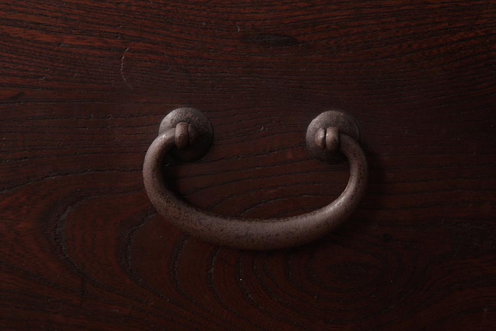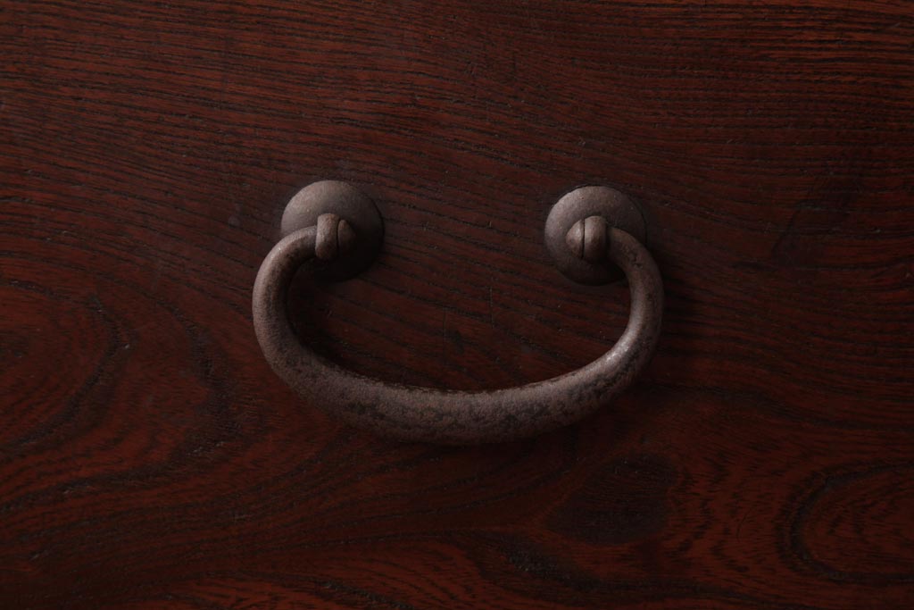 和製アンティーク 引き出し付き 総ケヤキ材 黒柿の縁がポイントの角火鉢(手あぶり、箱火鉢)です。