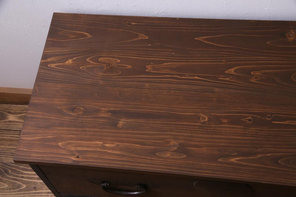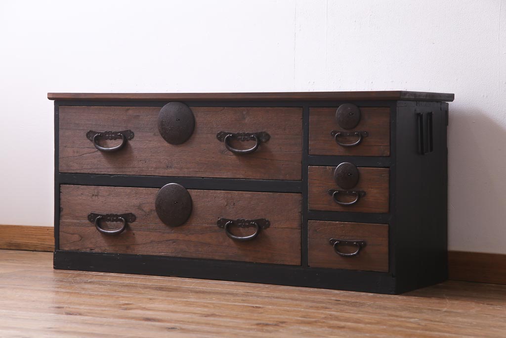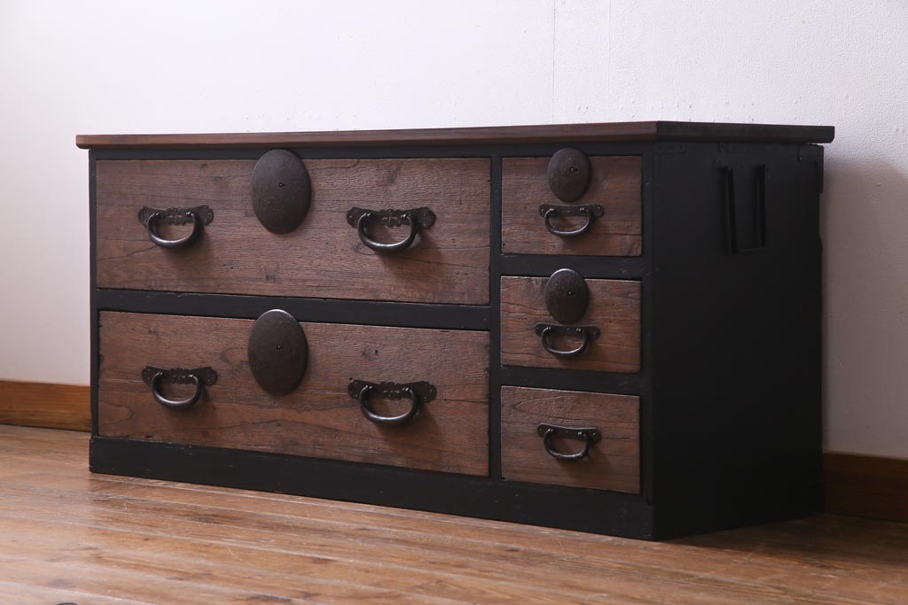 アンティーク家具 天板リメイク ペイントがモダンな雰囲気を漂わせる箪笥ローボード(テレビ台、アンティークチェスト)