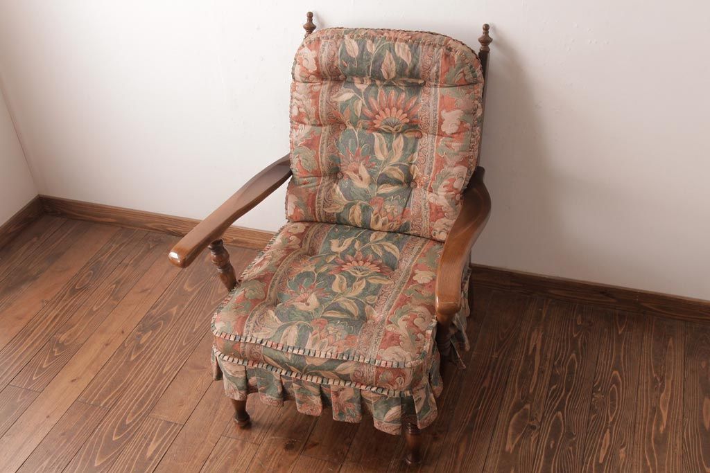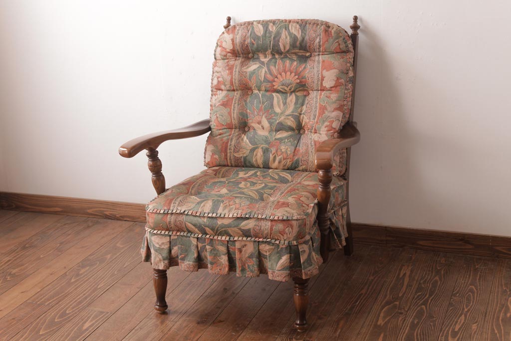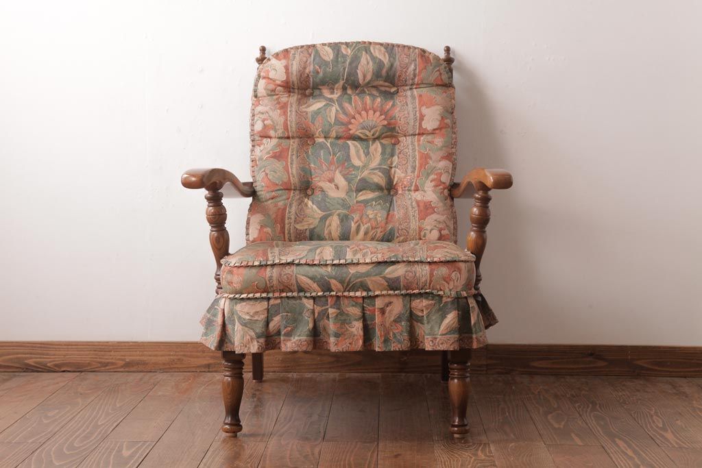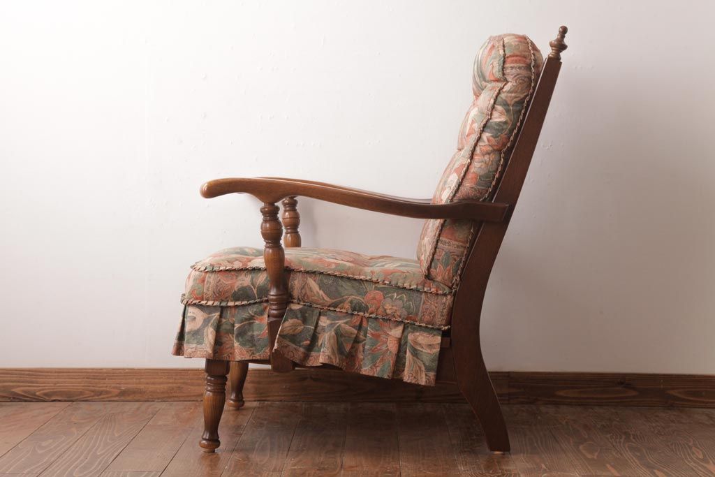中古 飛騨産業 キツツキ 絵画のようなファブリックが素敵な1人掛けソファです。