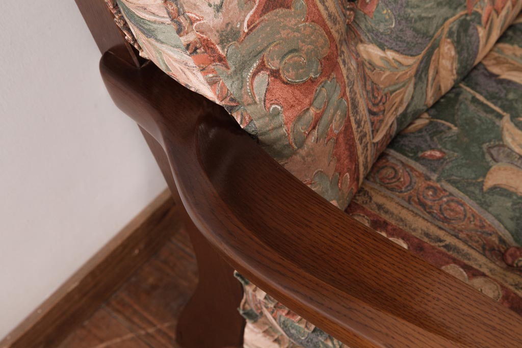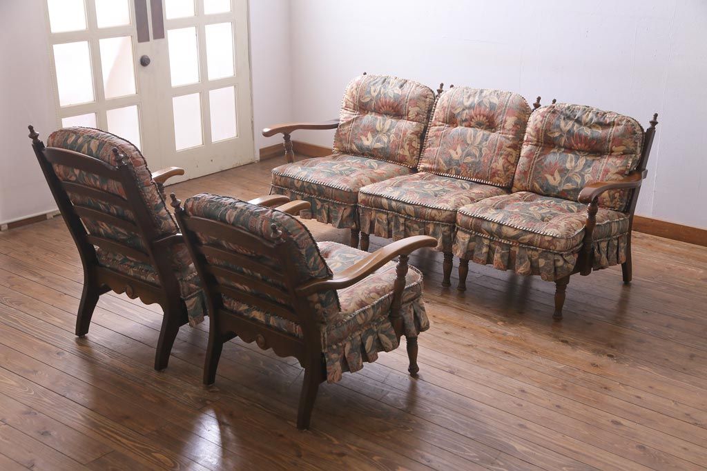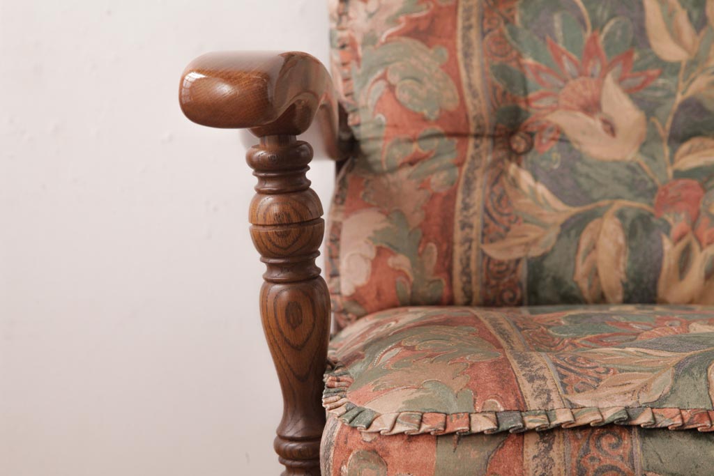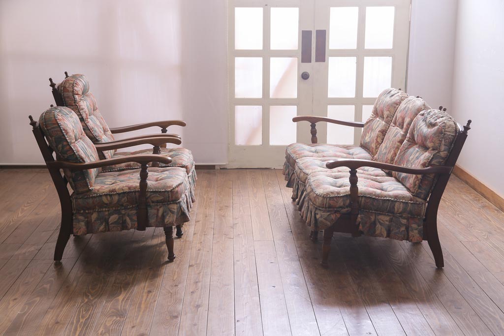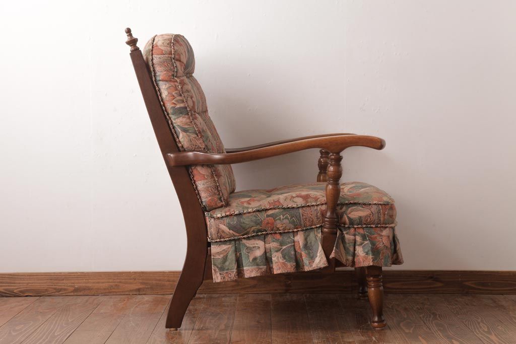中古 飛騨産業 キツツキ 絵画のようなファブリックが素敵な1人掛けソファです。