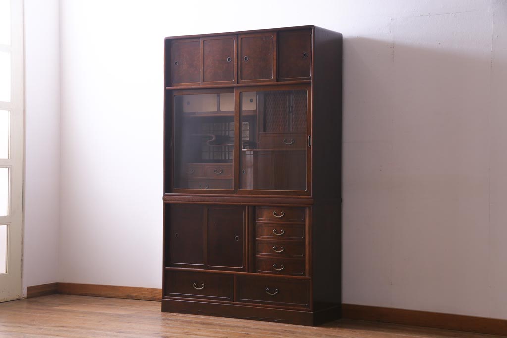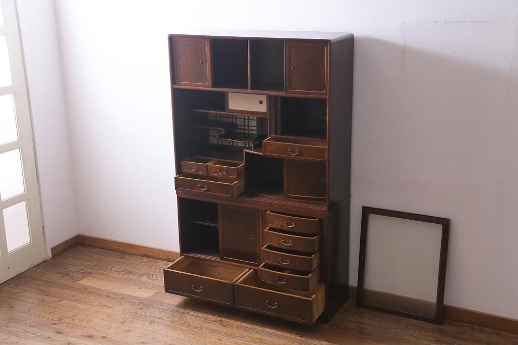 ラフジュ工房> 和箪笥 > アンティーク家具 和製アンティーク 昭和期 桑材・桐材 細部までこだわりを感じる茶箪笥(茶棚、タンス、戸棚、桐箪笥、桐たんす)