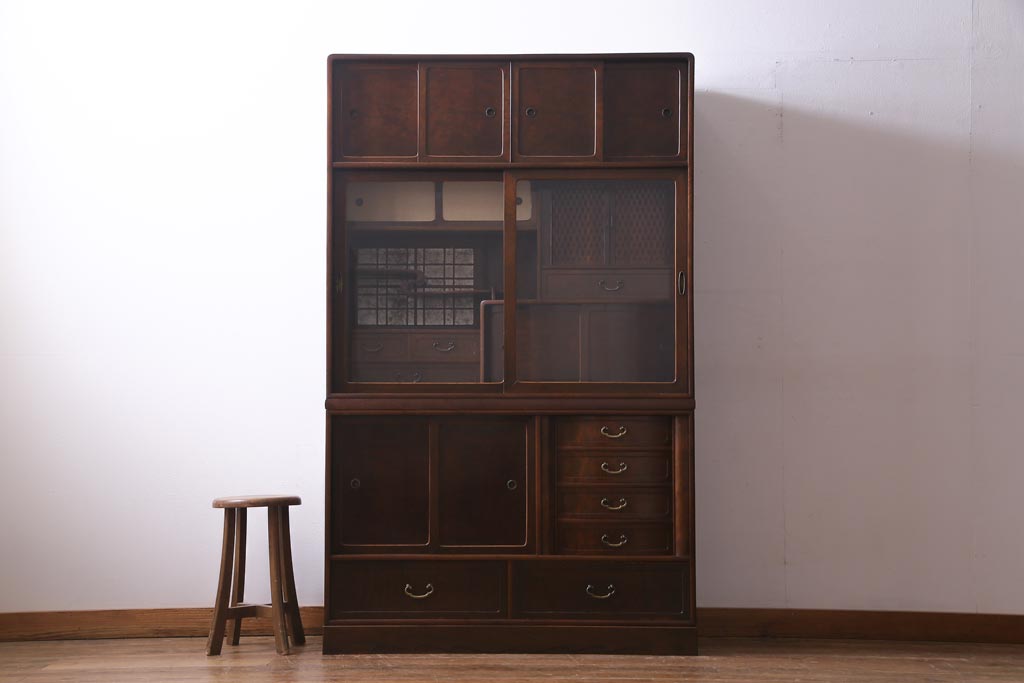 ラフジュ工房> 和箪笥> 茶箪笥・茶棚 > アンティーク家具 和製アンティーク 昭和期 桑材・桐材 細部までこだわりを感じる茶箪笥(茶棚、タンス、戸棚、桐箪笥、桐たんす)