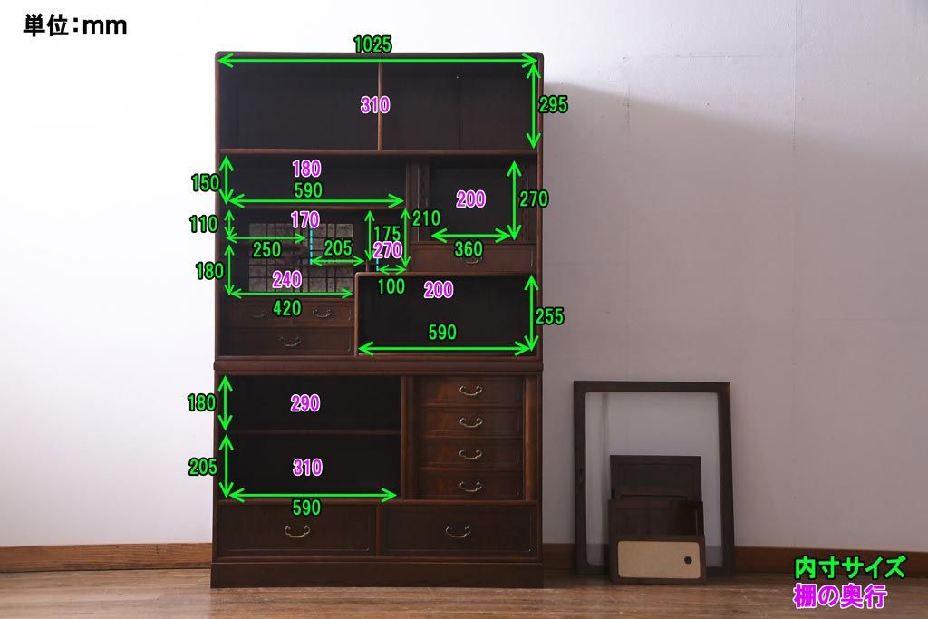 アンティーク家具 和製アンティーク 昭和期 桑材・桐材 細部までこだわりを感じる茶箪笥(茶棚、タンス、戸棚、桐箪笥、桐たんす)