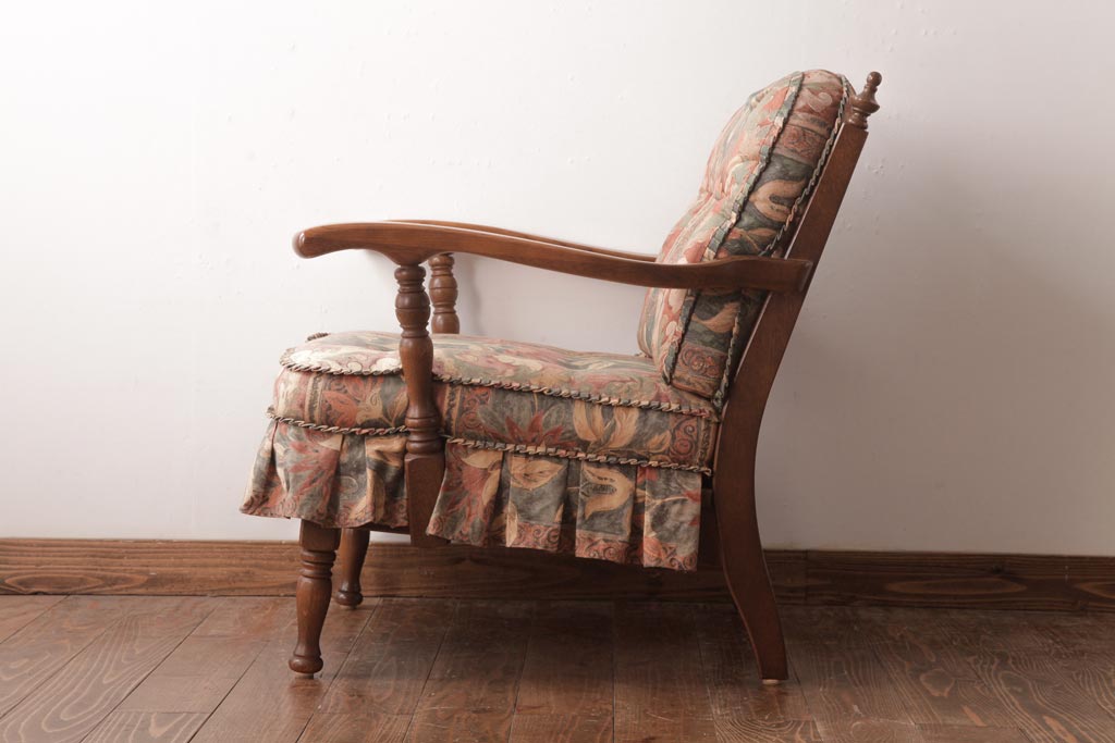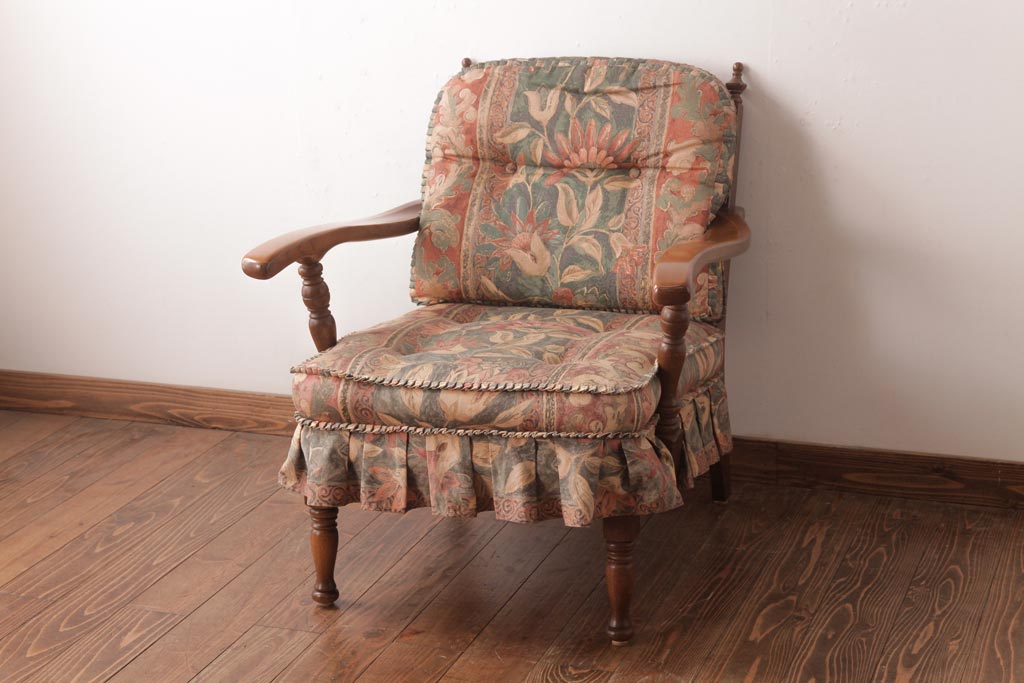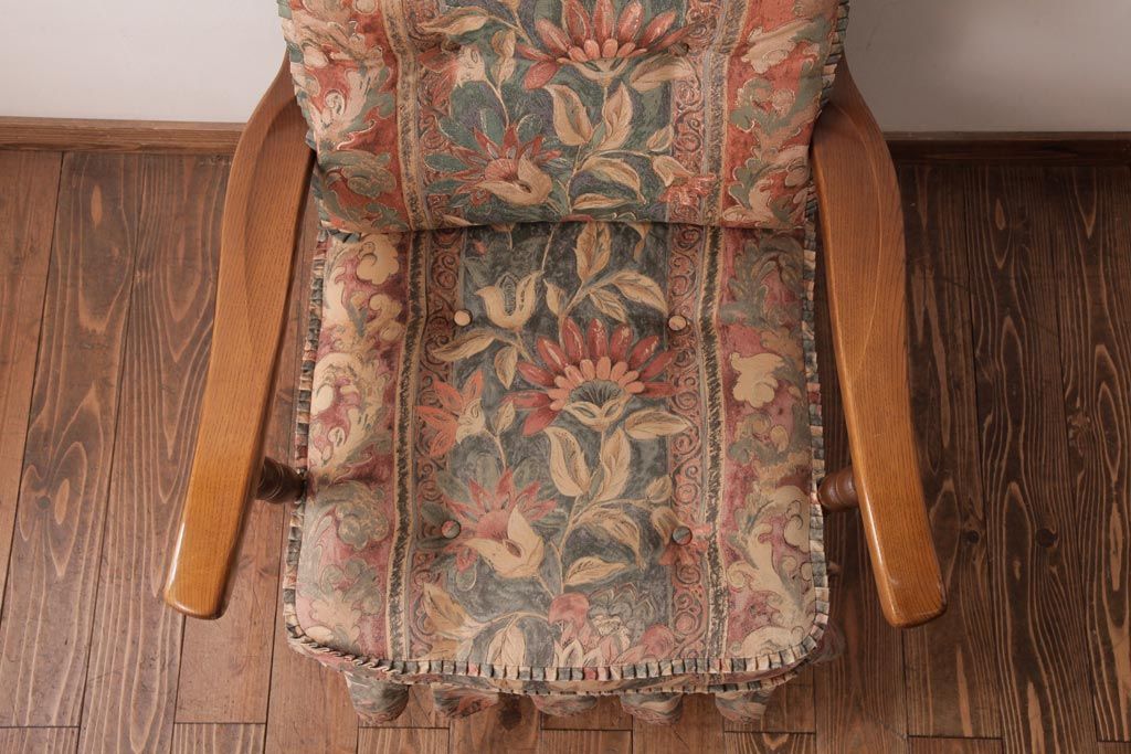中古 飛騨産業 キツツキ 絵画のようなファブリックが素敵な1人掛けソファ(1)です。