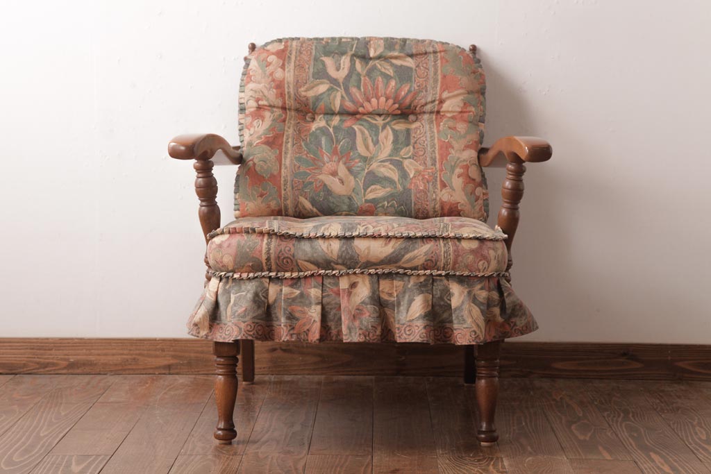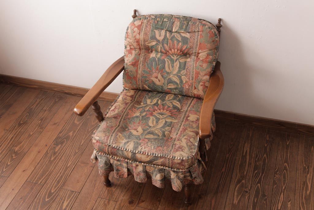 中古 飛騨産業 キツツキ 絵画のようなファブリックが素敵な1人掛けソファ(1)