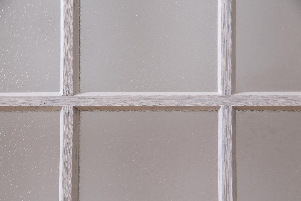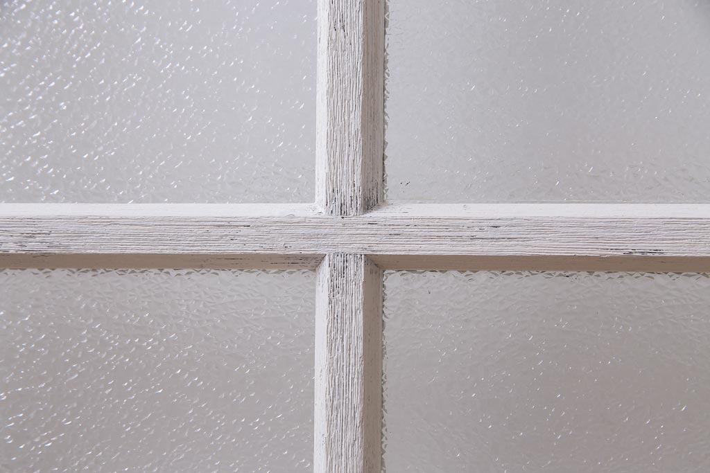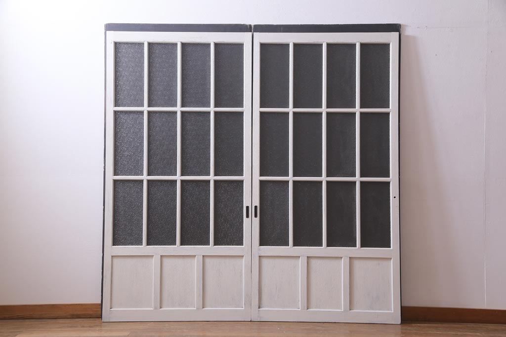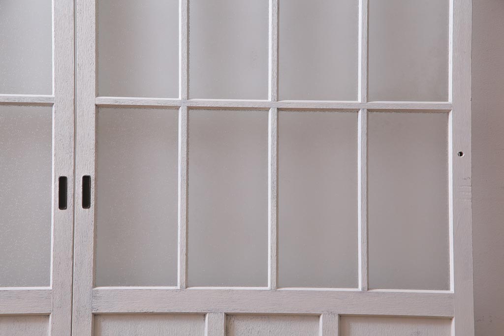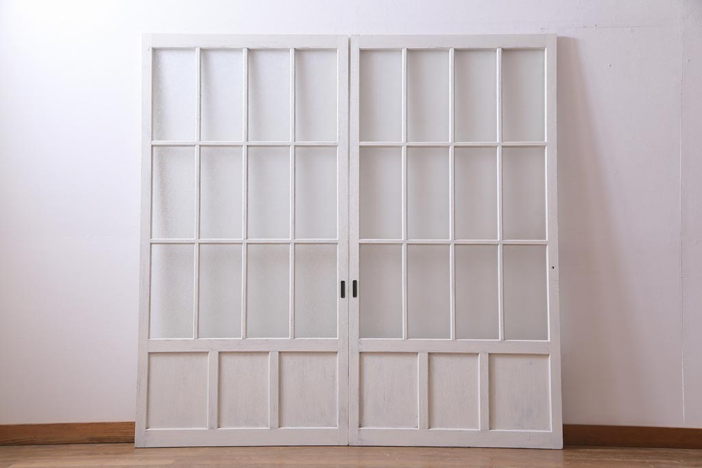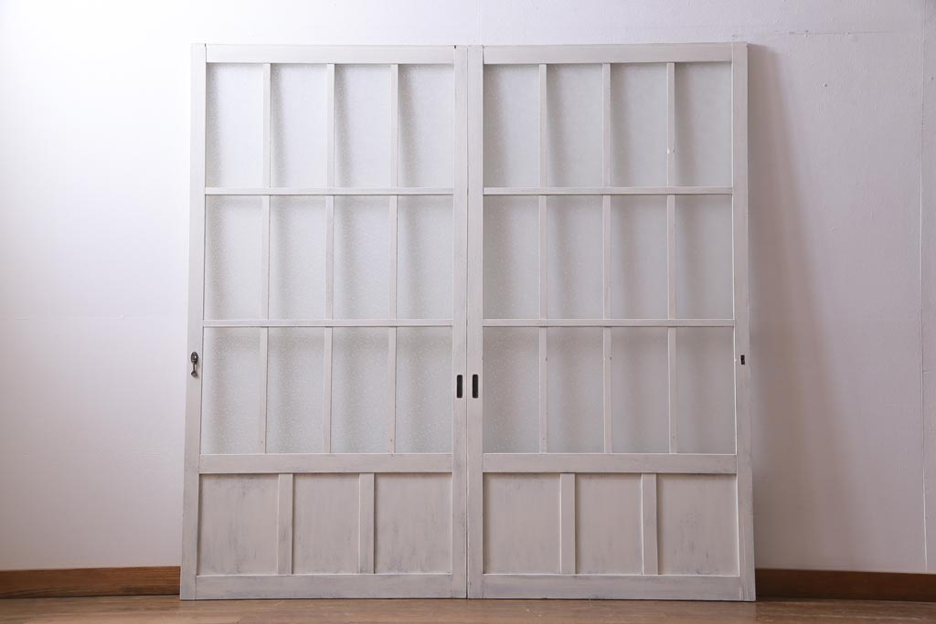 昭和初期 ダイヤガラス フレンチナチュラルにもぴったりなペイントガラス戸2枚セット(引き戸、建具)