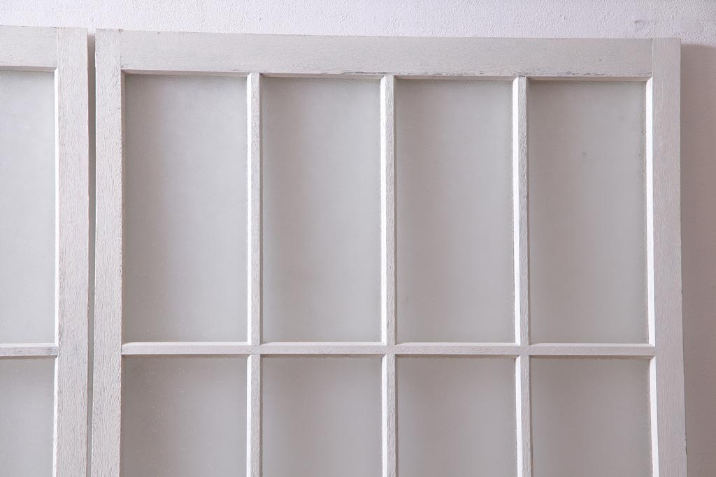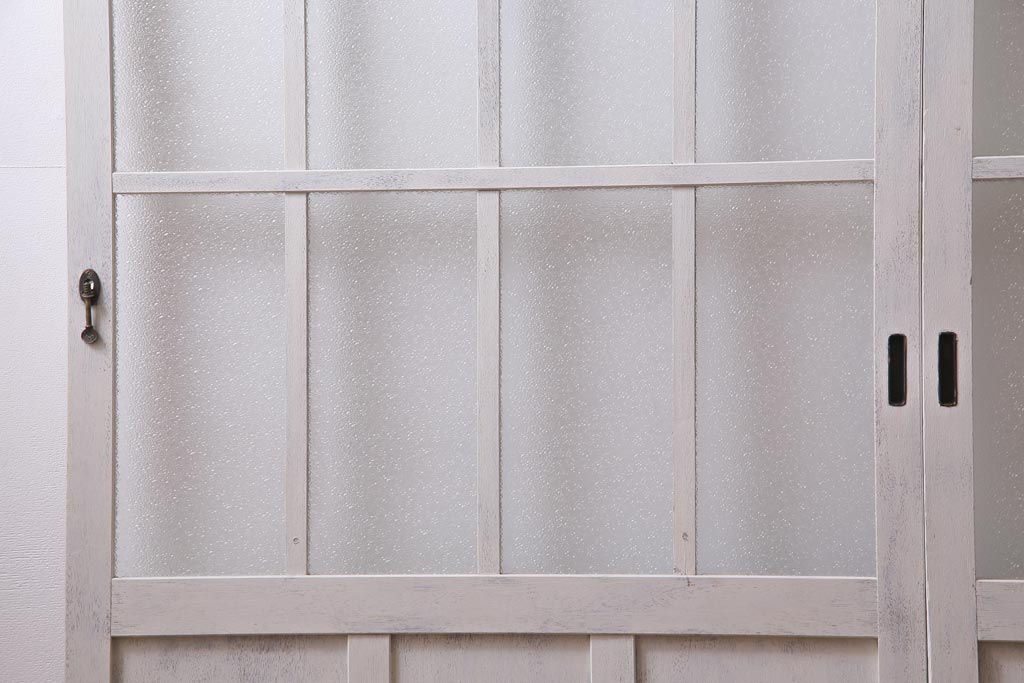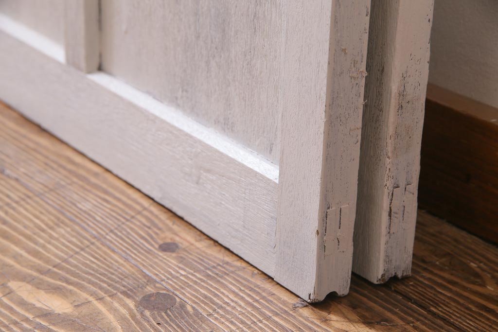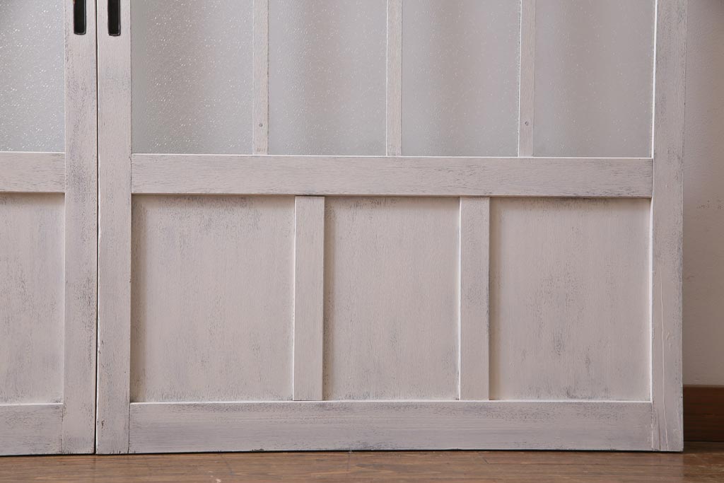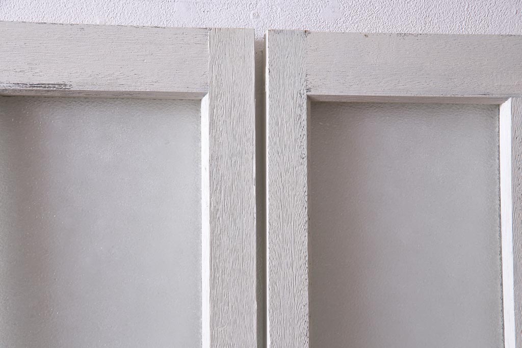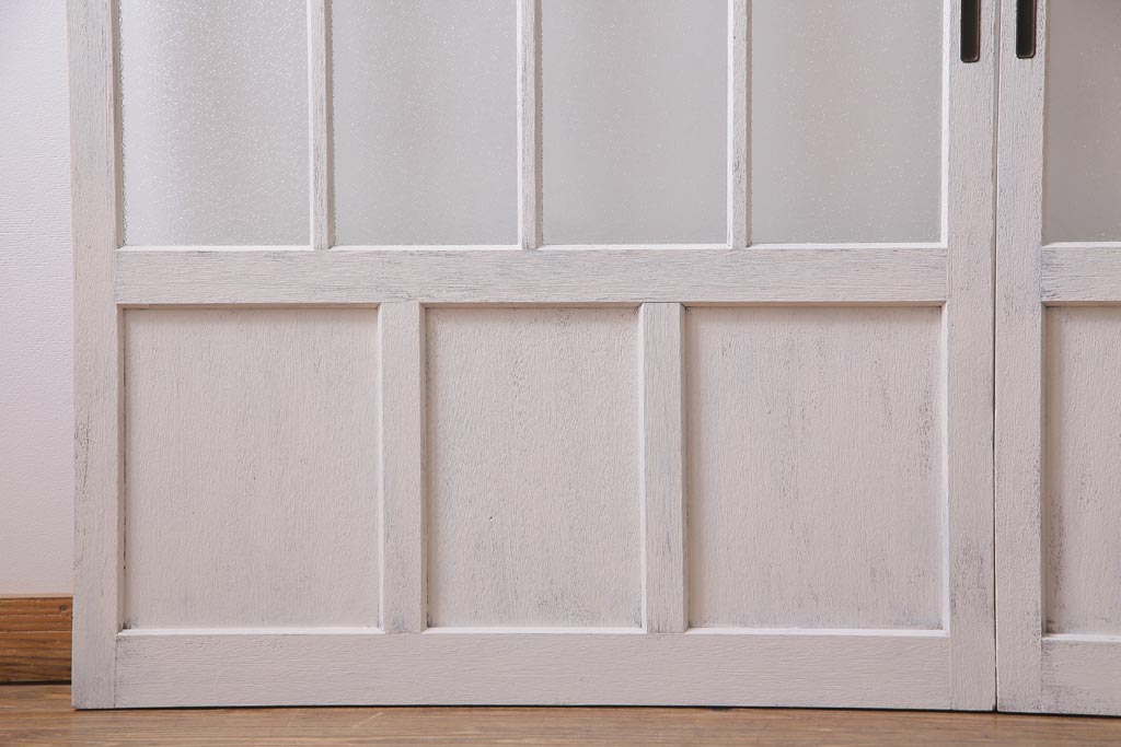 昭和初期 ダイヤガラス フレンチナチュラルにもぴったりなペイントガラス戸2枚セット(引き戸、建具)