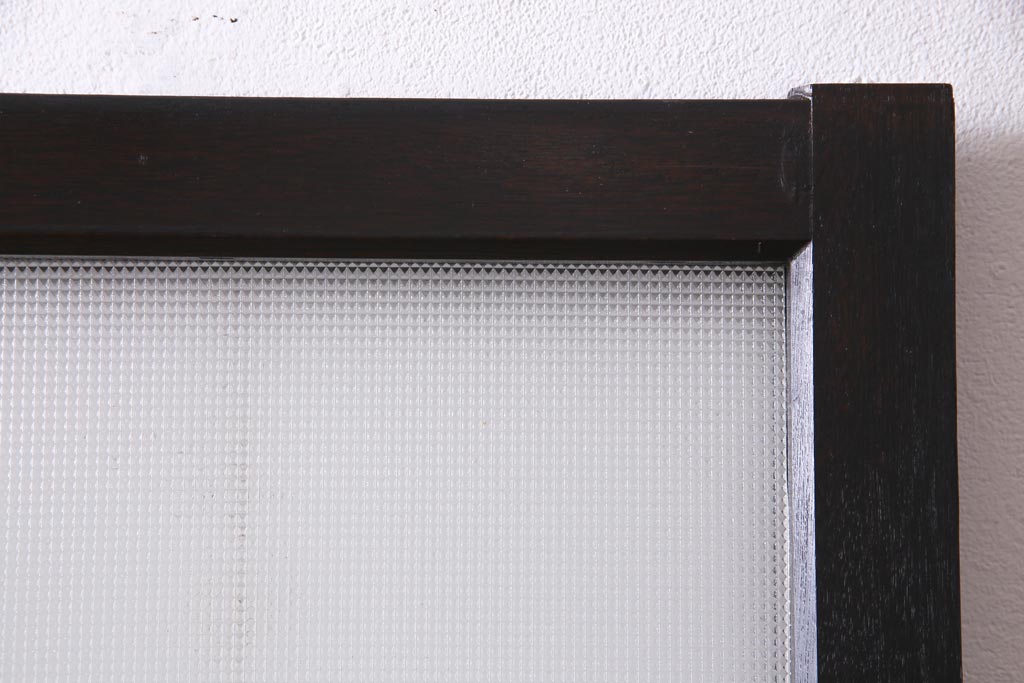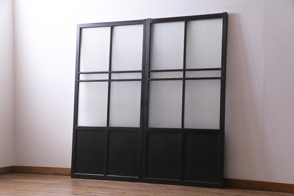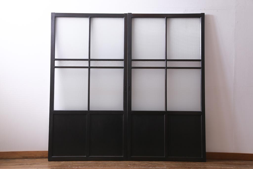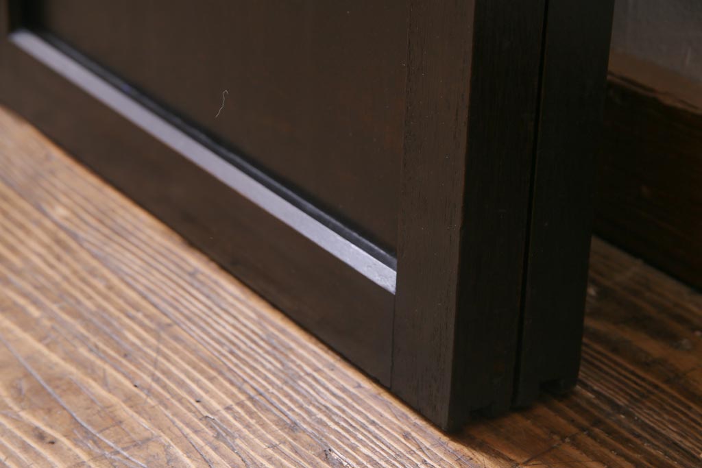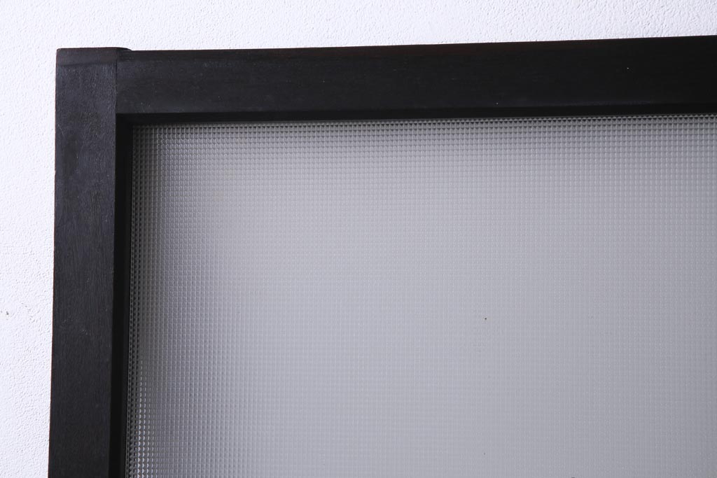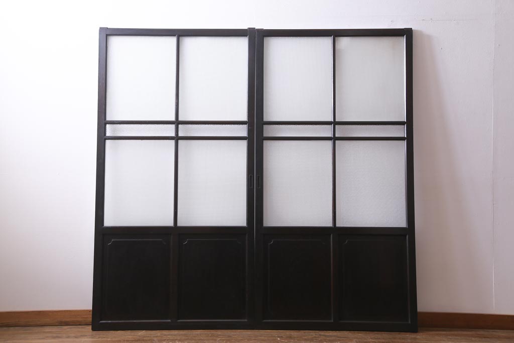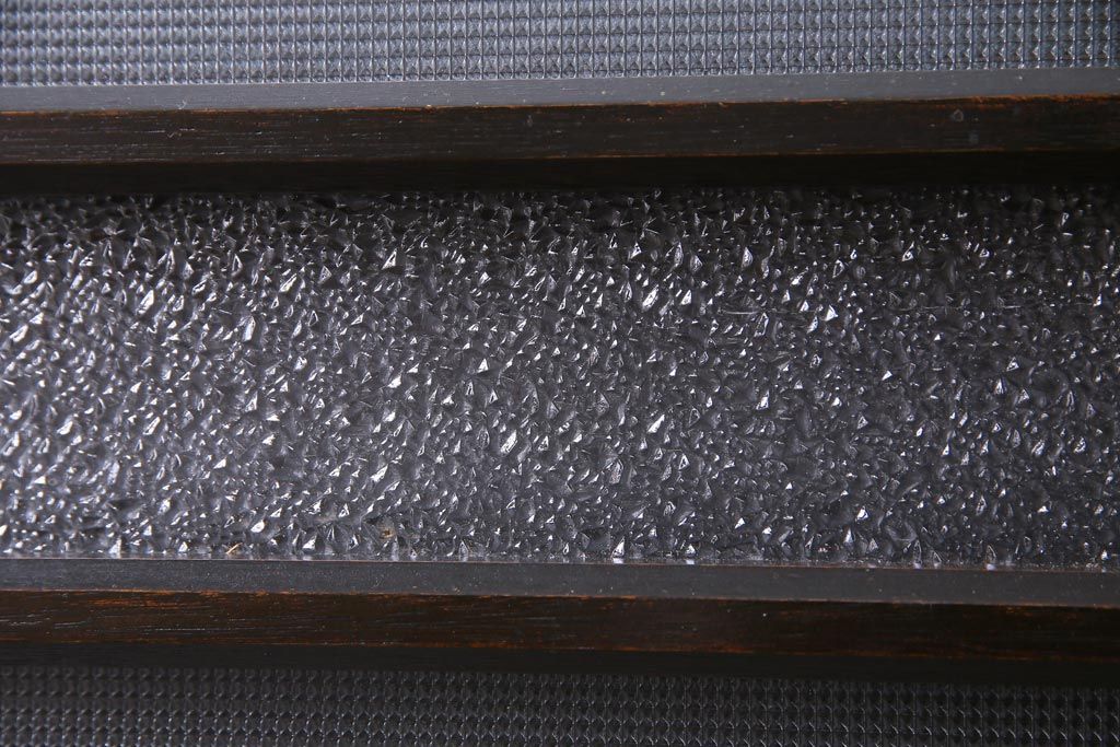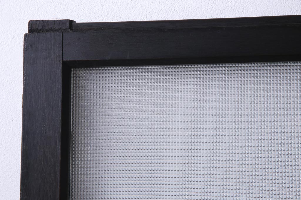 大正昭和初期 総栗材 格子柄のプラスガラスがレトロなガラス戸(引き戸、建具)2枚セットです。
