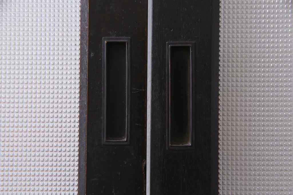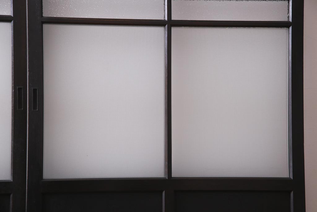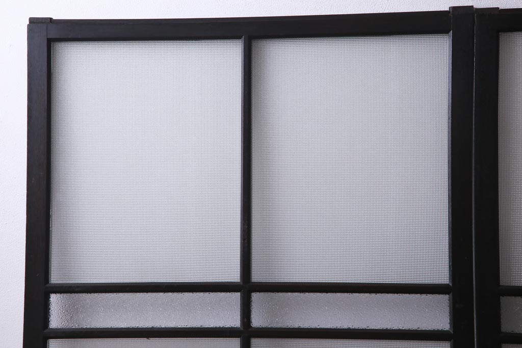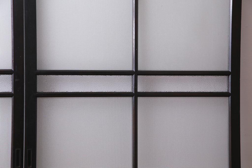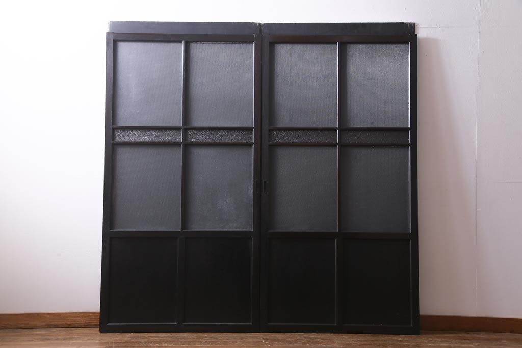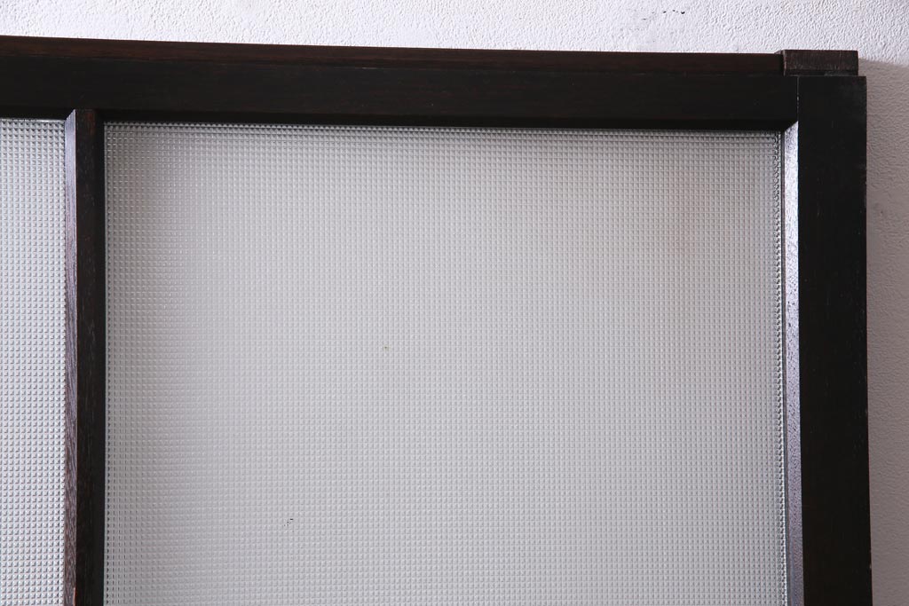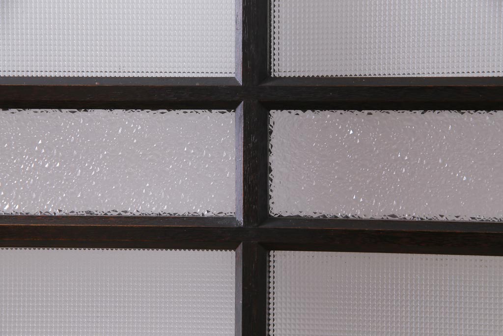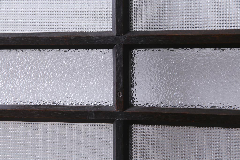大正昭和初期 総栗材 格子柄のプラスガラスがレトロなガラス戸(引き戸、建具)2枚セット