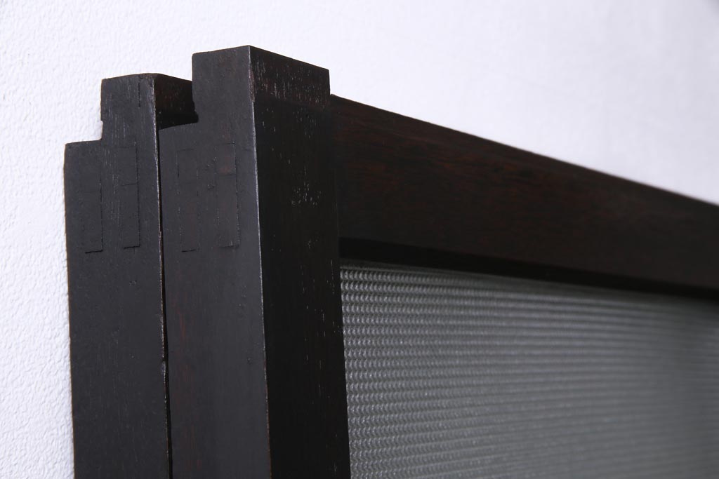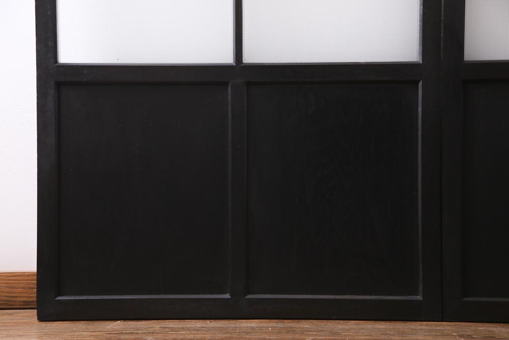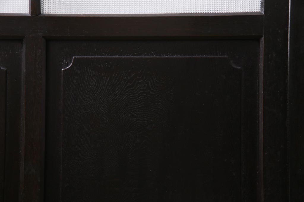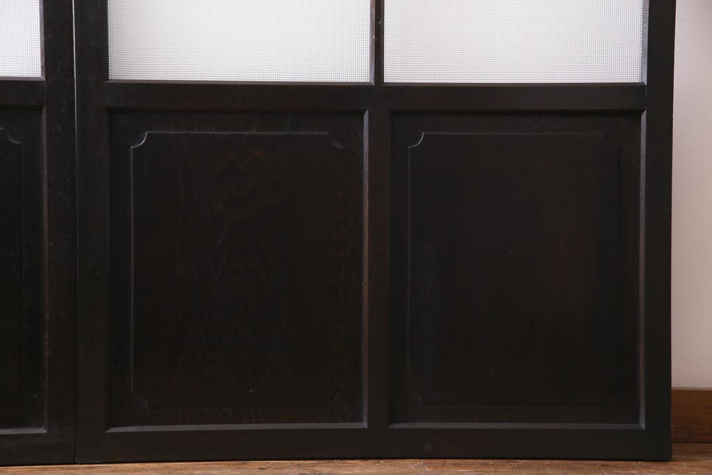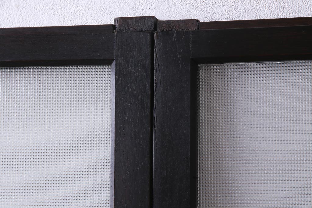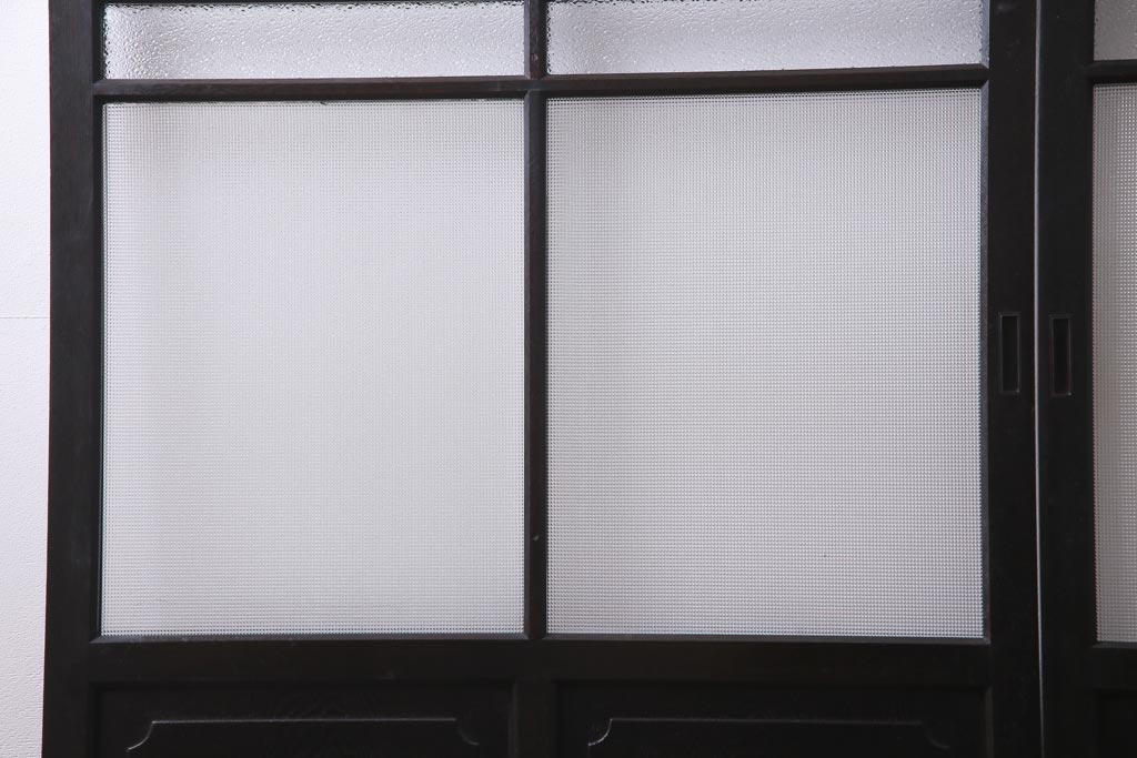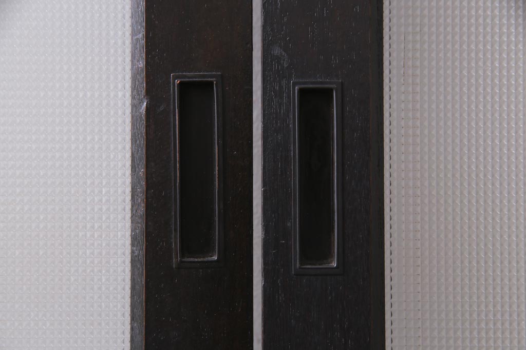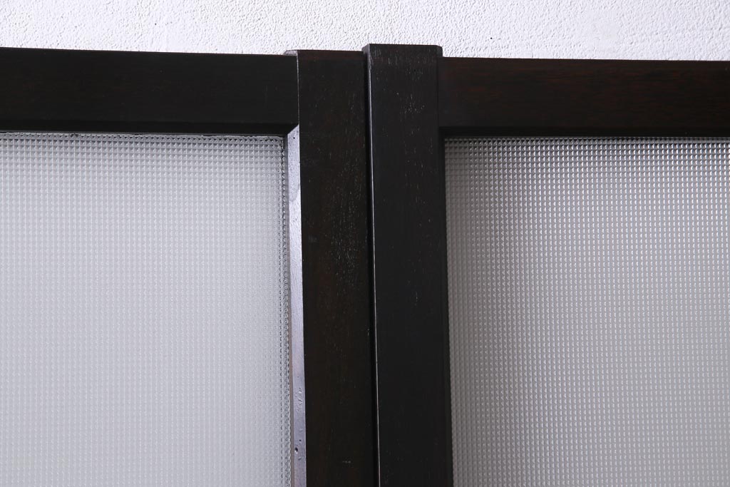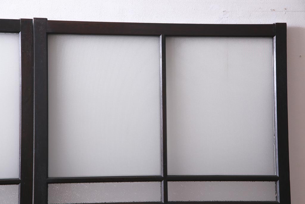 大正昭和初期 総栗材 格子柄のプラスガラスがレトロなガラス戸(引き戸、建具)2枚セット