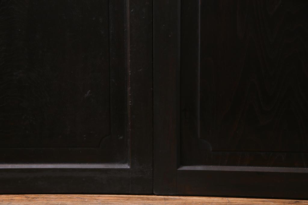 深く落ち着いた色合いと腰板の彫りの上品さが調和した、