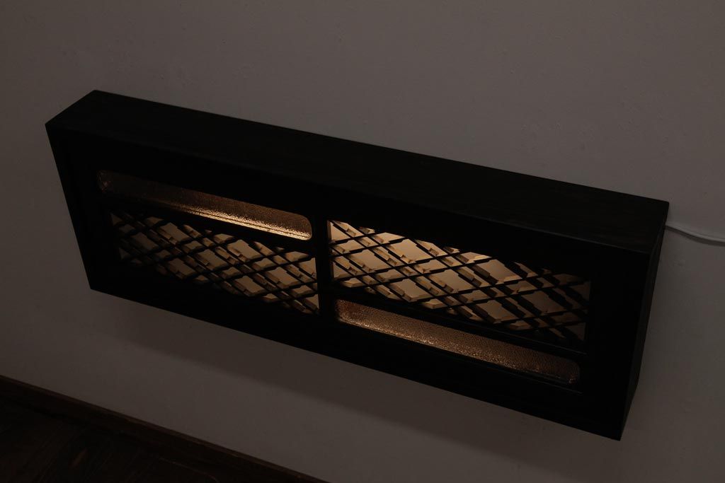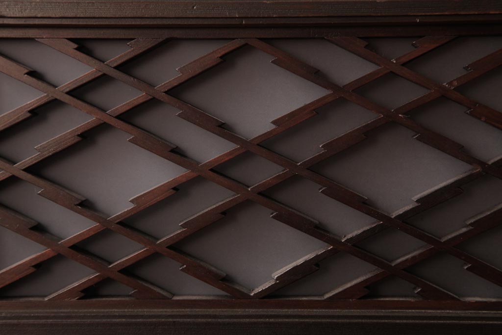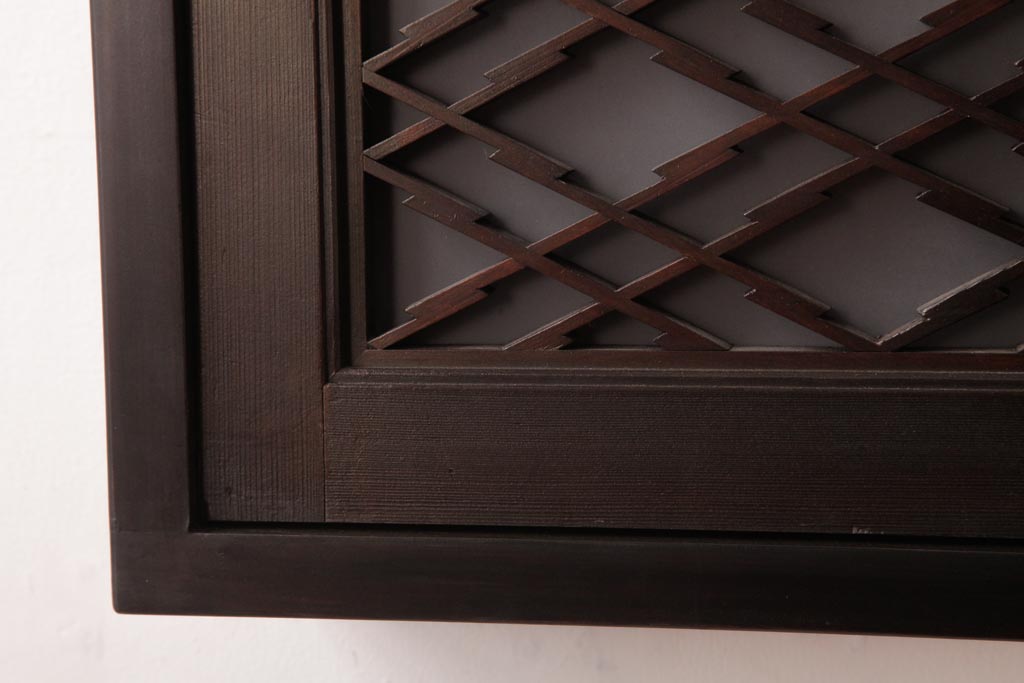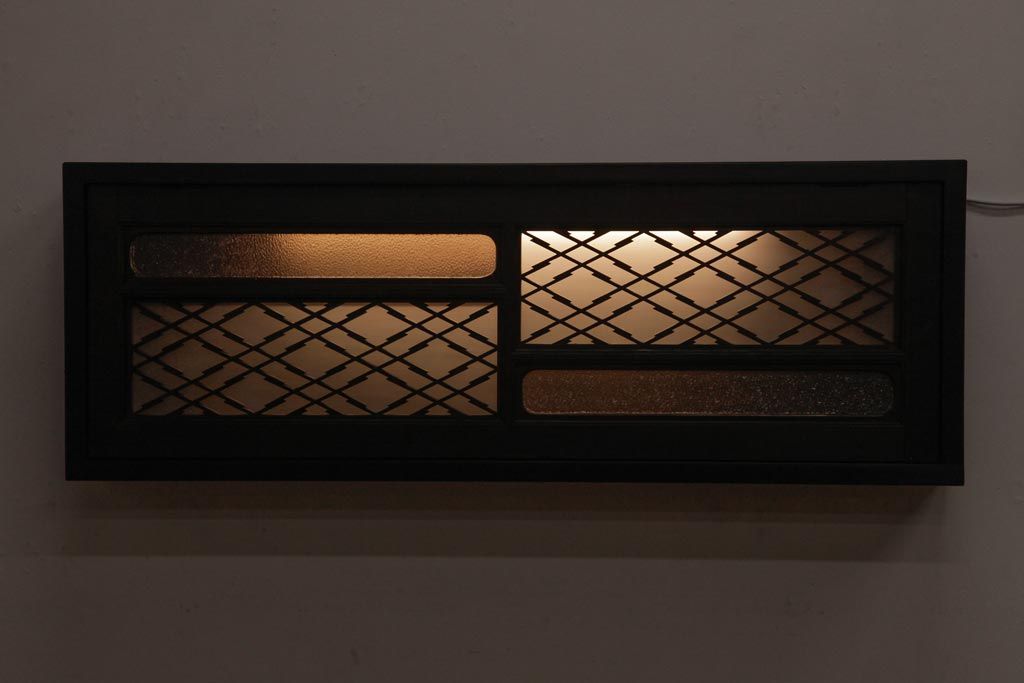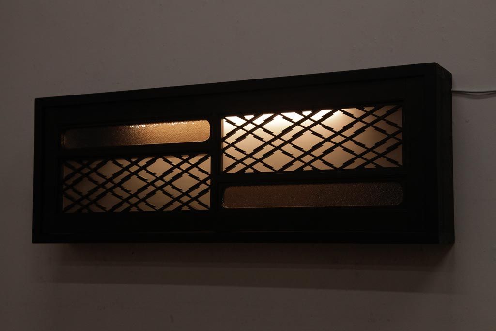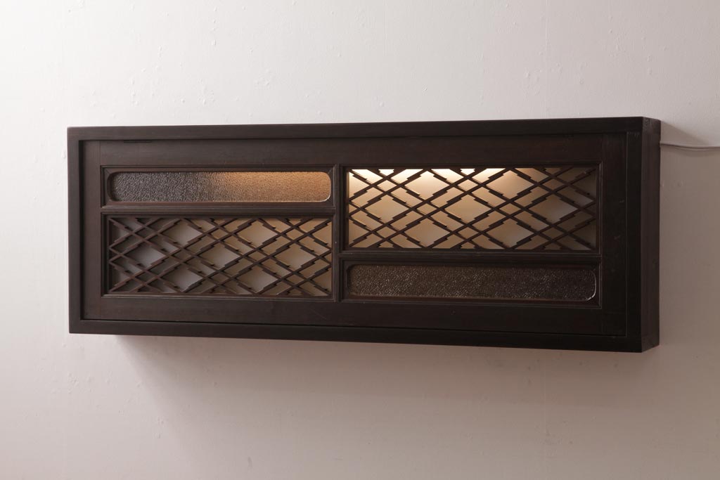 ラフジュ工房オリジナル 組子欄間リメイク 片面ガラス 互い違いのデザインがおしゃれな壁付け照明(ウォールランプ)です。