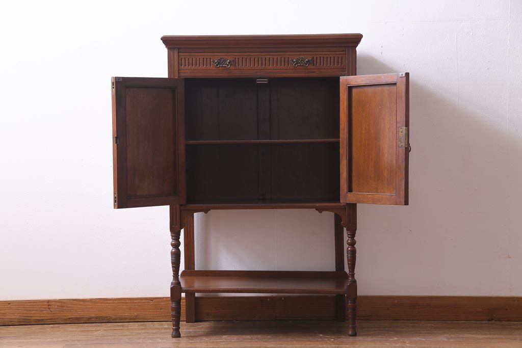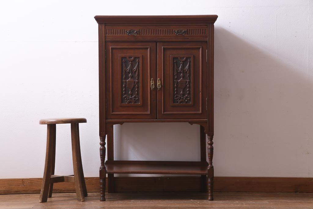 アンティーク家具 イギリスアンティーク EDWARDS&SONS マホガニー材 すっきりとした佇まいが上品なサイドキャビネット(収納棚)