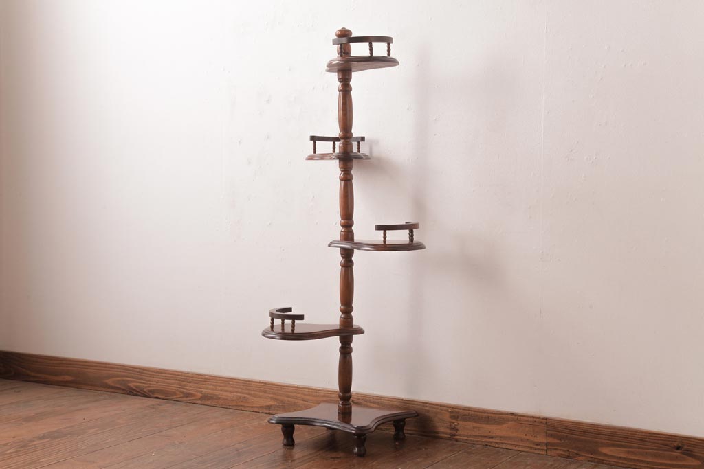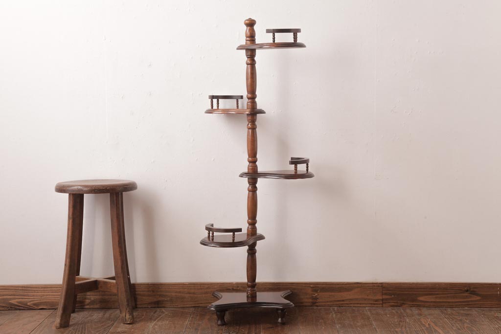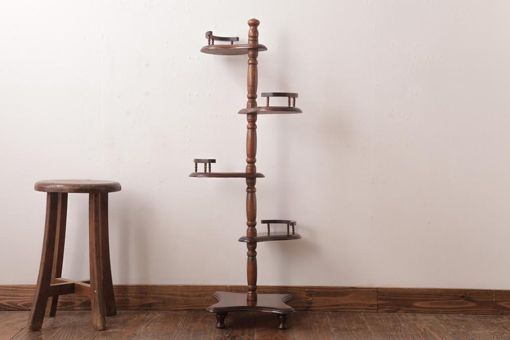 アンティーク雑貨 イギリスアンティーク マホガニー材 棚板の向きが変えられる使い勝手の良いプランタースタンド(花台、飾り台)
