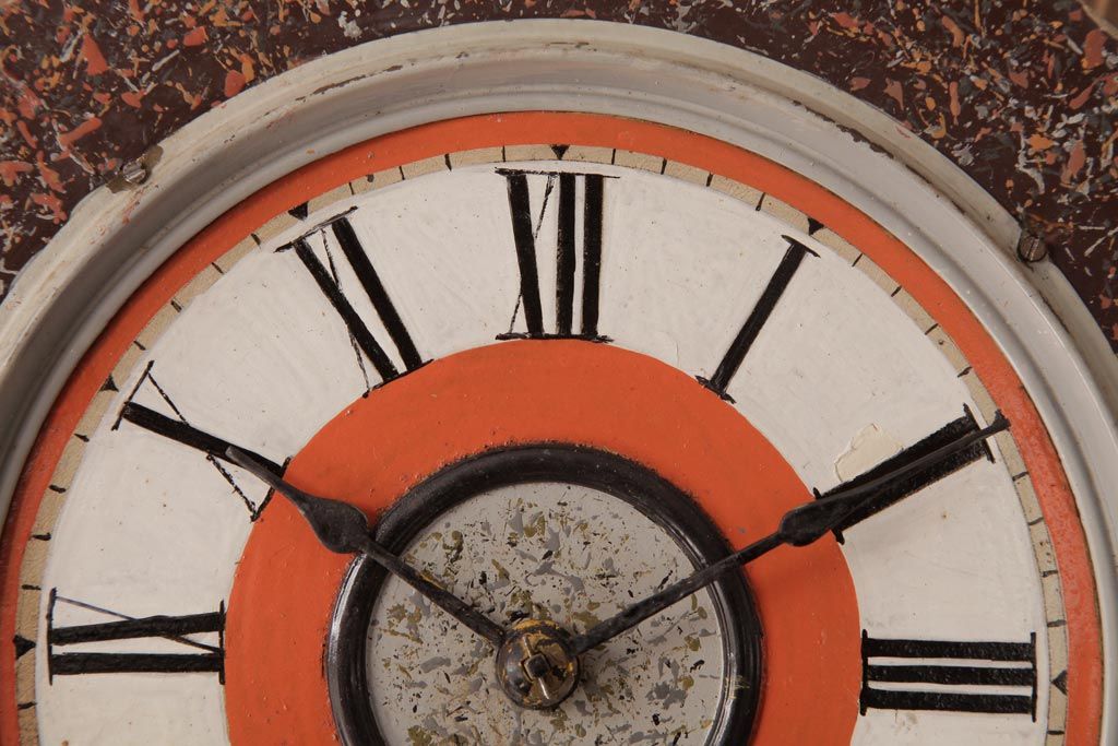 赤い二重丸の文字盤が目を引くだるま時計です。