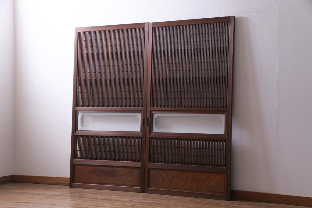 昭和初期 腰板ケヤキ材 裏障子の付いた格子帯戸2枚セット(ガラス帯戸、引き戸、建具)