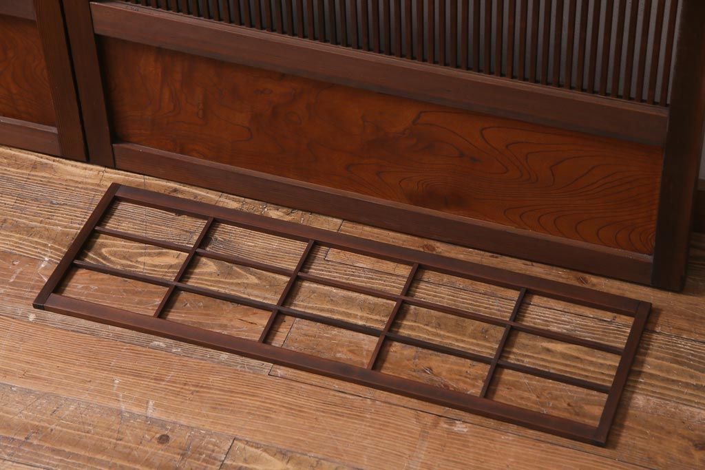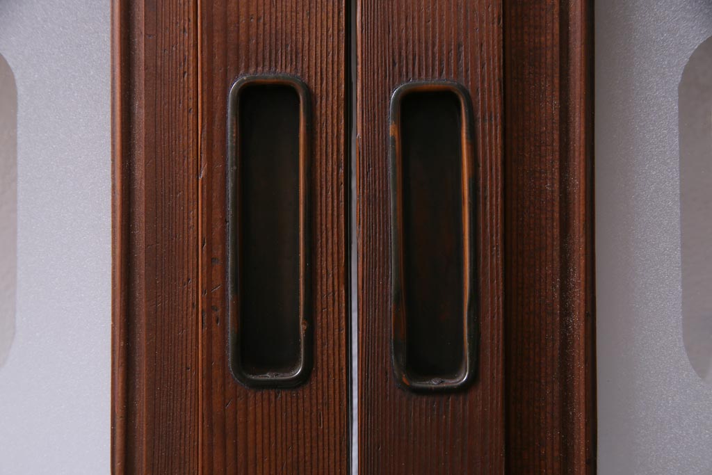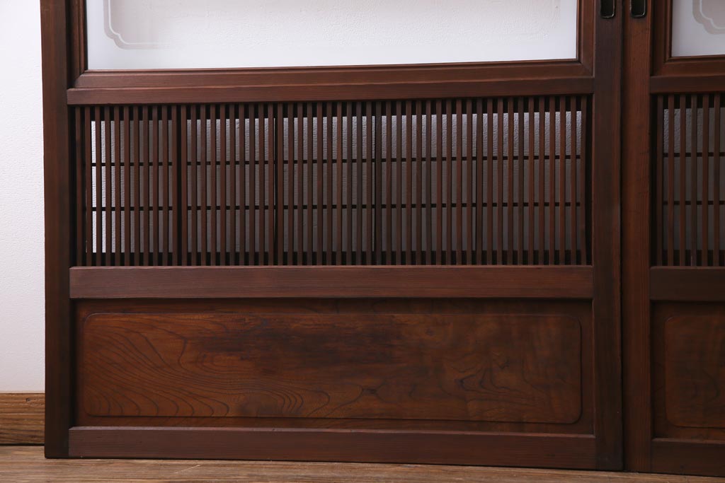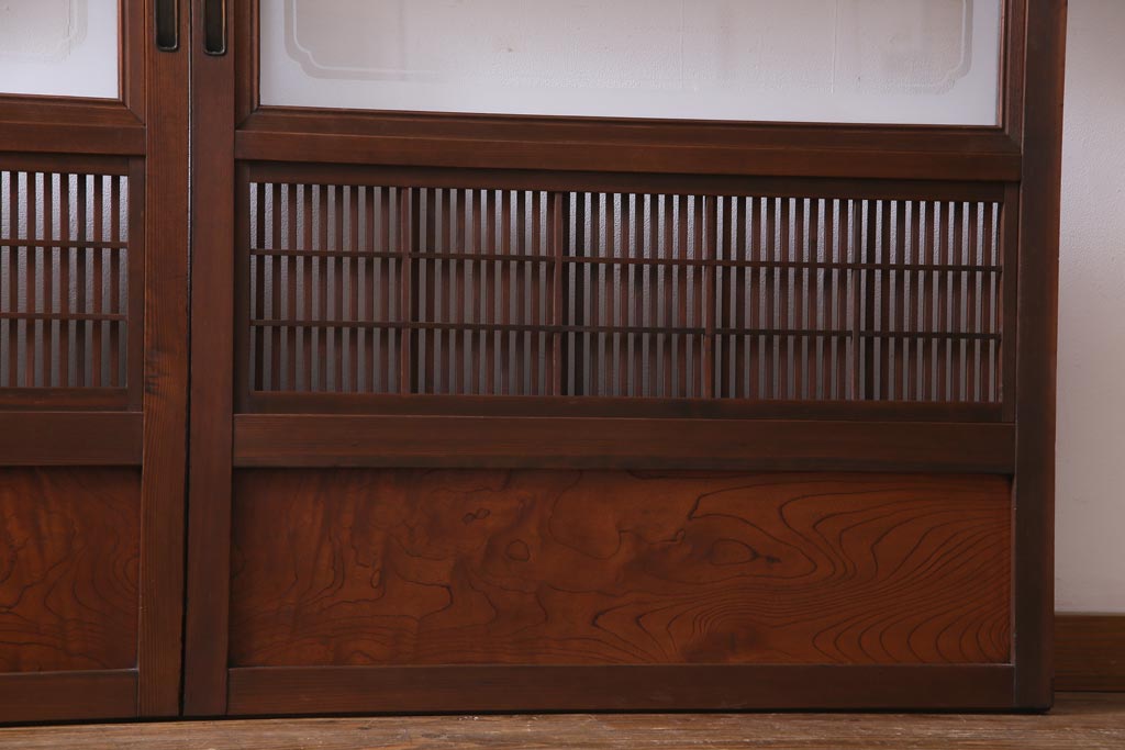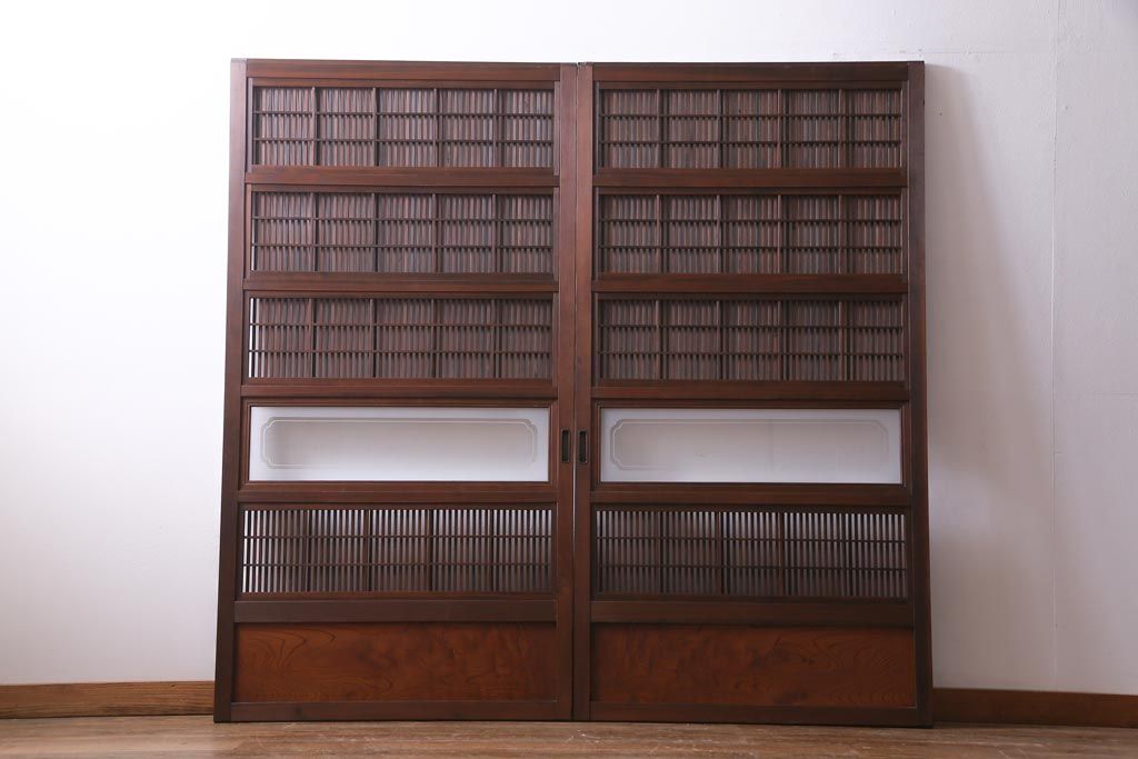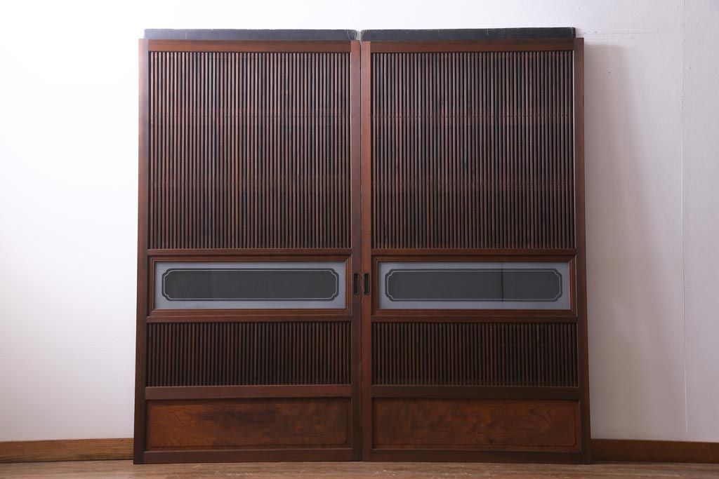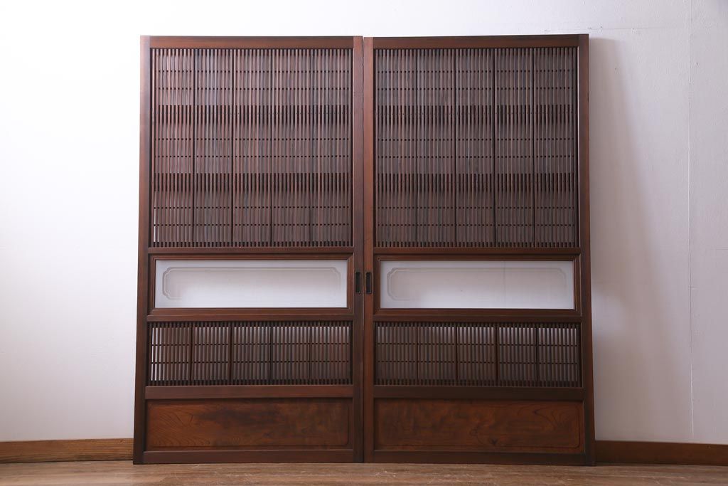 昭和初期 腰板ケヤキ材 裏障子の付いた格子帯戸2枚セット(ガラス帯戸、引き戸、建具)です。