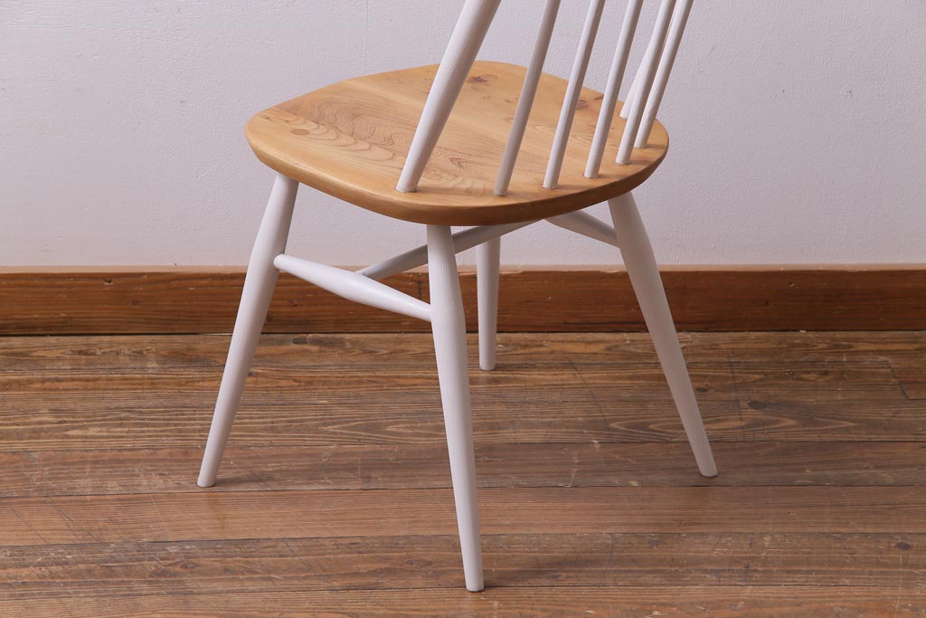 ヴィンテージ家具 ビンテージ ERCOL(アーコール) ツートンカラーがおしゃれなナチュラルペイントのクエーカーチェア(椅子)(2)