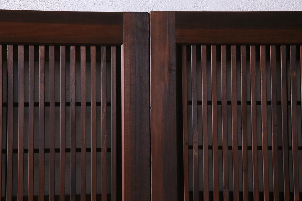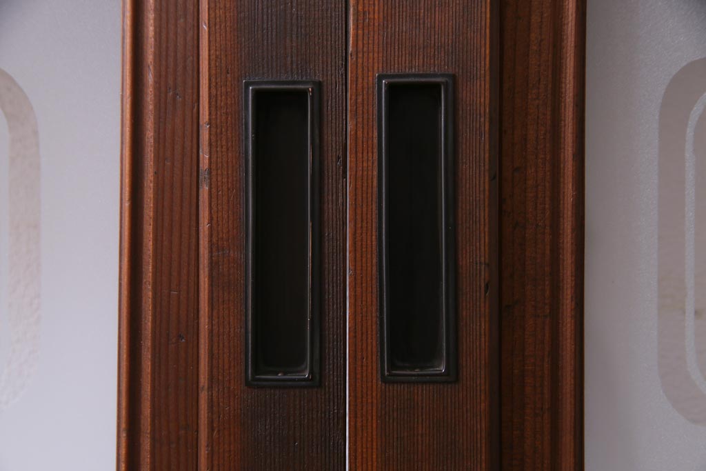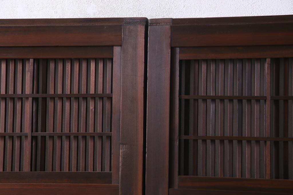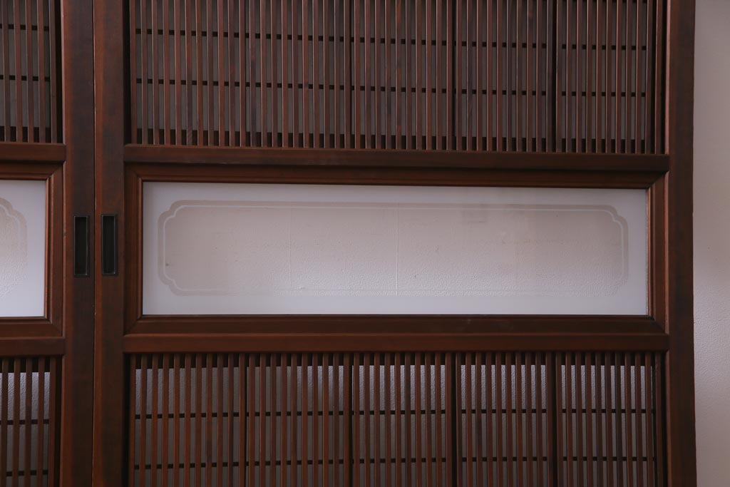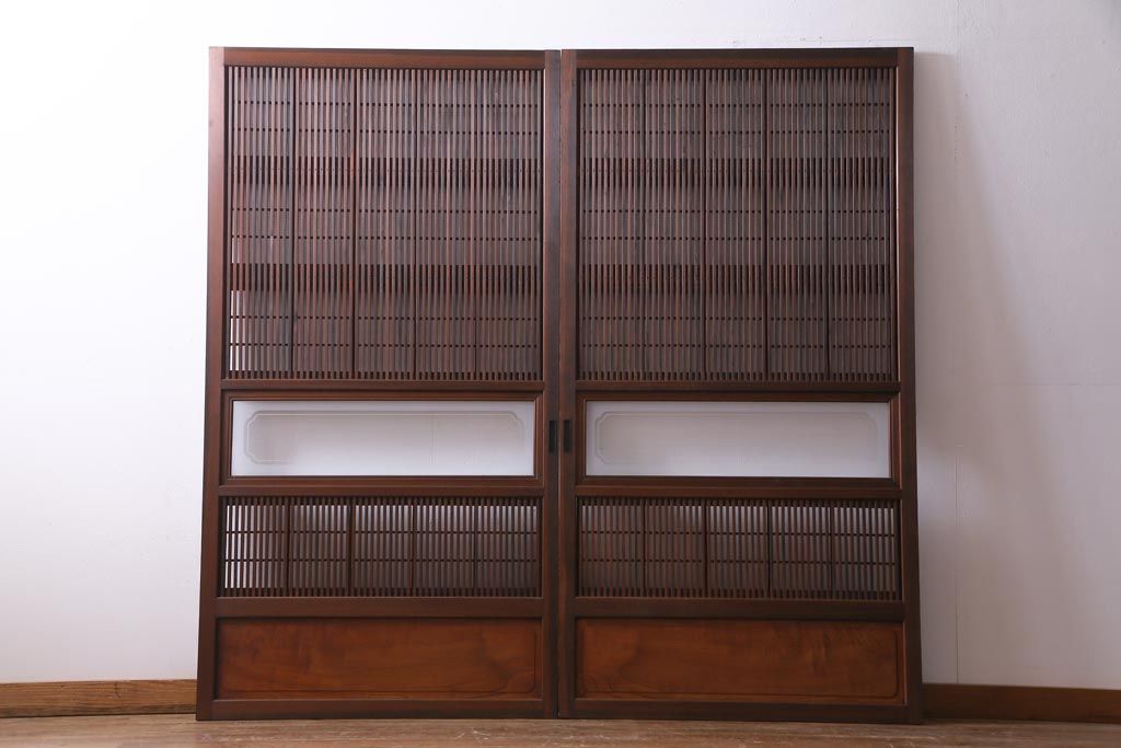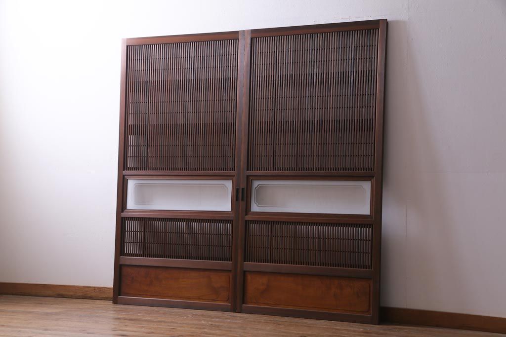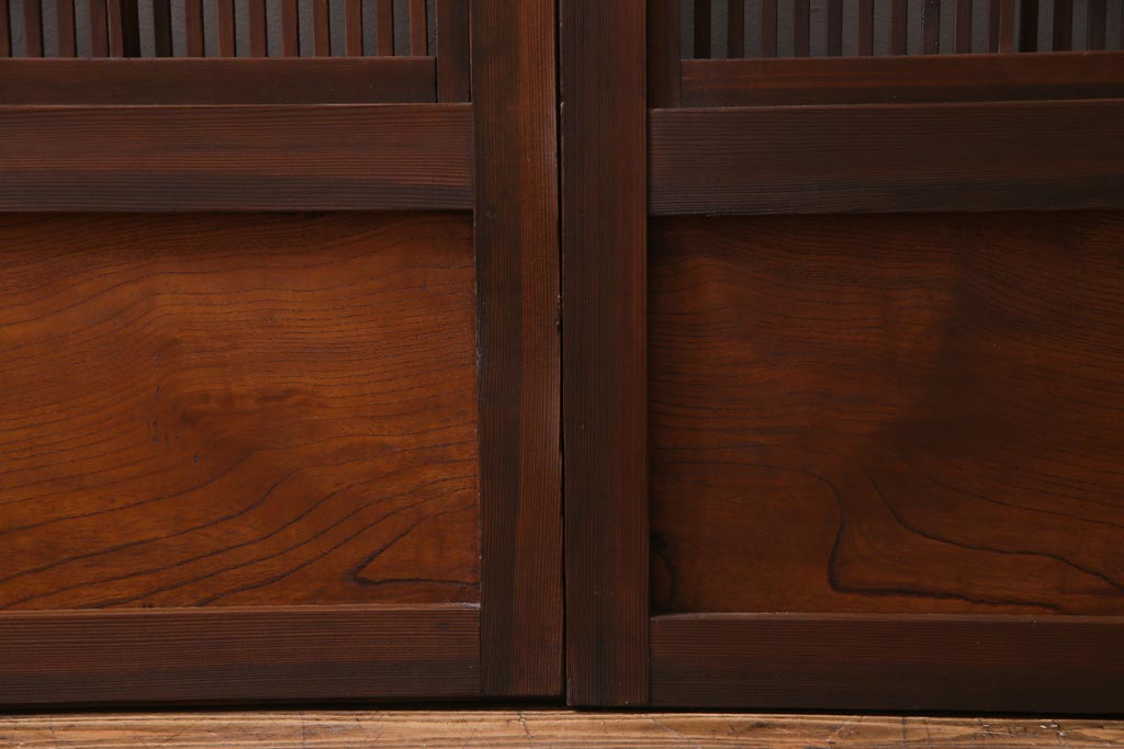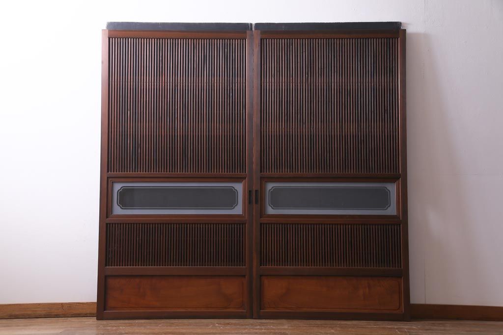 昭和初期 腰板ケヤキ材 裏障子の付いた格子帯戸2枚セット(ガラス帯戸、引き戸、建具)(1)です。