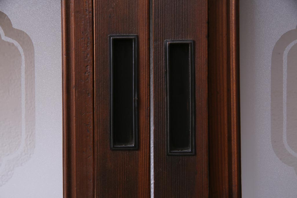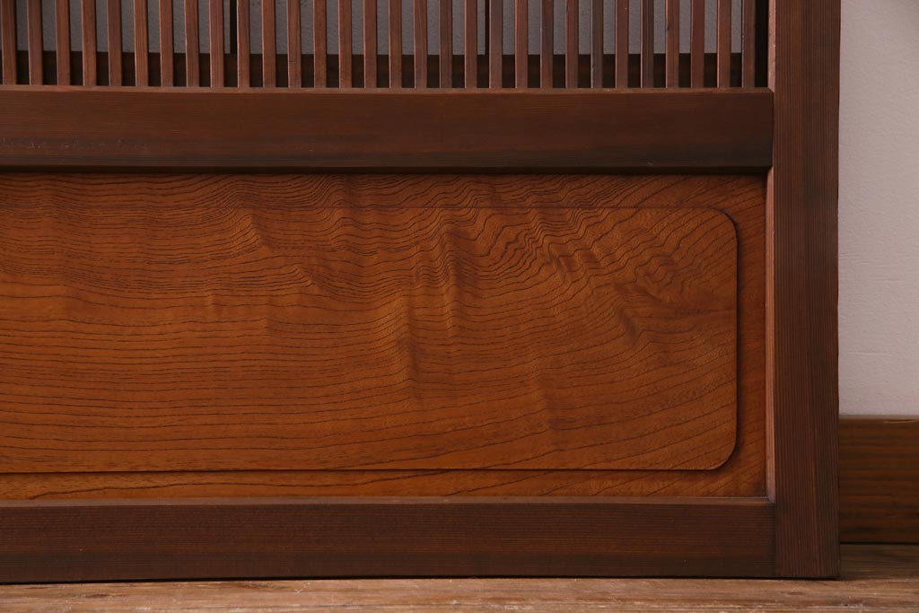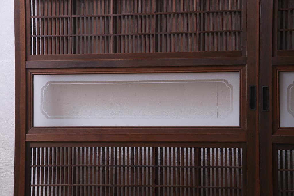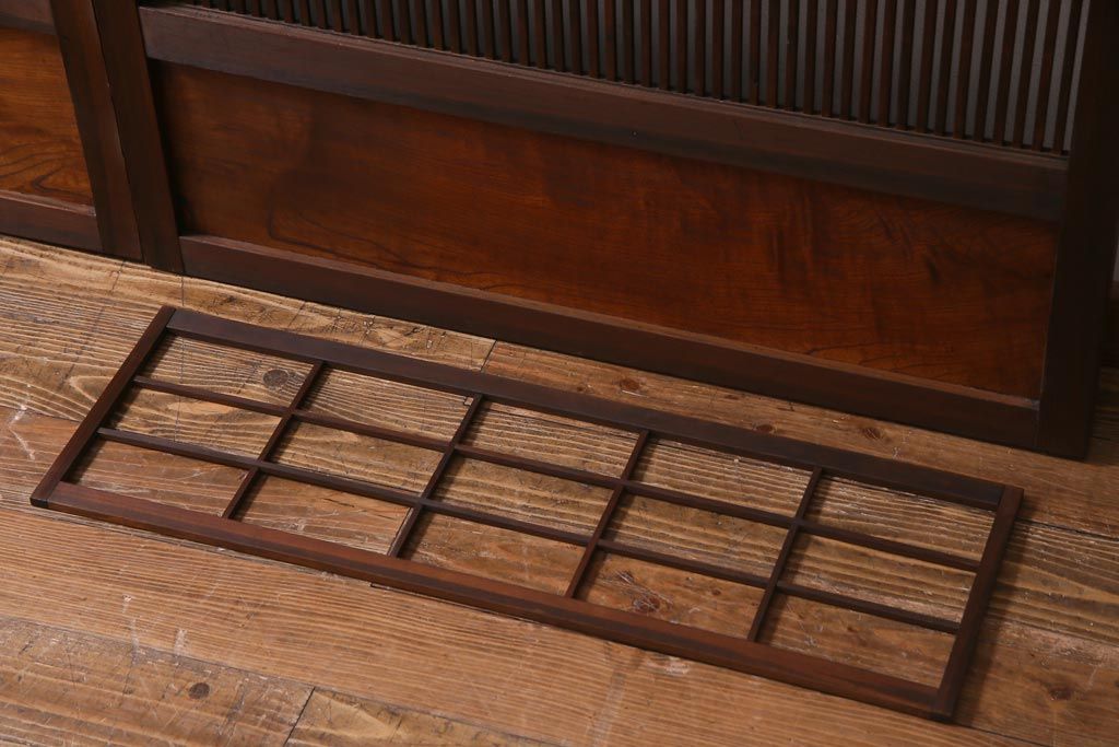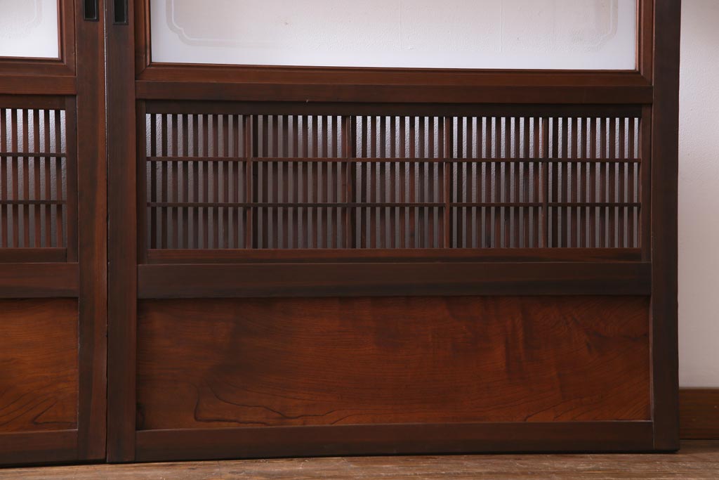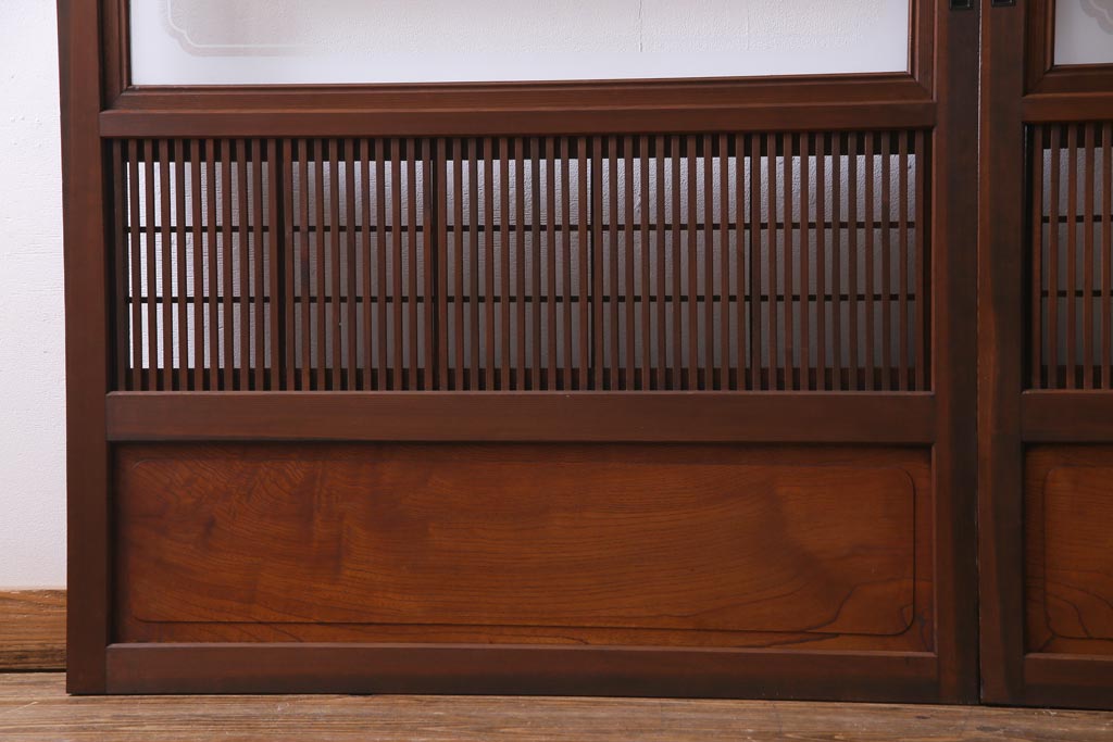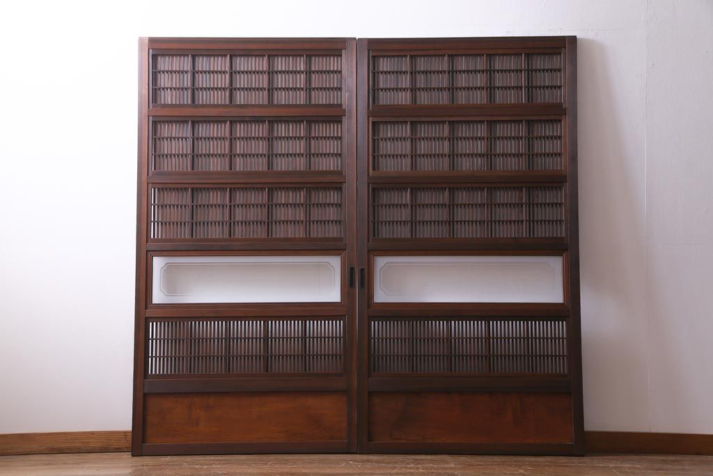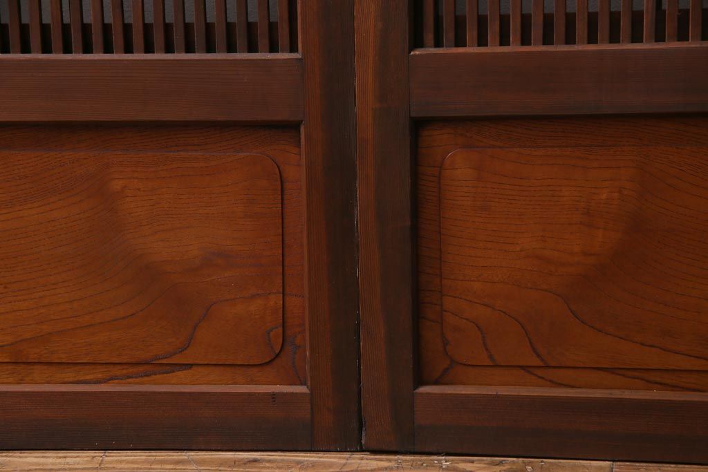 昭和初期 腰板ケヤキ材 裏障子の付いた格子帯戸2枚セット(ガラス帯戸、引き戸、建具)(1)