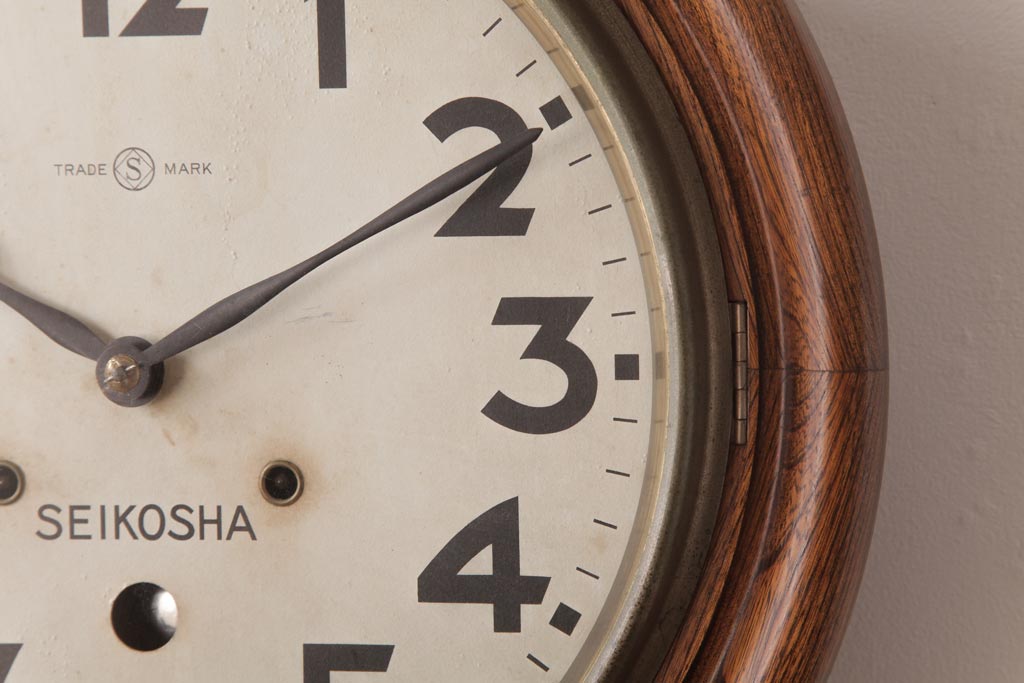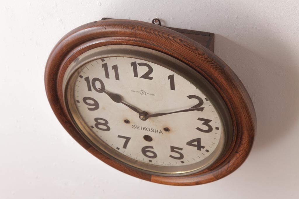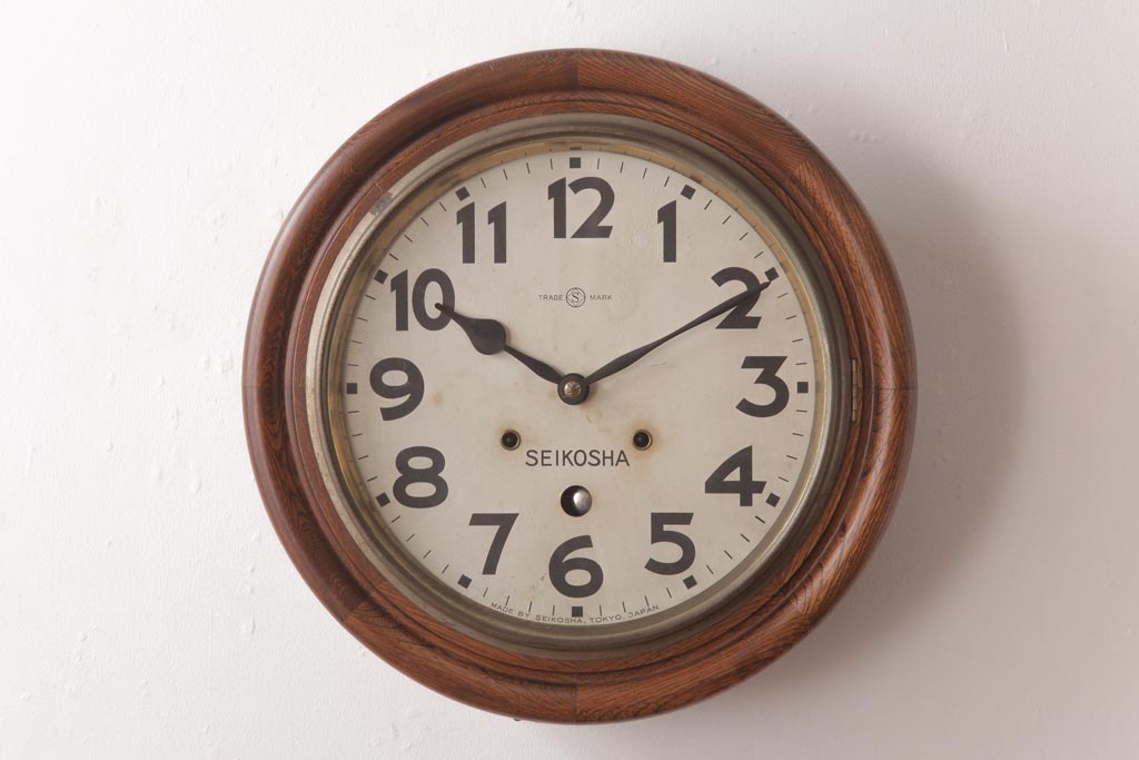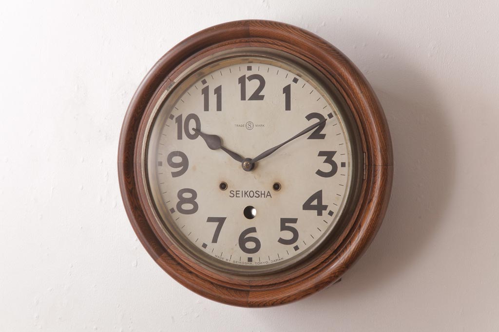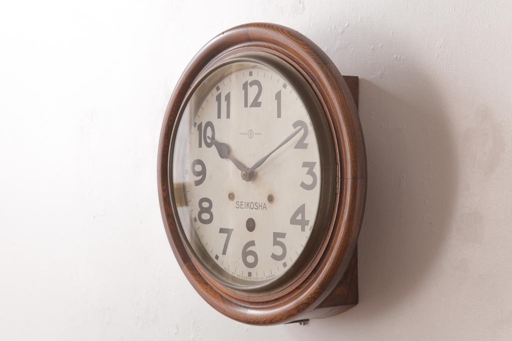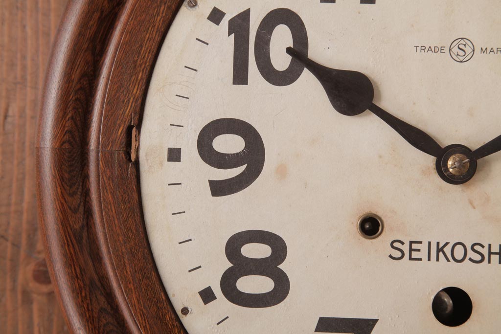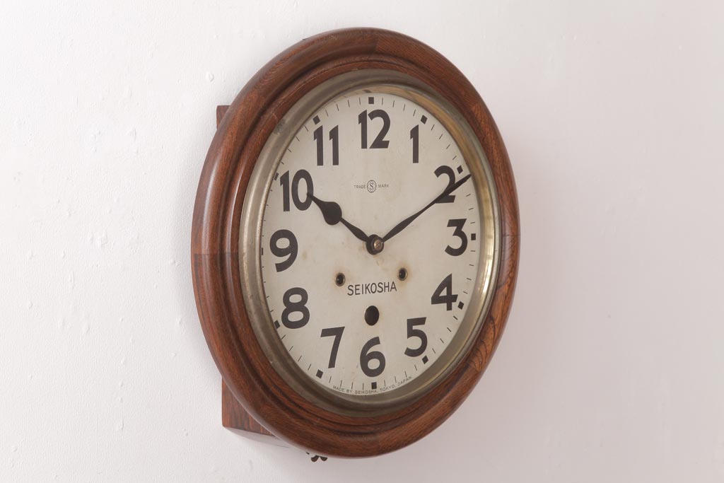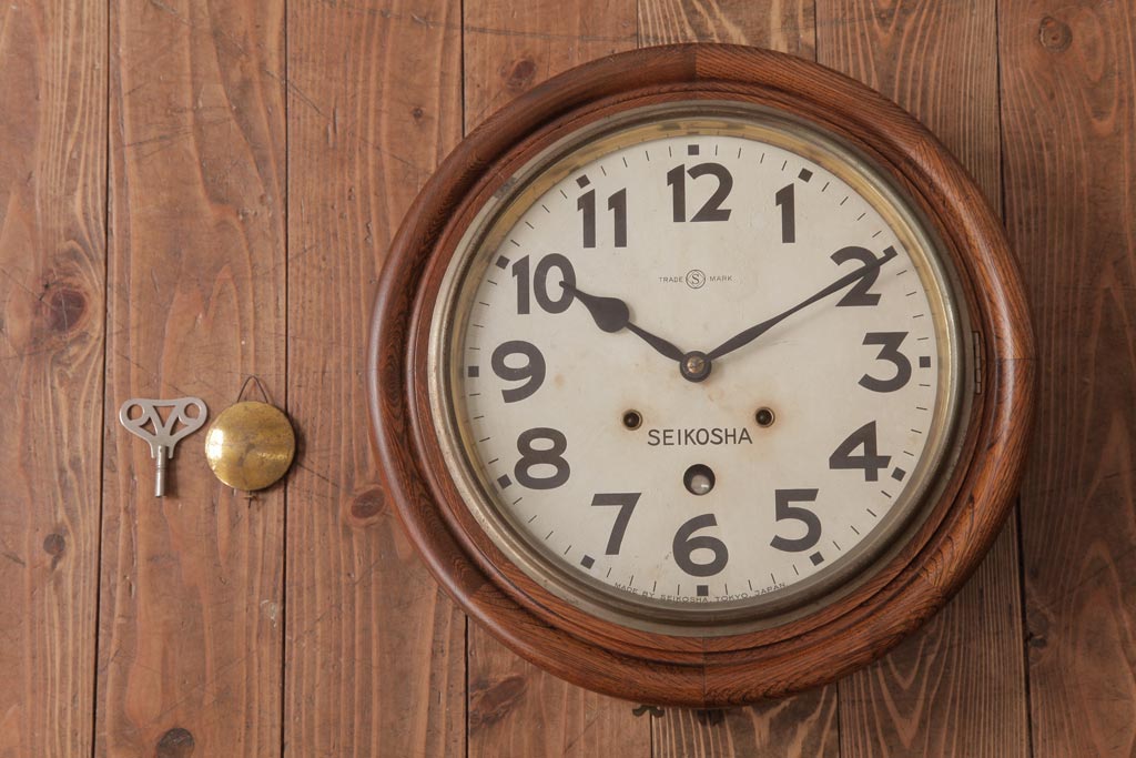 時計> 掛け時計 > アンティーク雑貨 SEIKOSHA(精工舎) 手巻き式 ビンテージテイストな丸型掛け時計(柱時計、振り子時計)