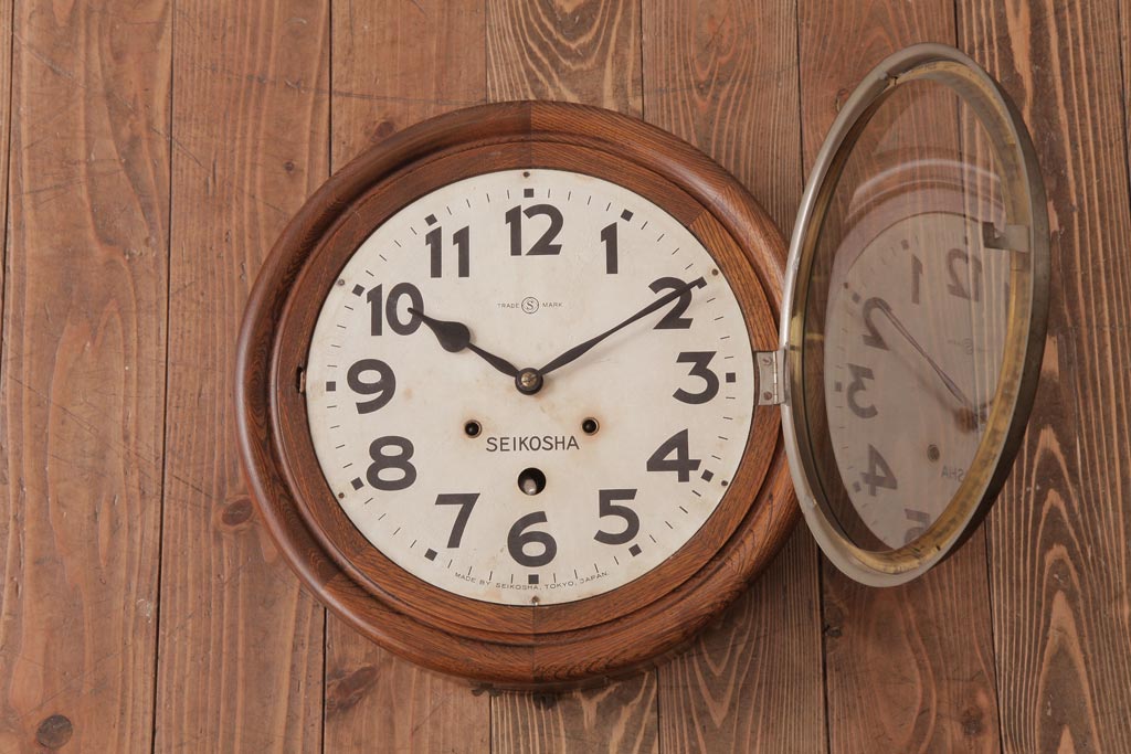 アンティーク雑貨 SEIKOSHA(精工舎) 手巻き式 ビンテージテイストな丸型掛け時計(柱時計、振り子時計)