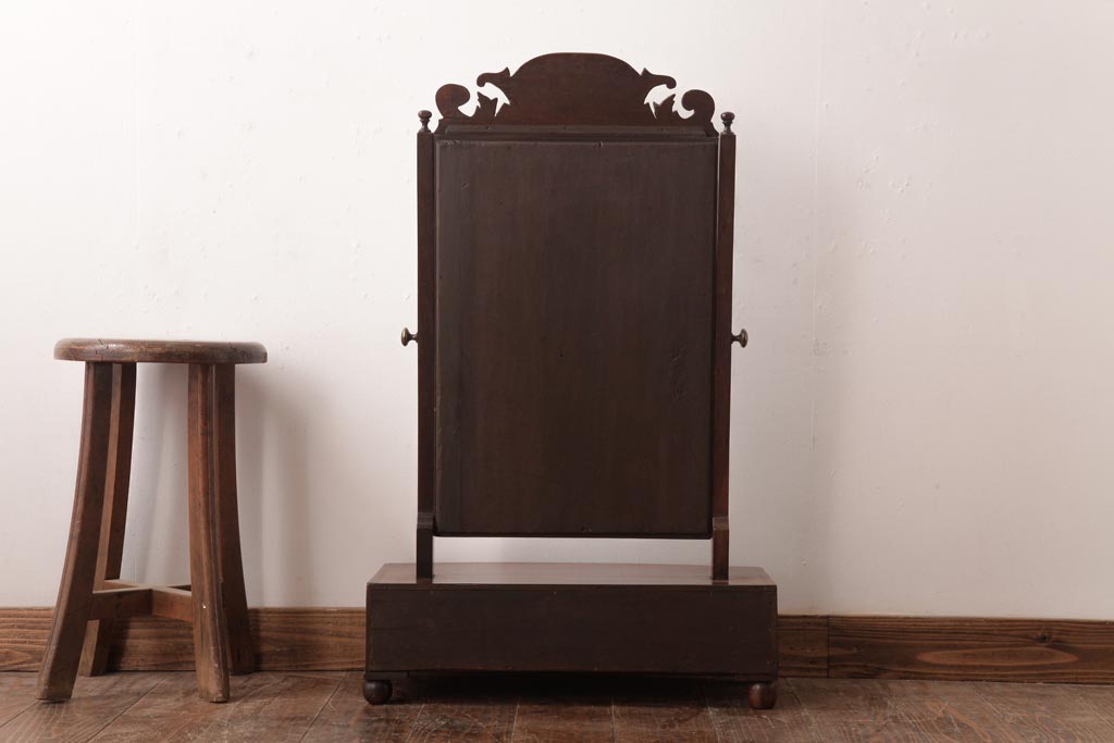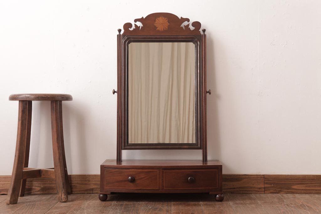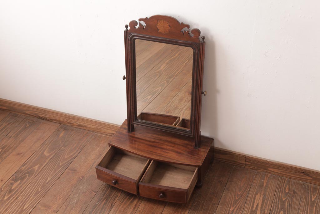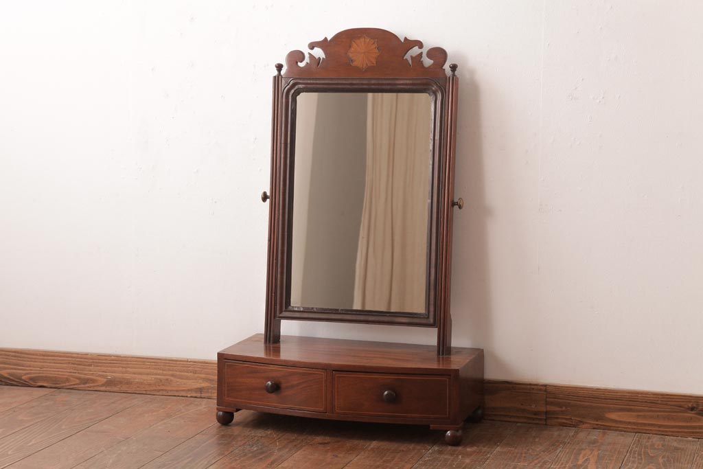 アンティーク雑貨 イギリスアンティーク 象嵌とシルエットがおしゃれなマホガニー材製のミラー(ドレッサー、鏡台)
