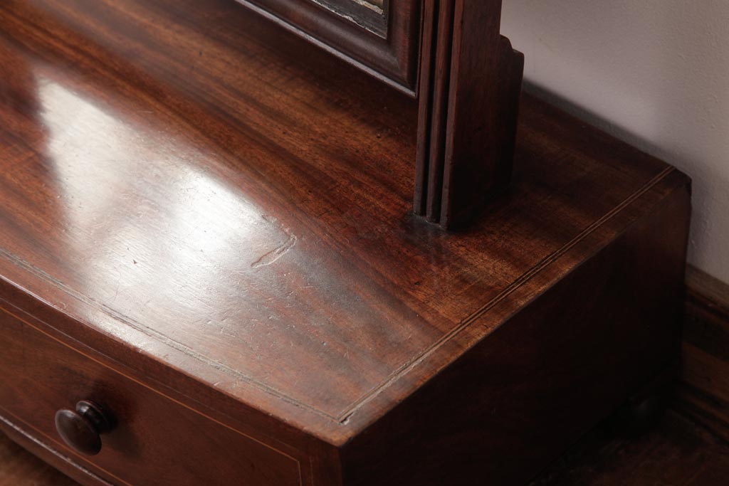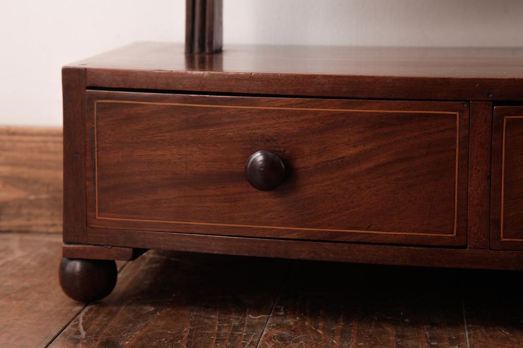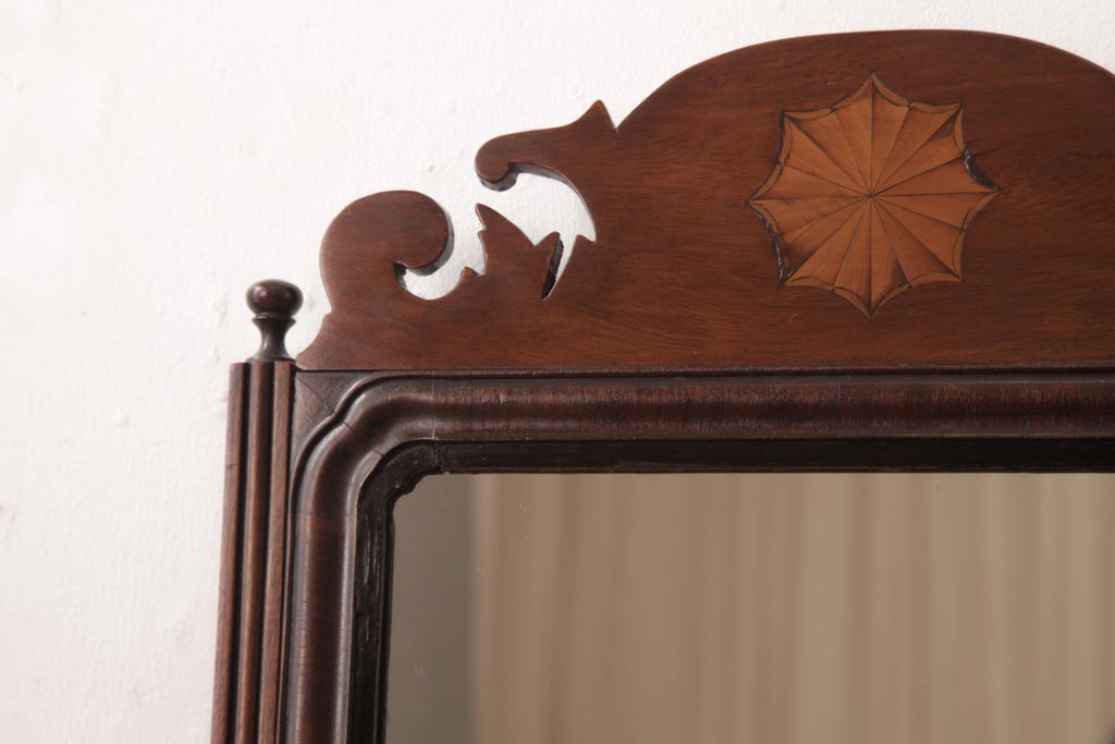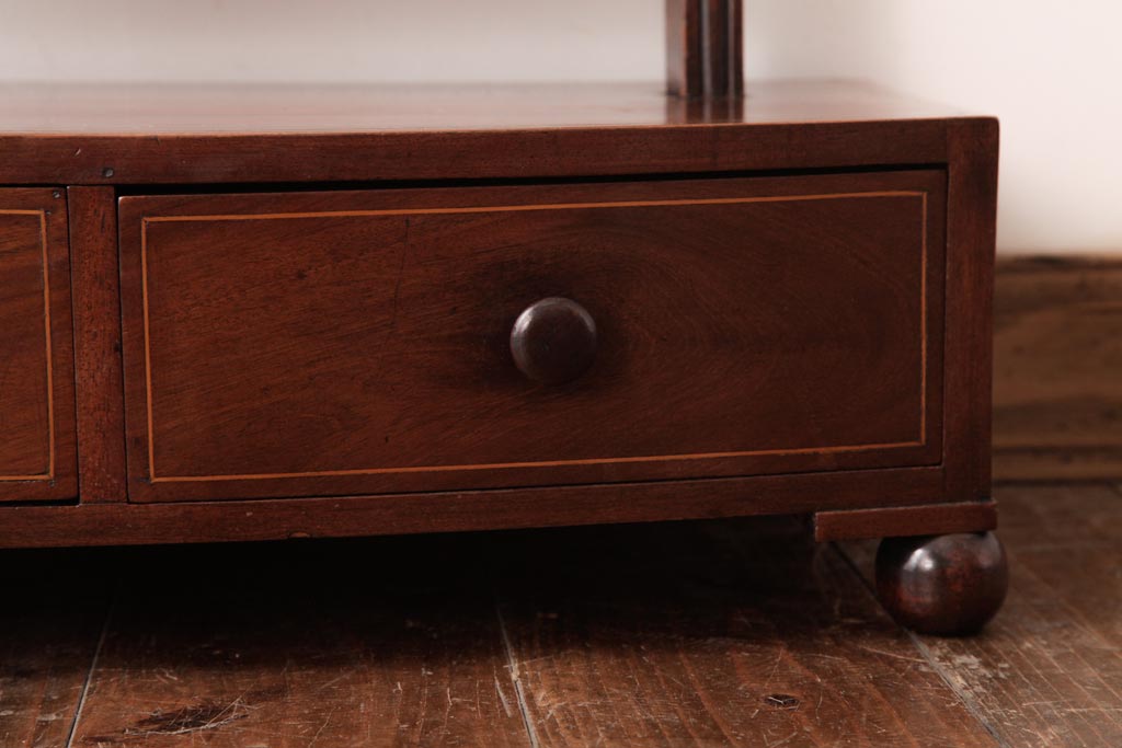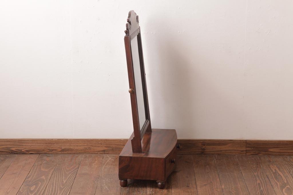 アンティーク雑貨 イギリスアンティーク 象嵌とシルエットがおしゃれなマホガニー材製のミラー(ドレッサー、鏡台)