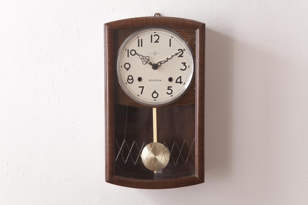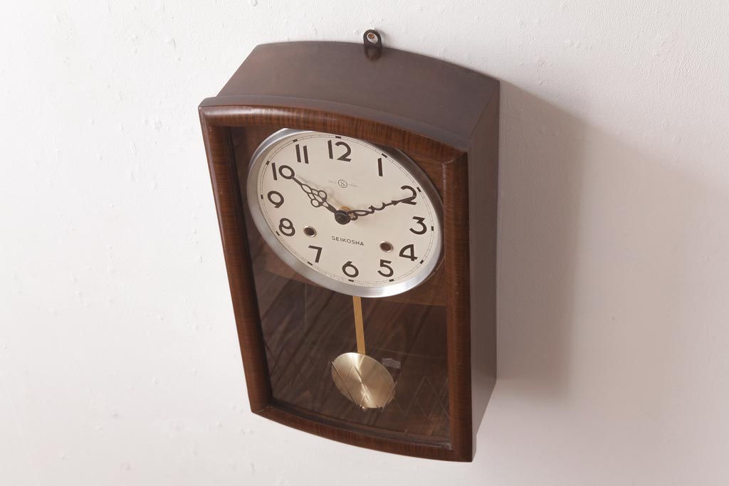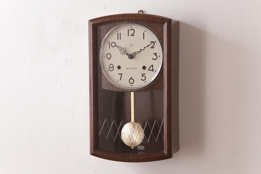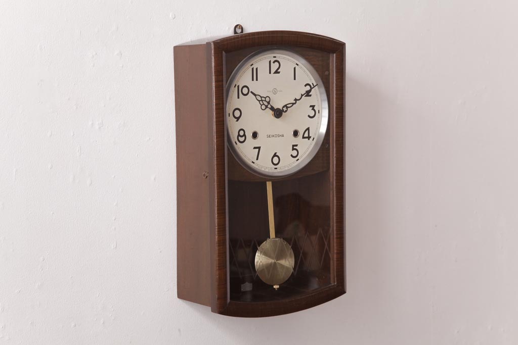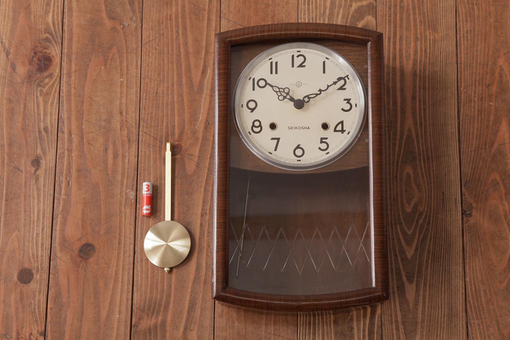 アンティーク雑貨 ビンテージ SEIKOSHA(精工舎、セイコー) 電池式 北欧スタイルにも合う柱時計(掛時計、振り子時計)