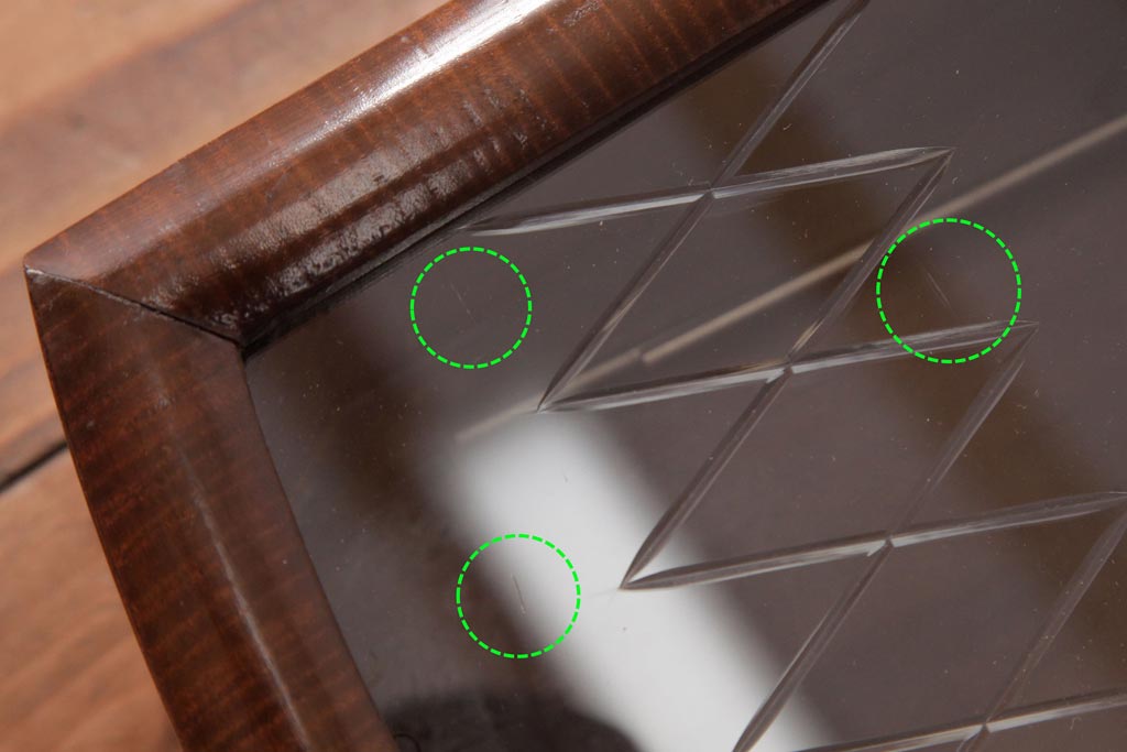 画像にありますようにガラスに傷がありますが、使用上、強度上に問題はありません。