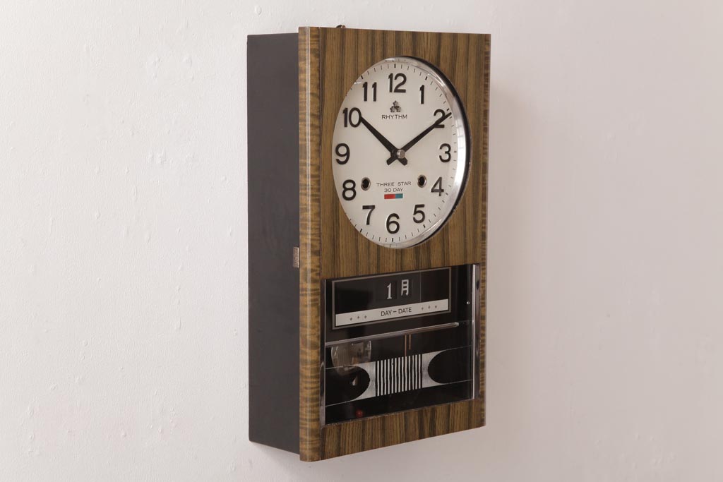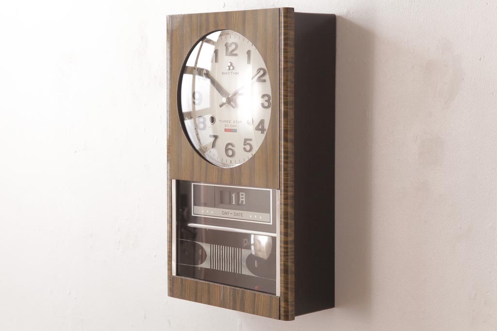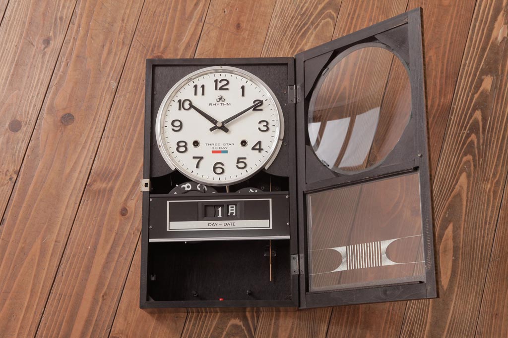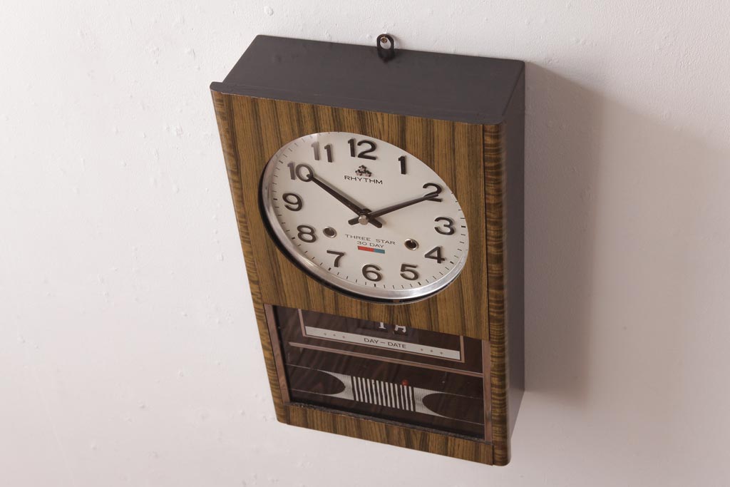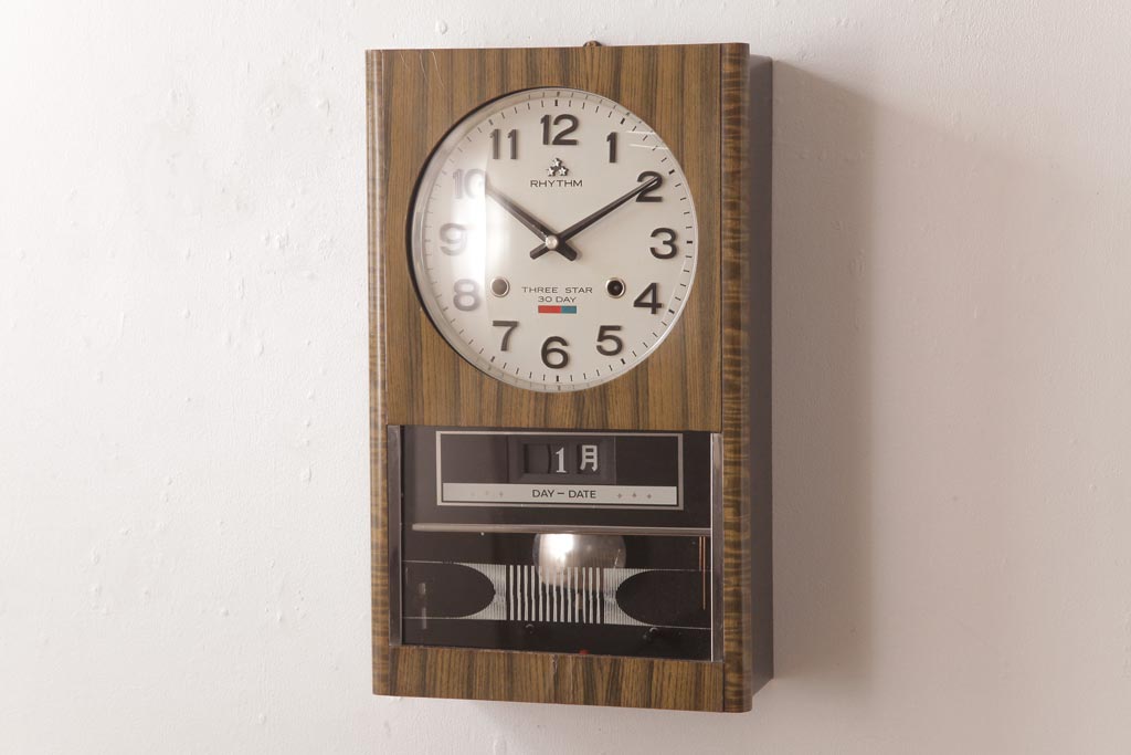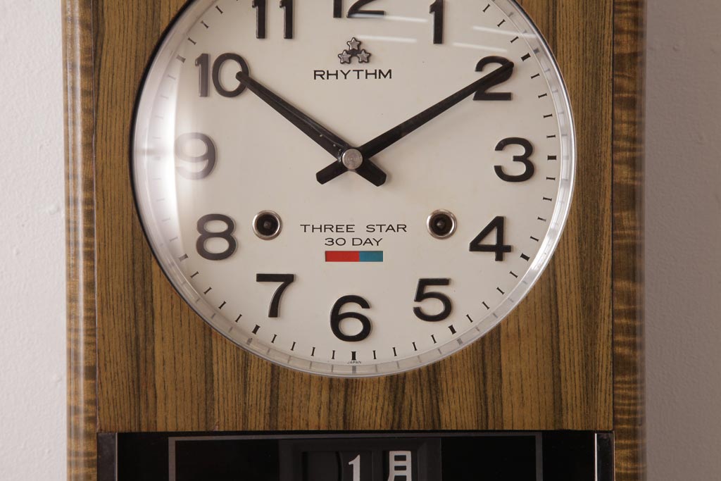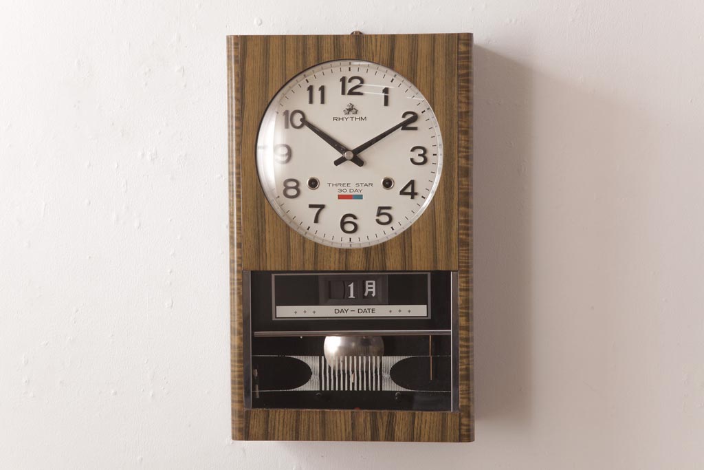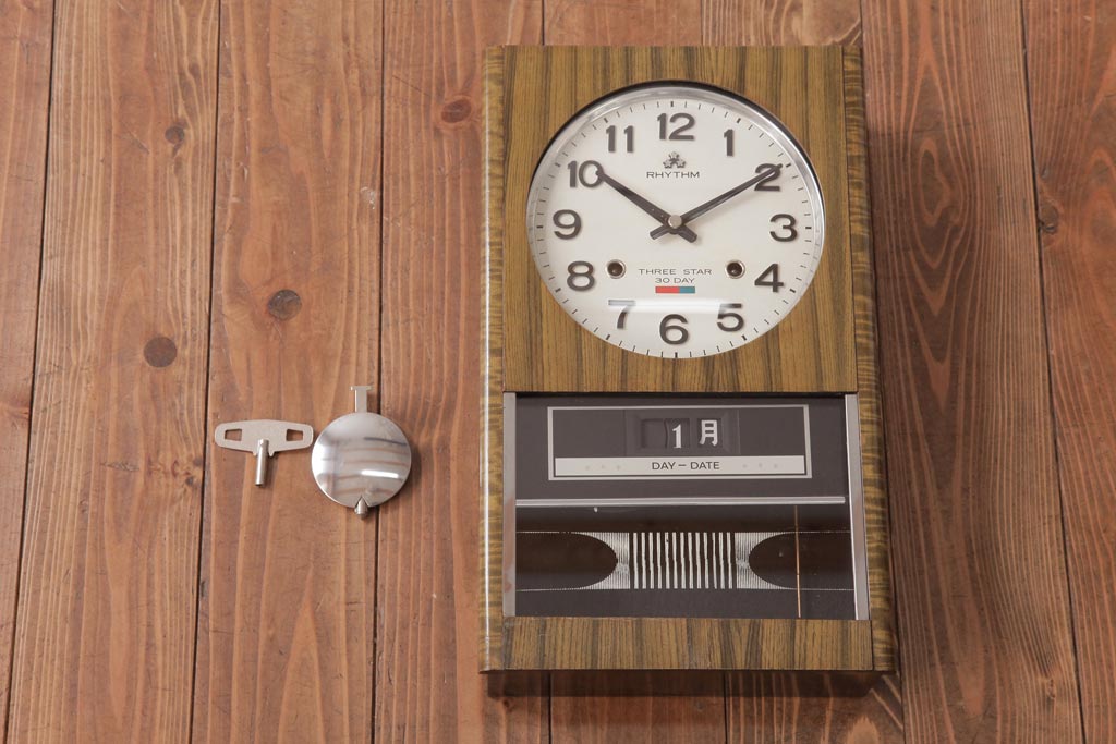 アンティーク雑貨 RHYTHM(リズム時計工業) スリースター ゼンマイ式 昭和レトロな雰囲気が魅力的な掛け時計(振り子時計、柱時計)