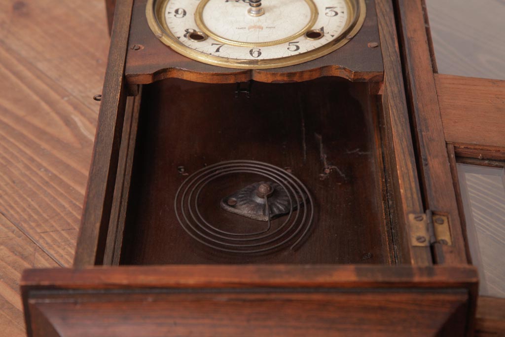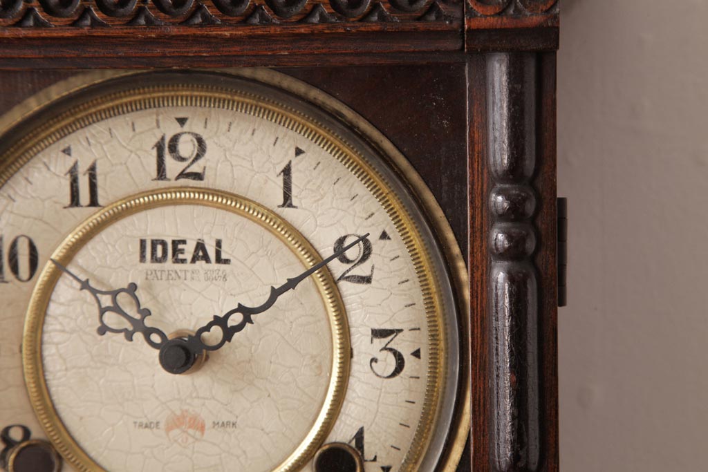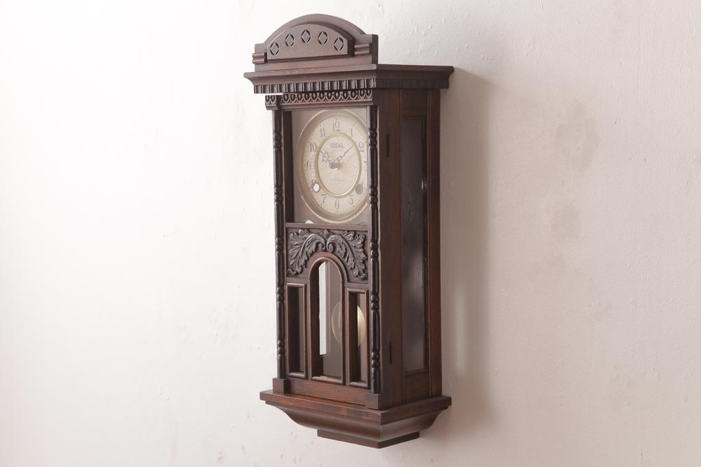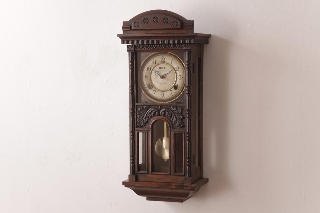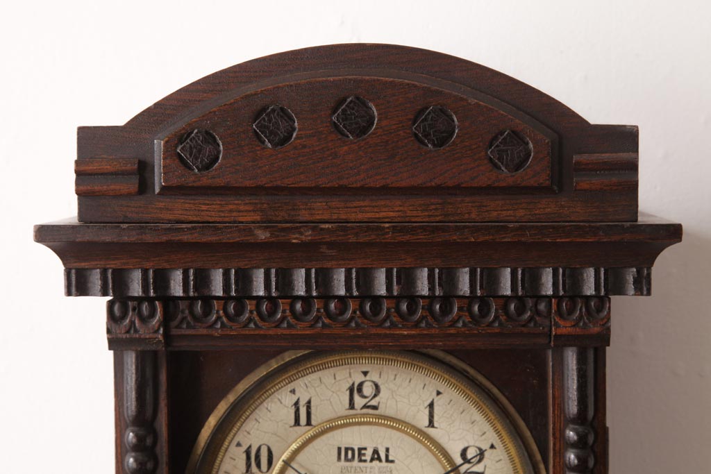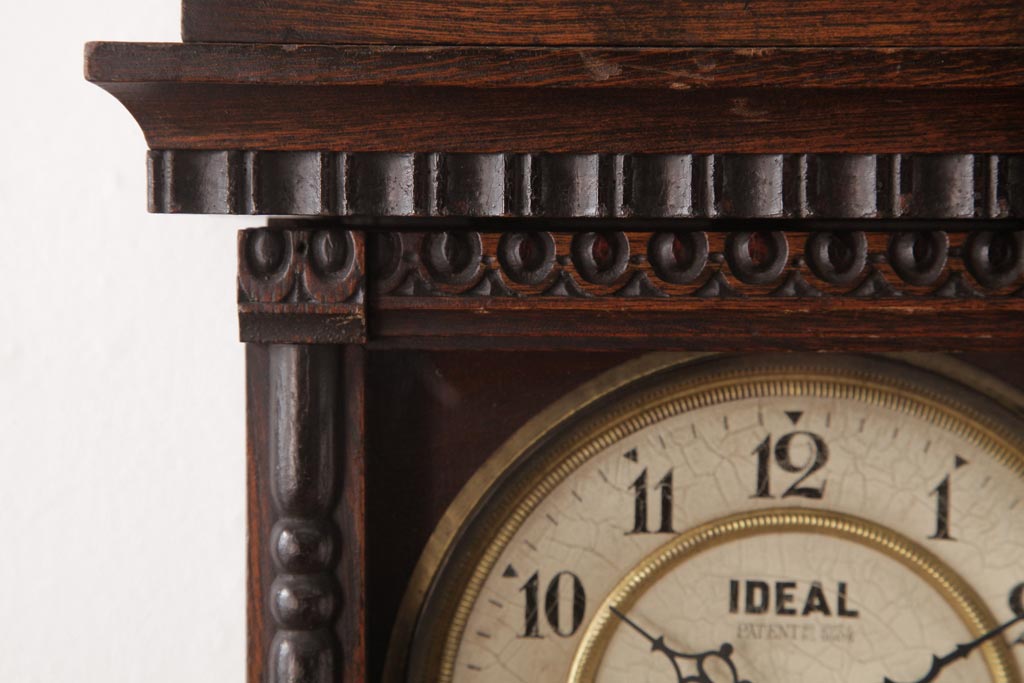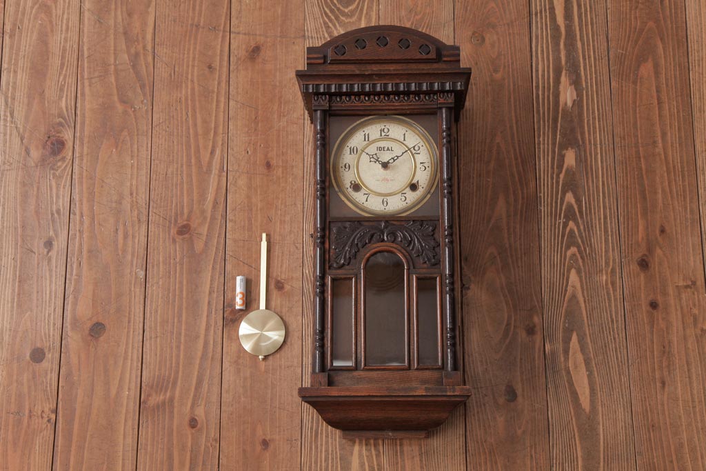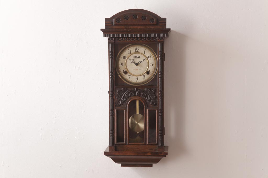 時計> 掛け時計 > アンティーク雑貨 和製アンティーク 小栗時計製造所 IDEAL(アイデアル) 凝った意匠がクラシカルな柱時計(掛け時計、振り子時計)