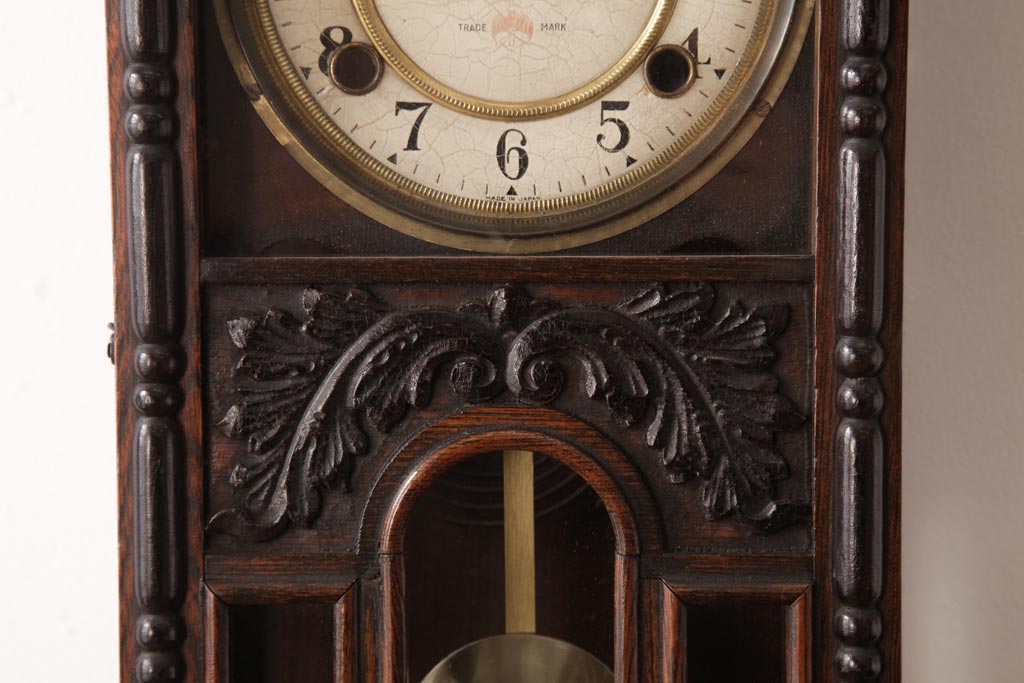 アンティーク雑貨 和製アンティーク 小栗時計製造所 IDEAL(アイデアル) 凝った意匠がクラシカルな柱時計(掛け時計、振り子時計)