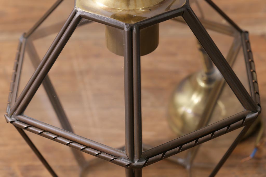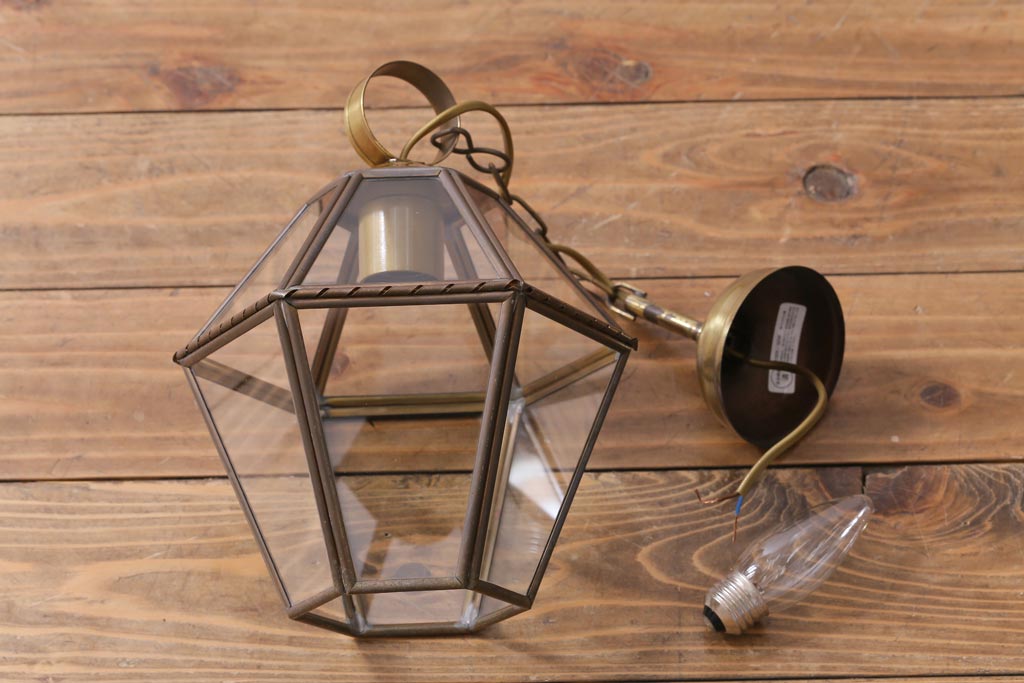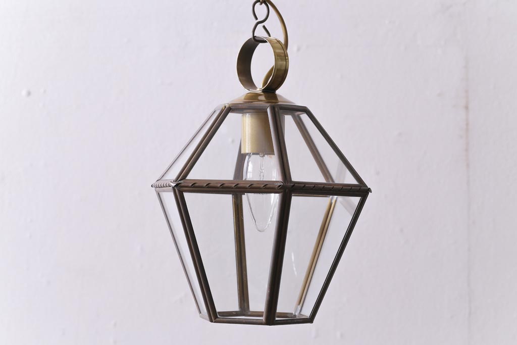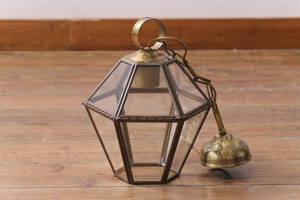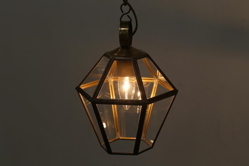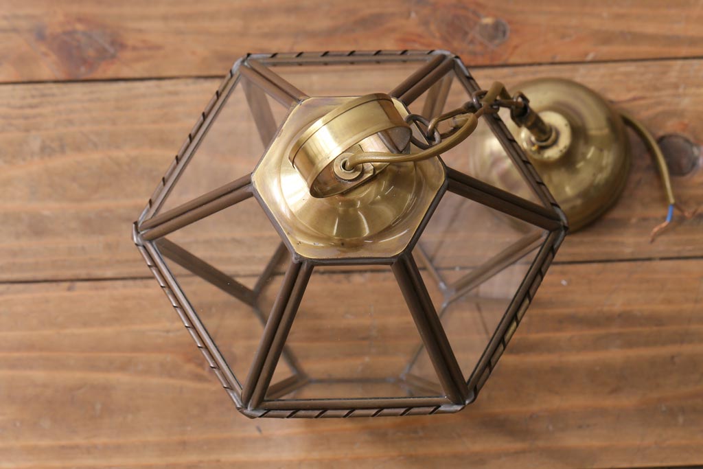 フランスビンテージ 真鍮 おしゃれな多面体のペンダントライト(天井照明、吊り下げ照明)です。