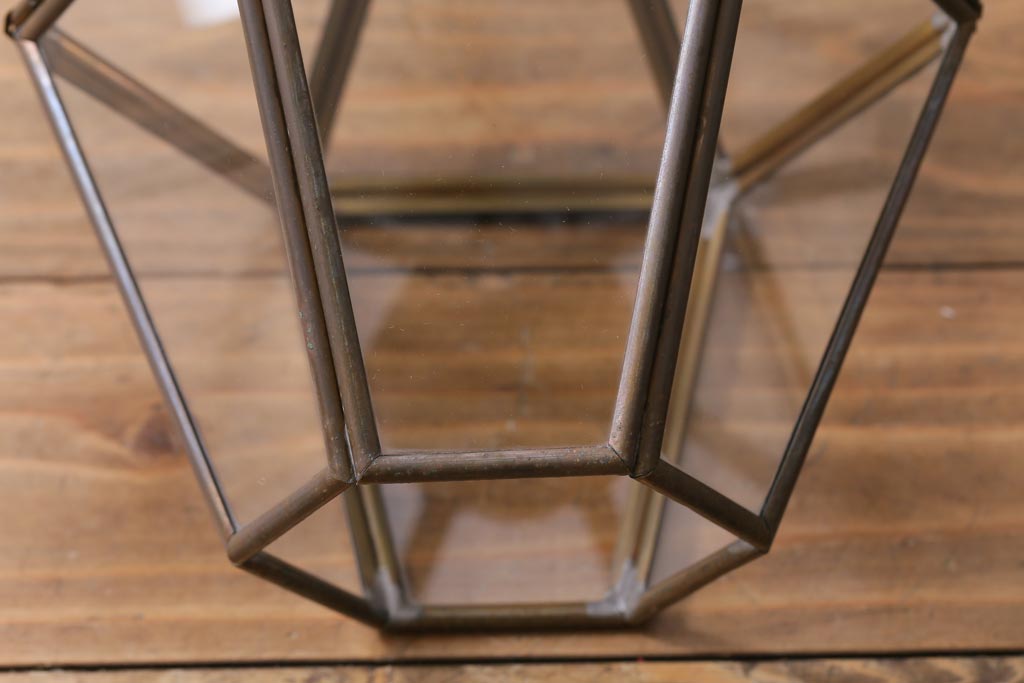 真鍮の色合いやガラス面を繋いだ鳥かごのような形が