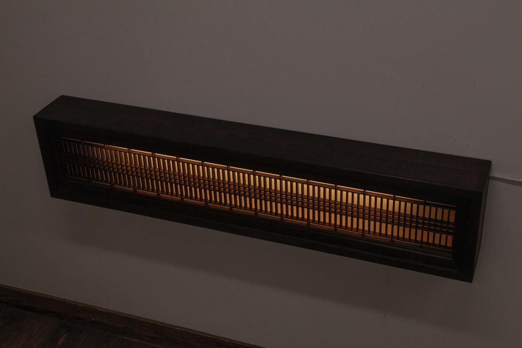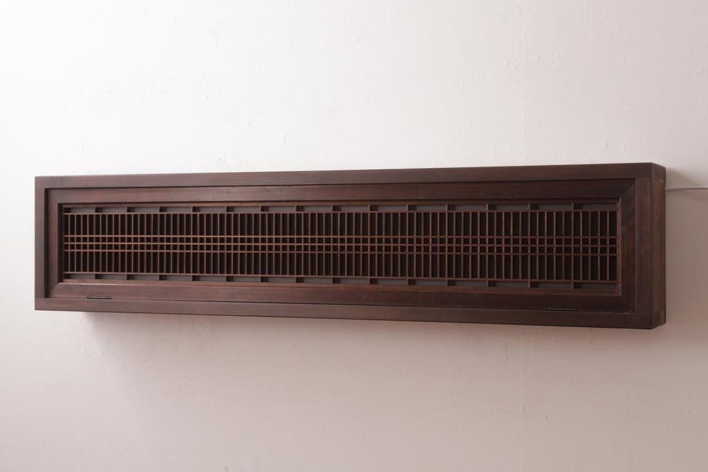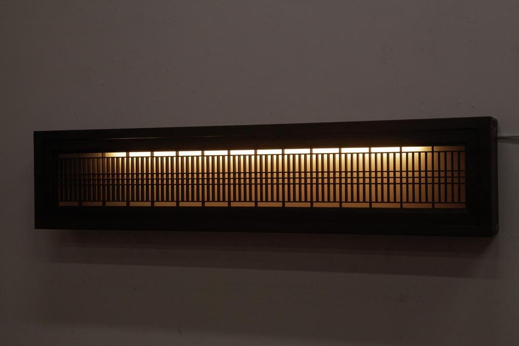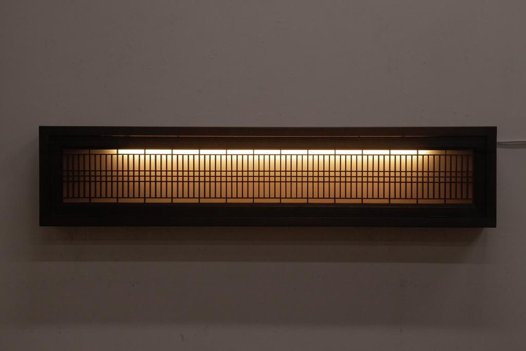 ラフジュ工房オリジナル 組子欄間リメイク 片面ガラス 格子が味わい深い横長の壁付け照明(ウォールランプ)です。