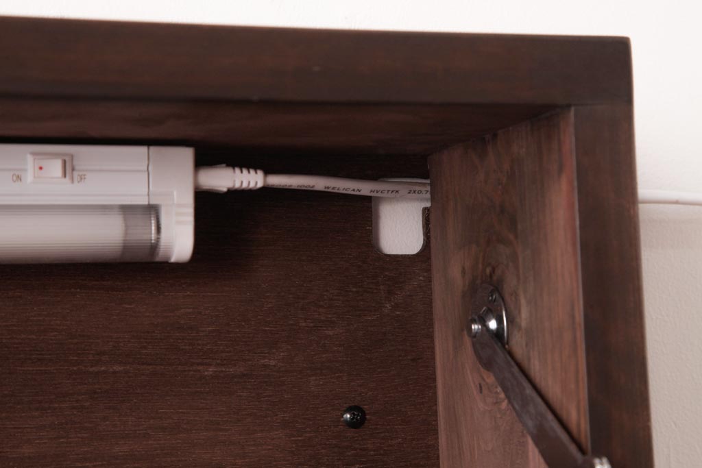 開口部左上にはマグネットキャッチを取り付けております。押すと開きます。